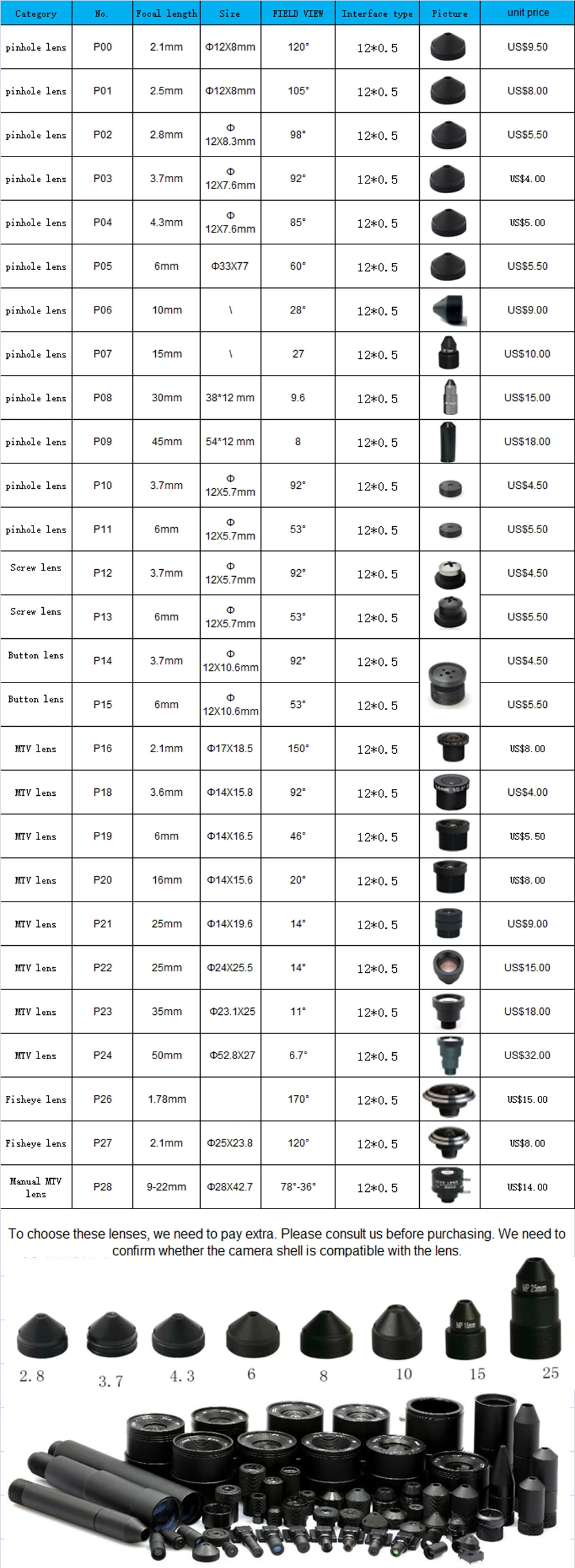 Debajo de la lente, algunos de ellos se pueden reemplazar para diferentes ángulos de visión y requisitos de distancia.¡Por favor hable con nosotros si está disponible para la cámara!
