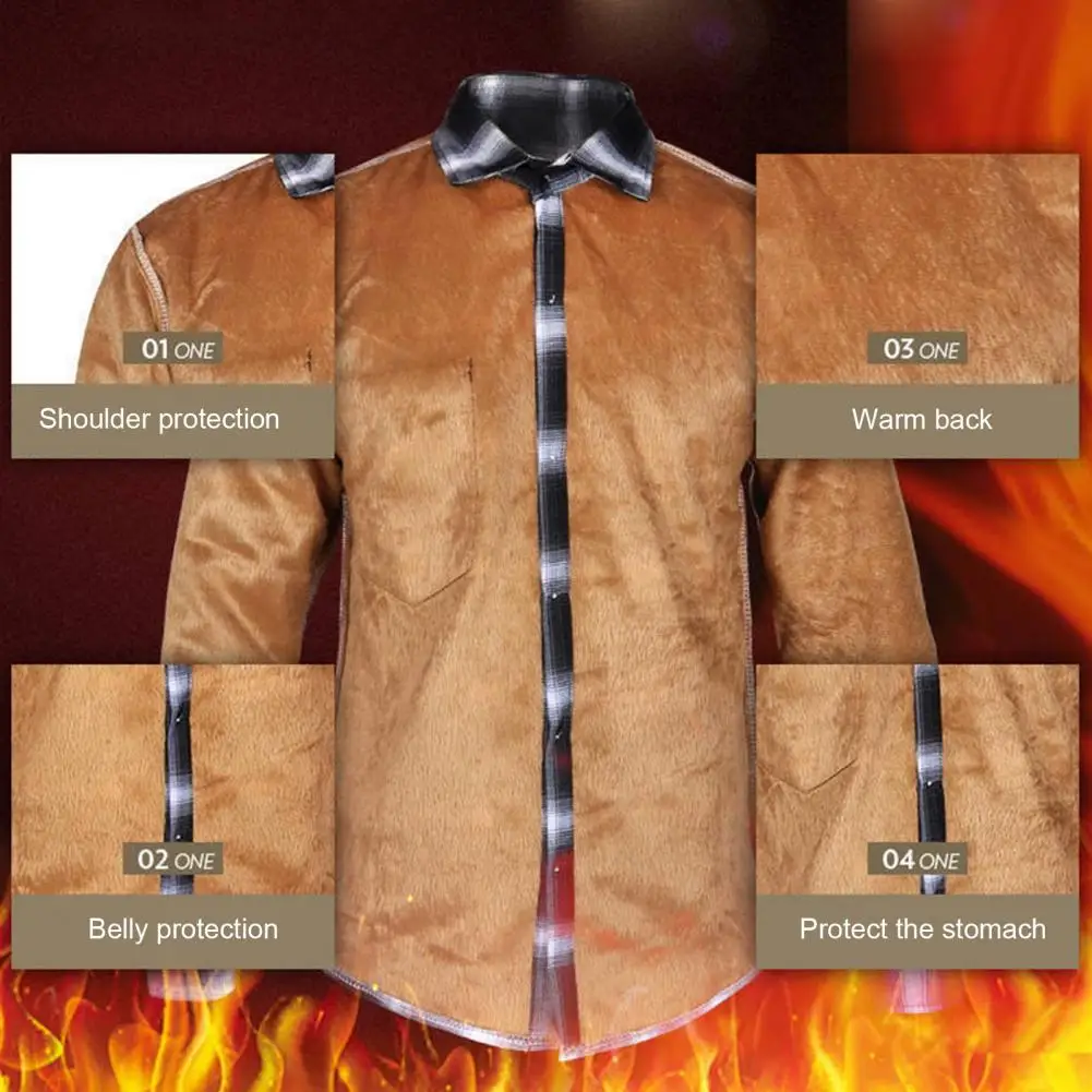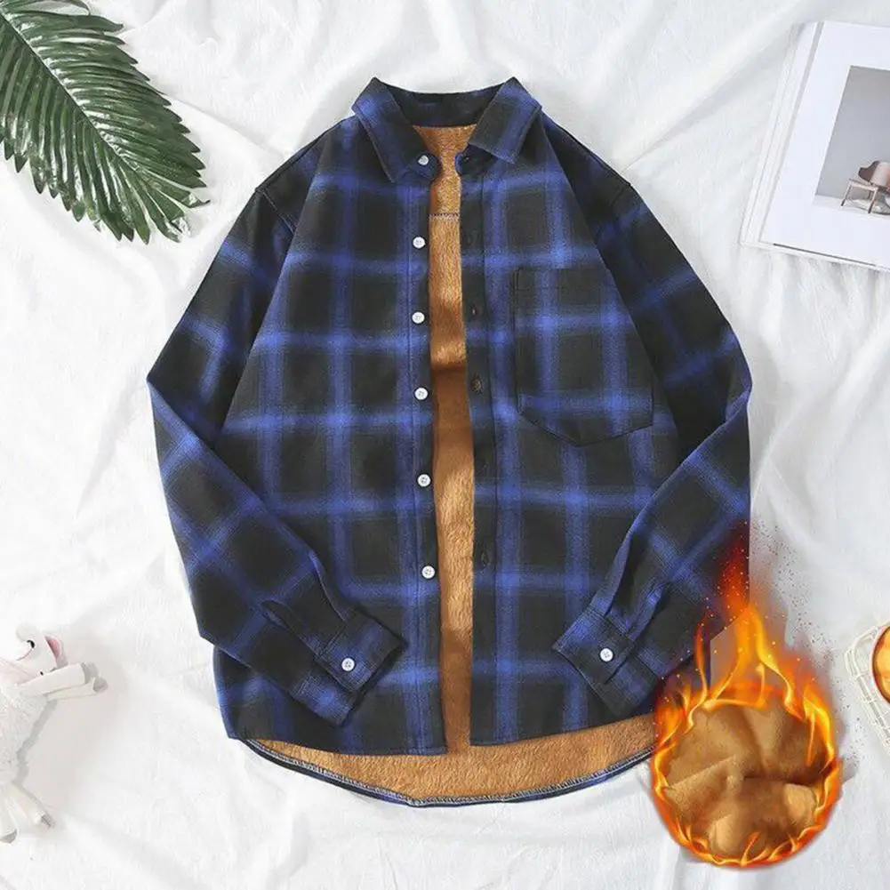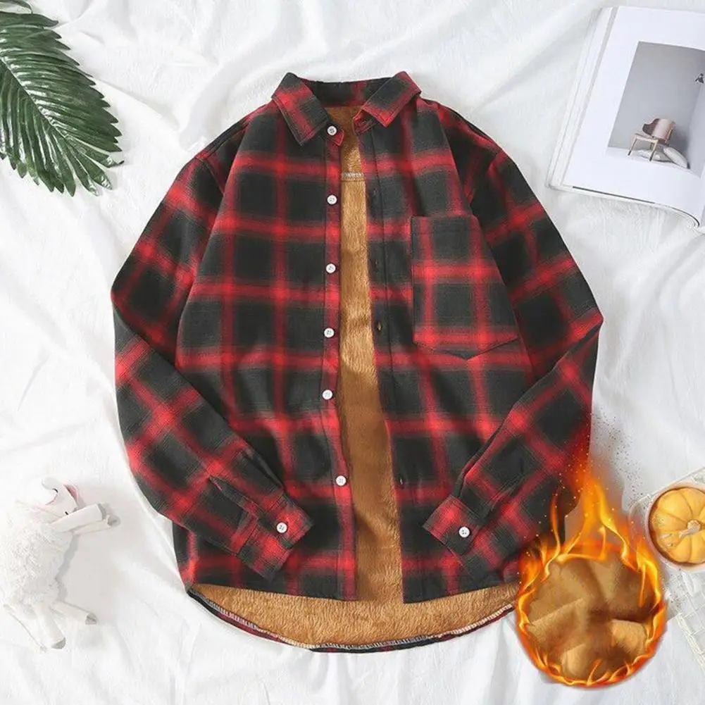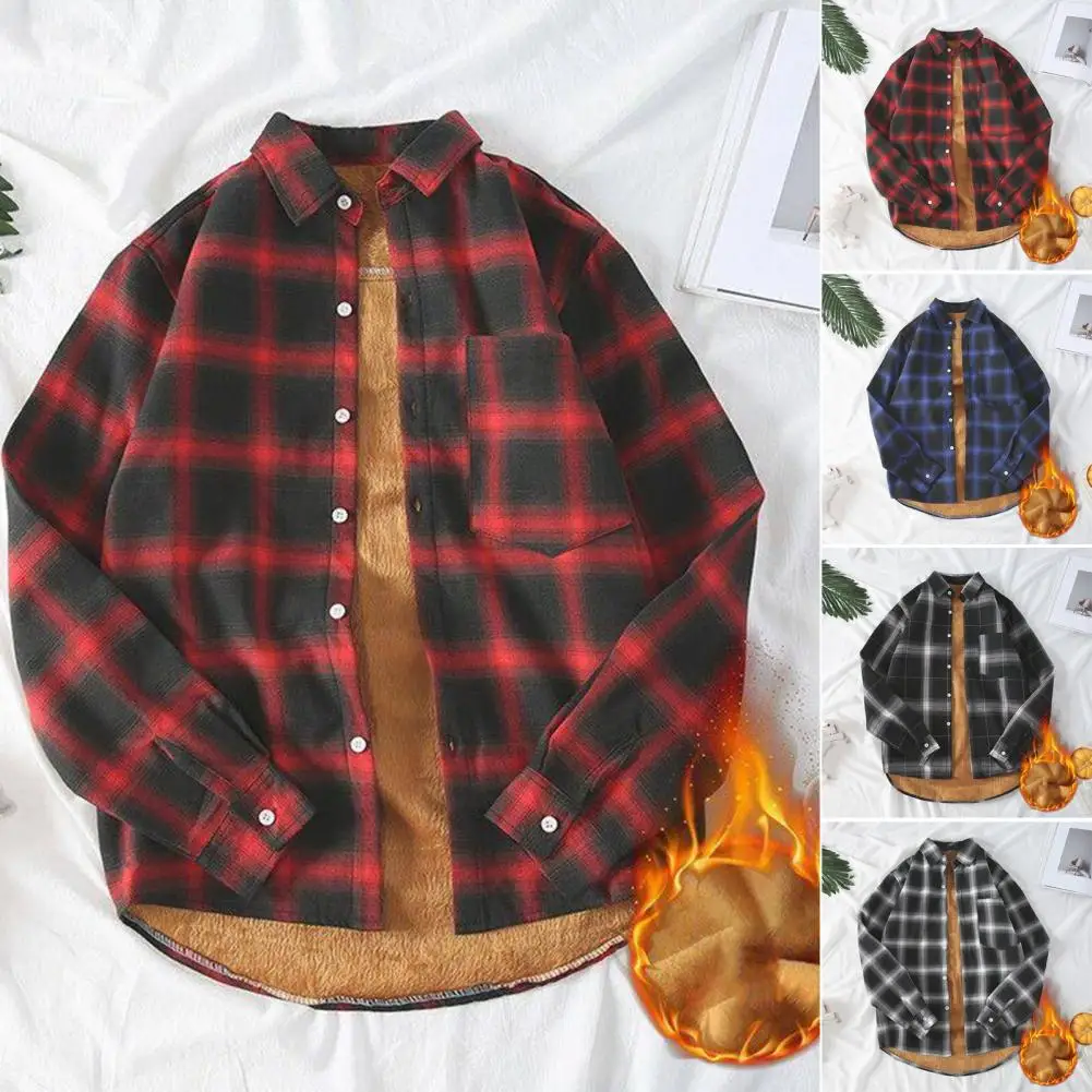 Camisa clásica con botones para hombre, cárdigan de solapa de felpa para hombre con botones a juego de colores estampados a cuadros para otoño invierno cálido