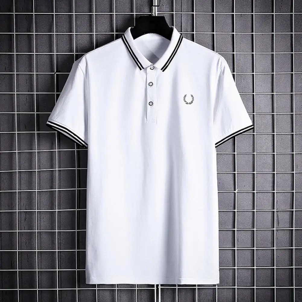 Comprar Camisa clásica resistente al desgaste para hombre, camiseta suelta con cuello vuelto, solapa delgada, Verano