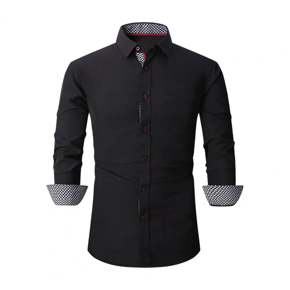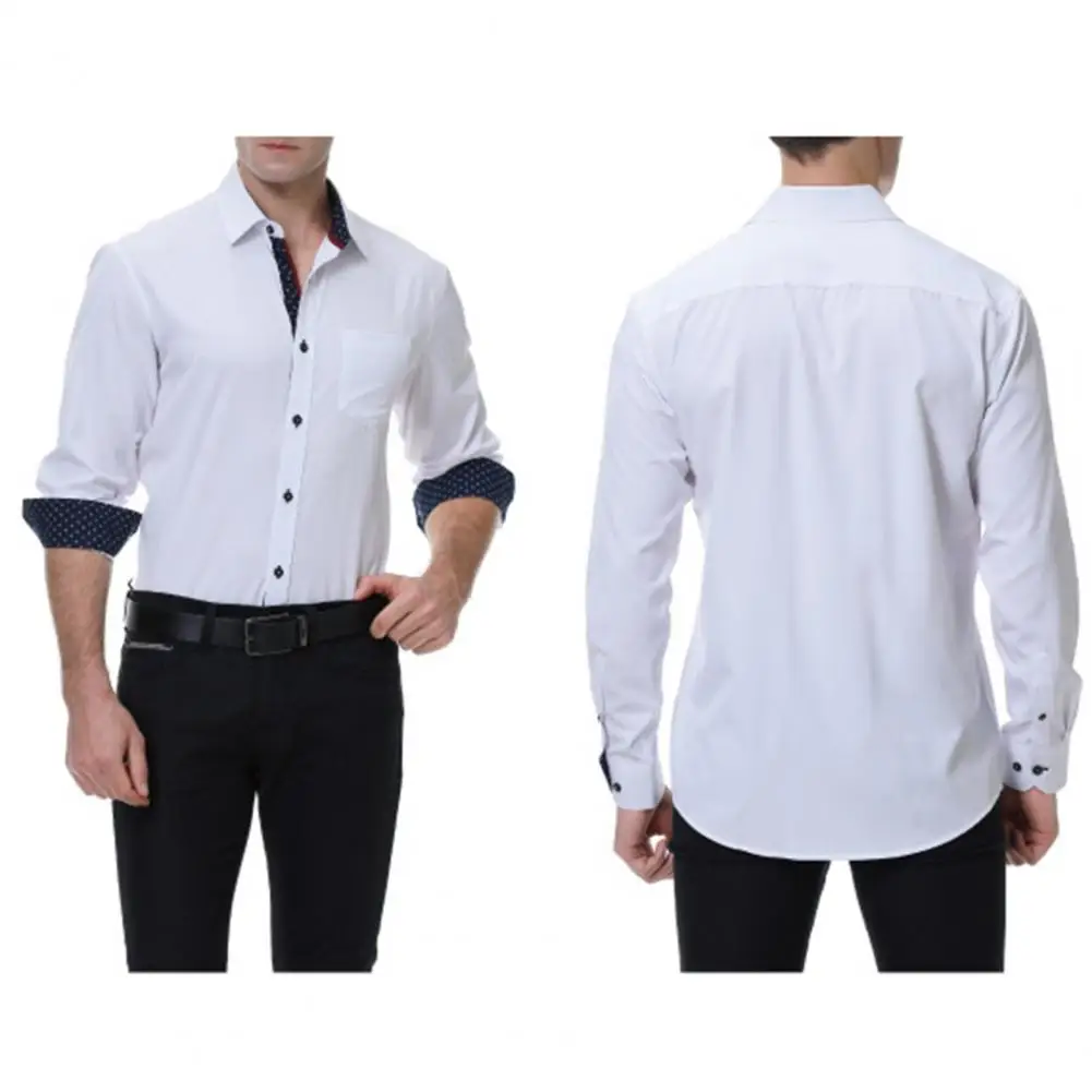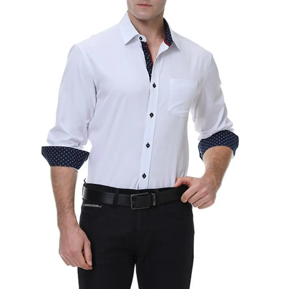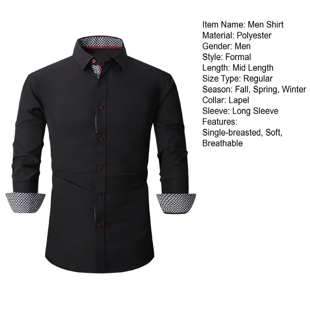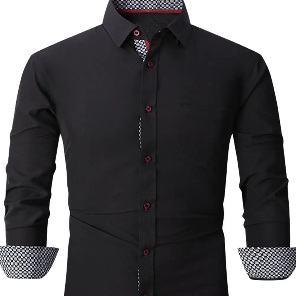 Camisa de diario para hombre, Camisa ajustada de estilo para hombre de negocios formal con solapa de un solo pecho, botones de manga larga suaves para otoño para hombres