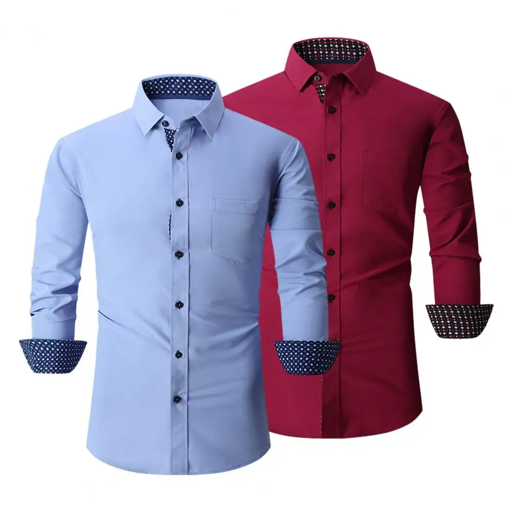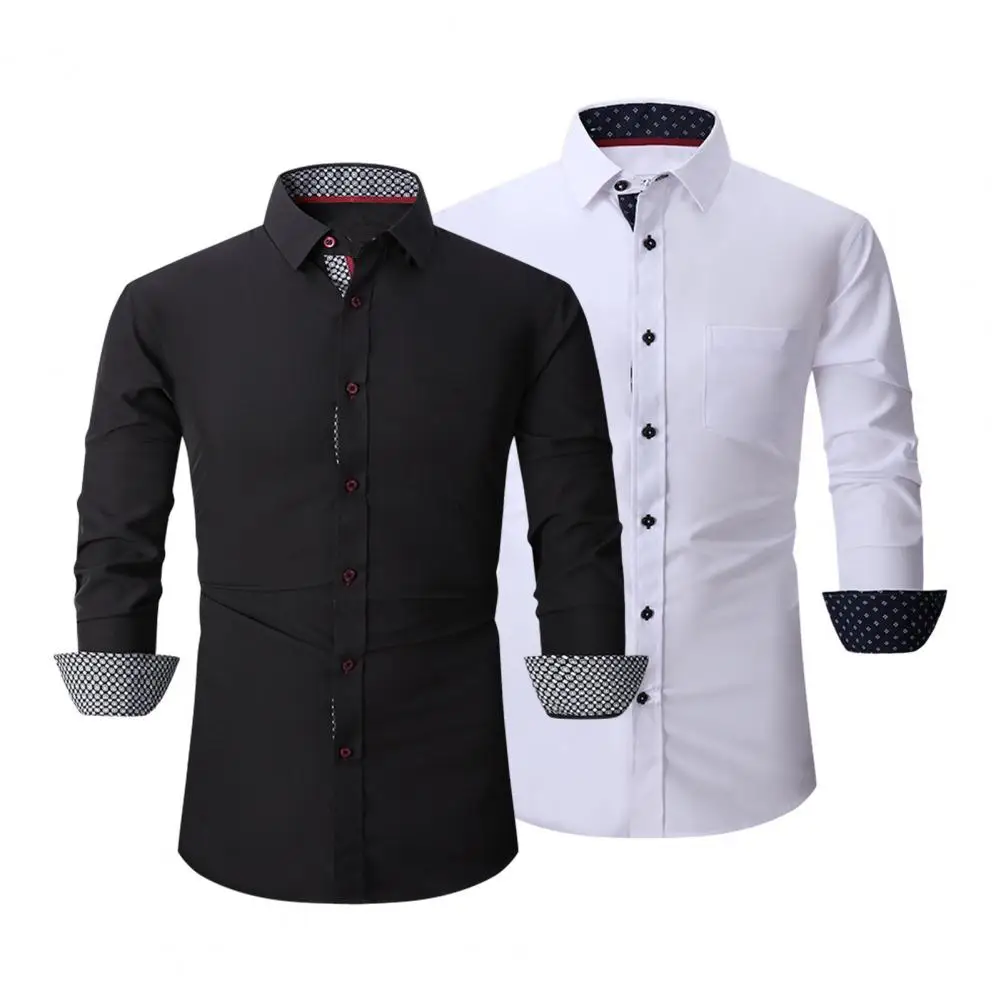 Camisa de diario para hombre, Camisa ajustada de estilo para hombre de negocios formal con solapa de un solo pecho, botones de manga larga suaves para otoño para hombres