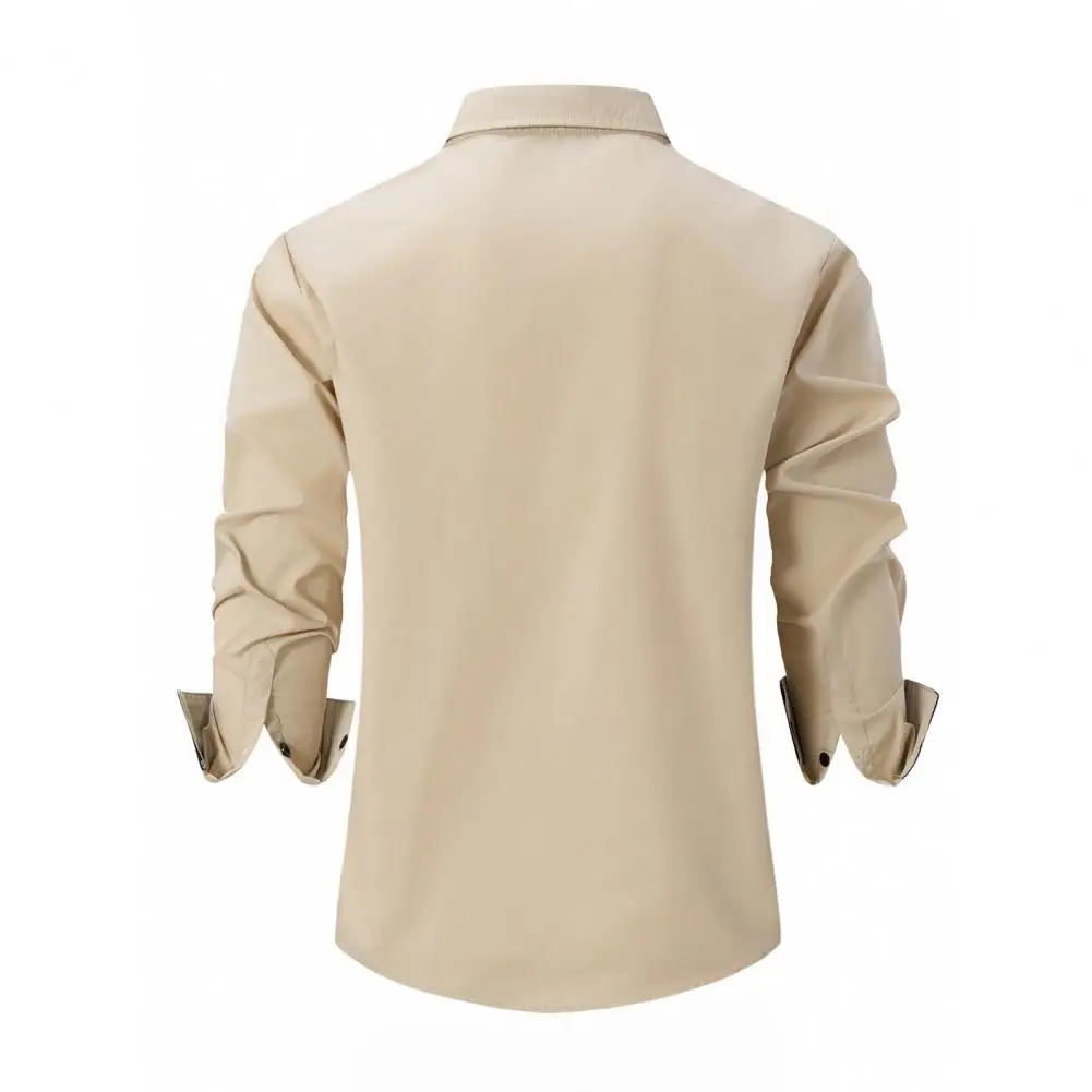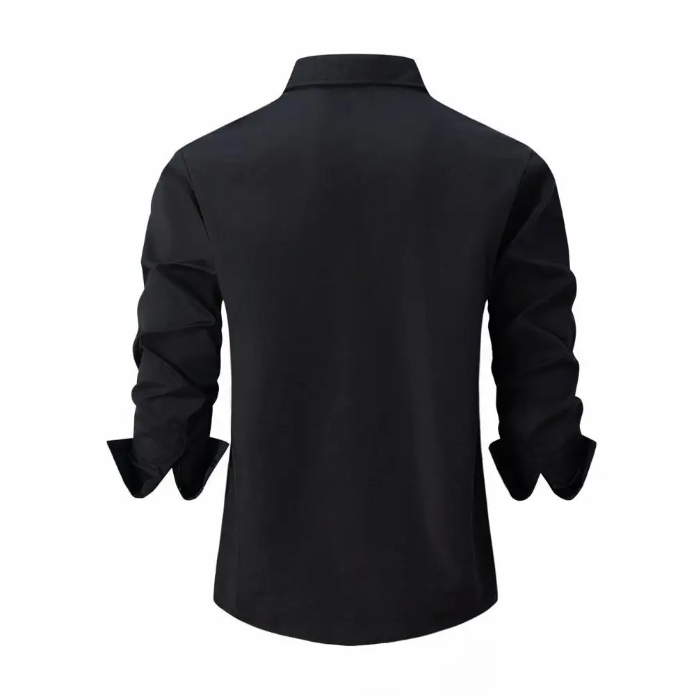 Cuello clásico, diseño de un solo puño y corte suave y ancho para un aspecto más limpio.
