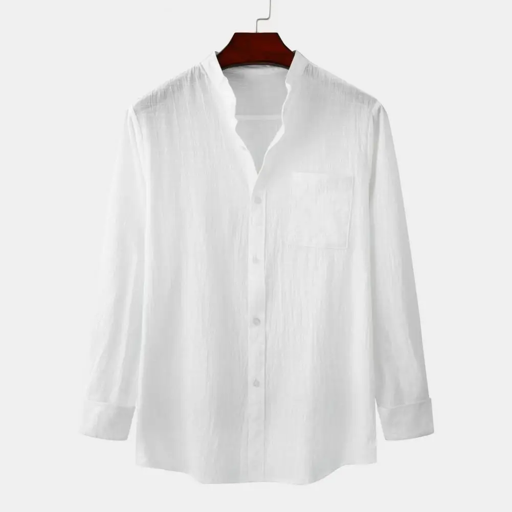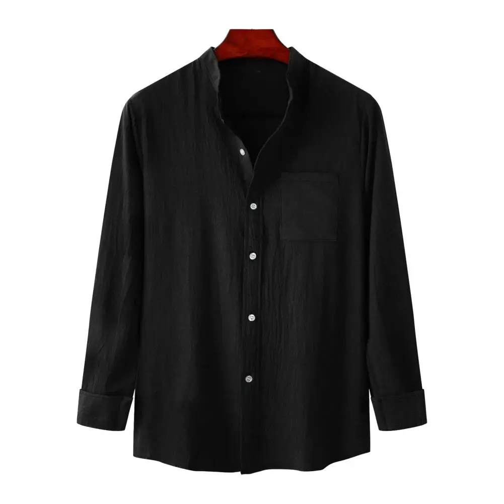 Camisa holgada para hombre, colección de camisa informal de primavera y verano para hombre, ropa de trabajo de manga larga con cuello levantado, estilo Retro, cuello redondo, ajuste holgado