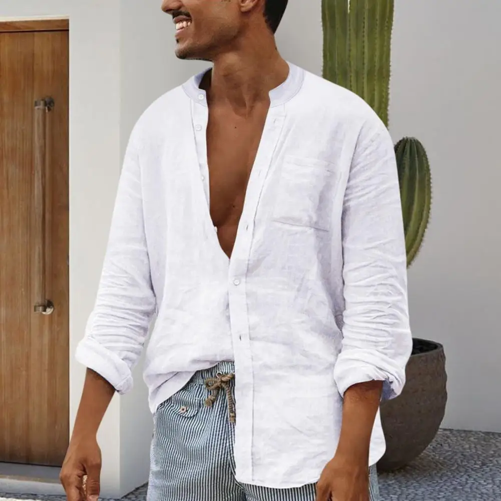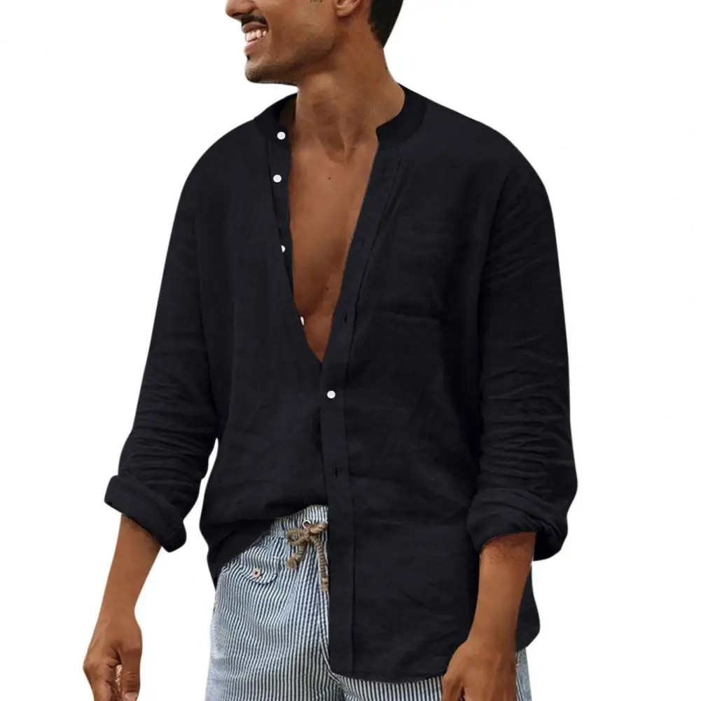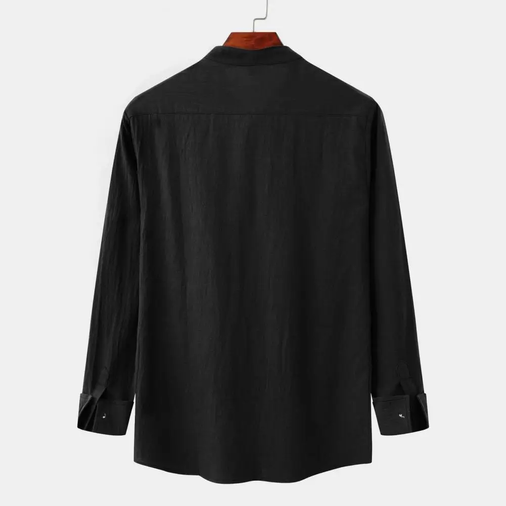 Camisa holgada para hombre, colección de camisa informal de primavera y verano para hombre, ropa de trabajo de manga larga con cuello levantado, estilo Retro, cuello redondo, ajuste holgado