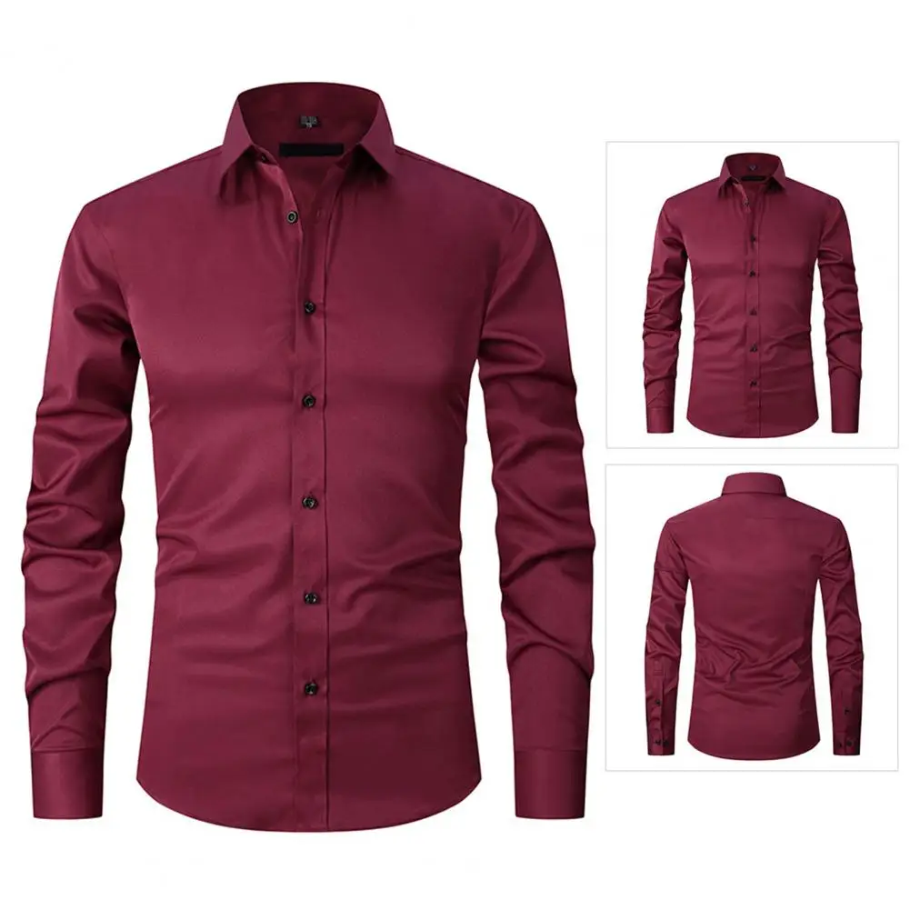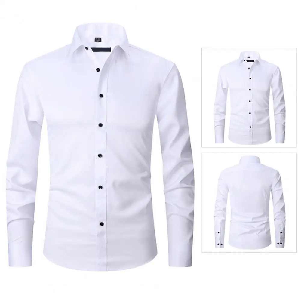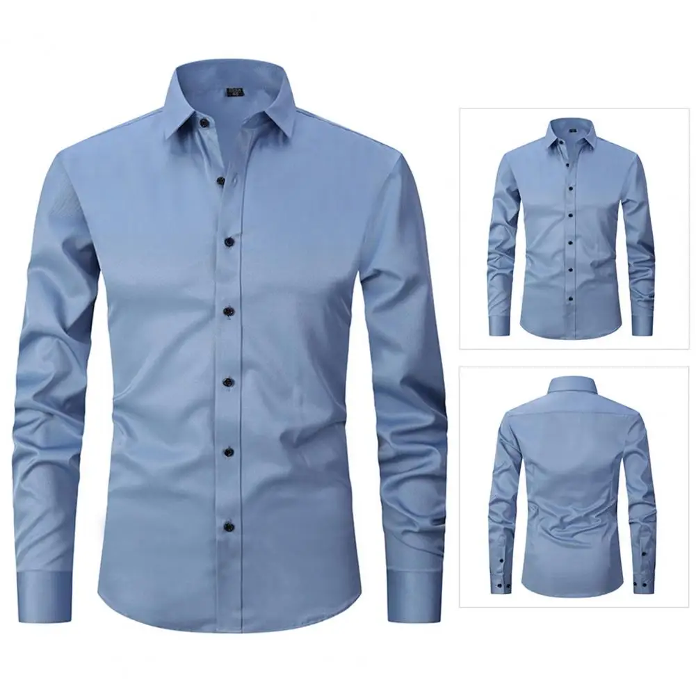 Camisa informal para hombre, cárdigan ajustado elegante para hombre con cuello vuelto, manga larga para negocios, ropa de oficina informal suave