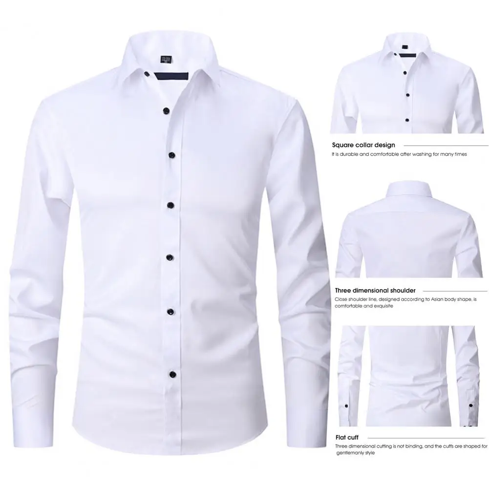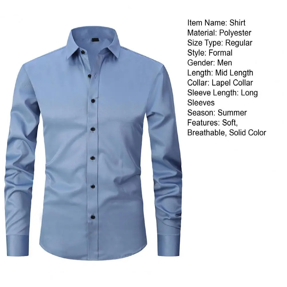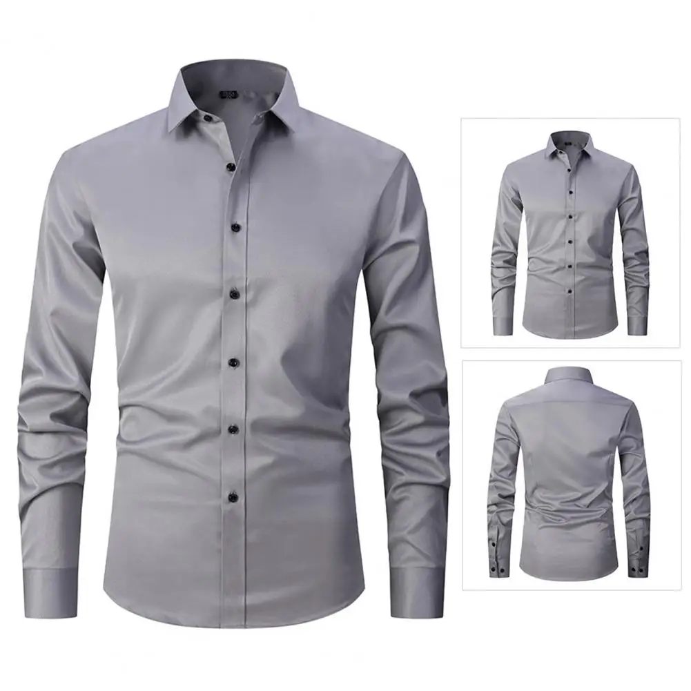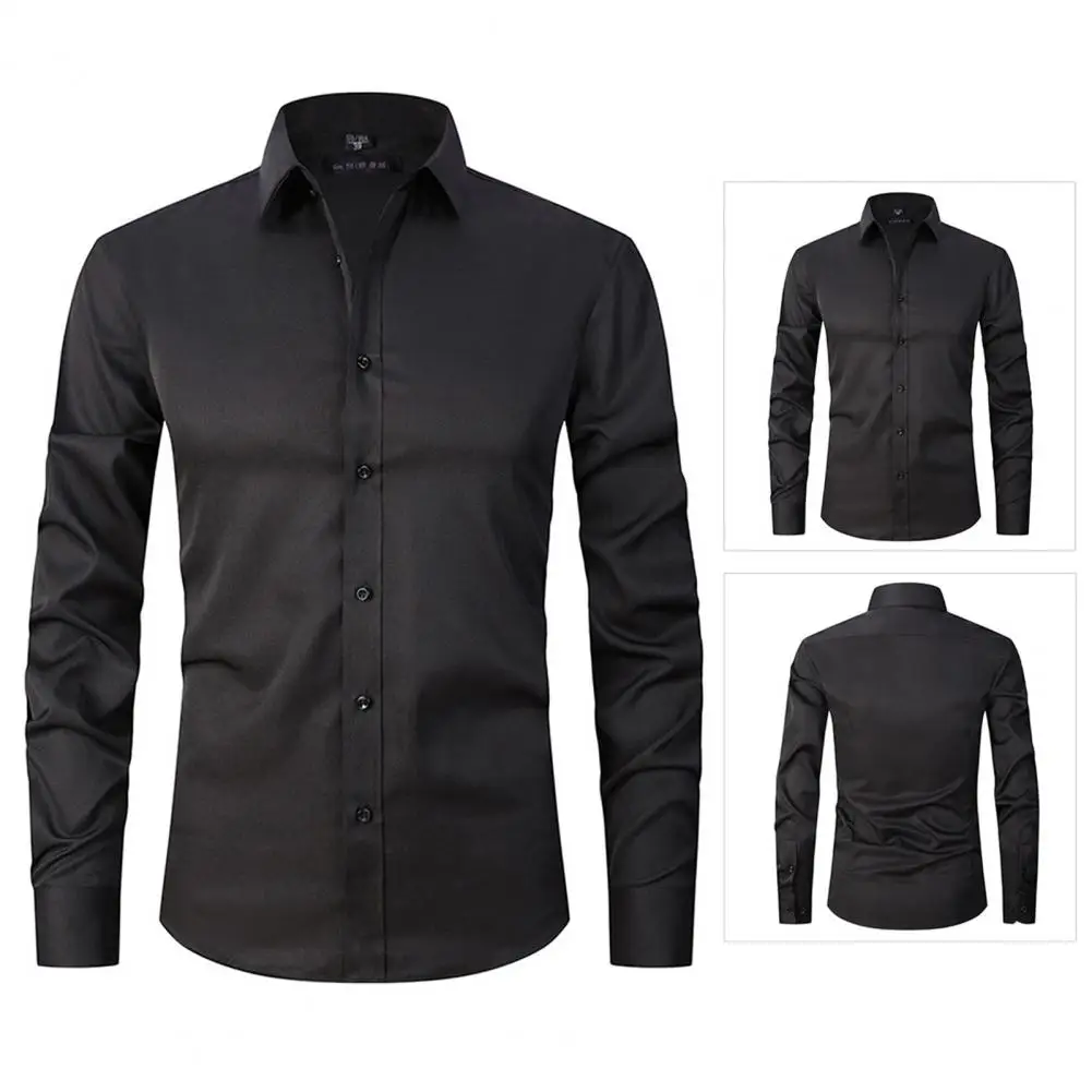 Camisa informal para hombre, cárdigan ajustado elegante para hombre con cuello vuelto, manga larga para negocios, ropa de oficina informal suave
