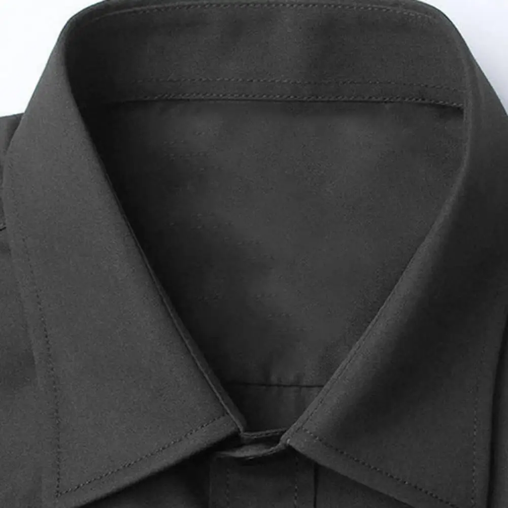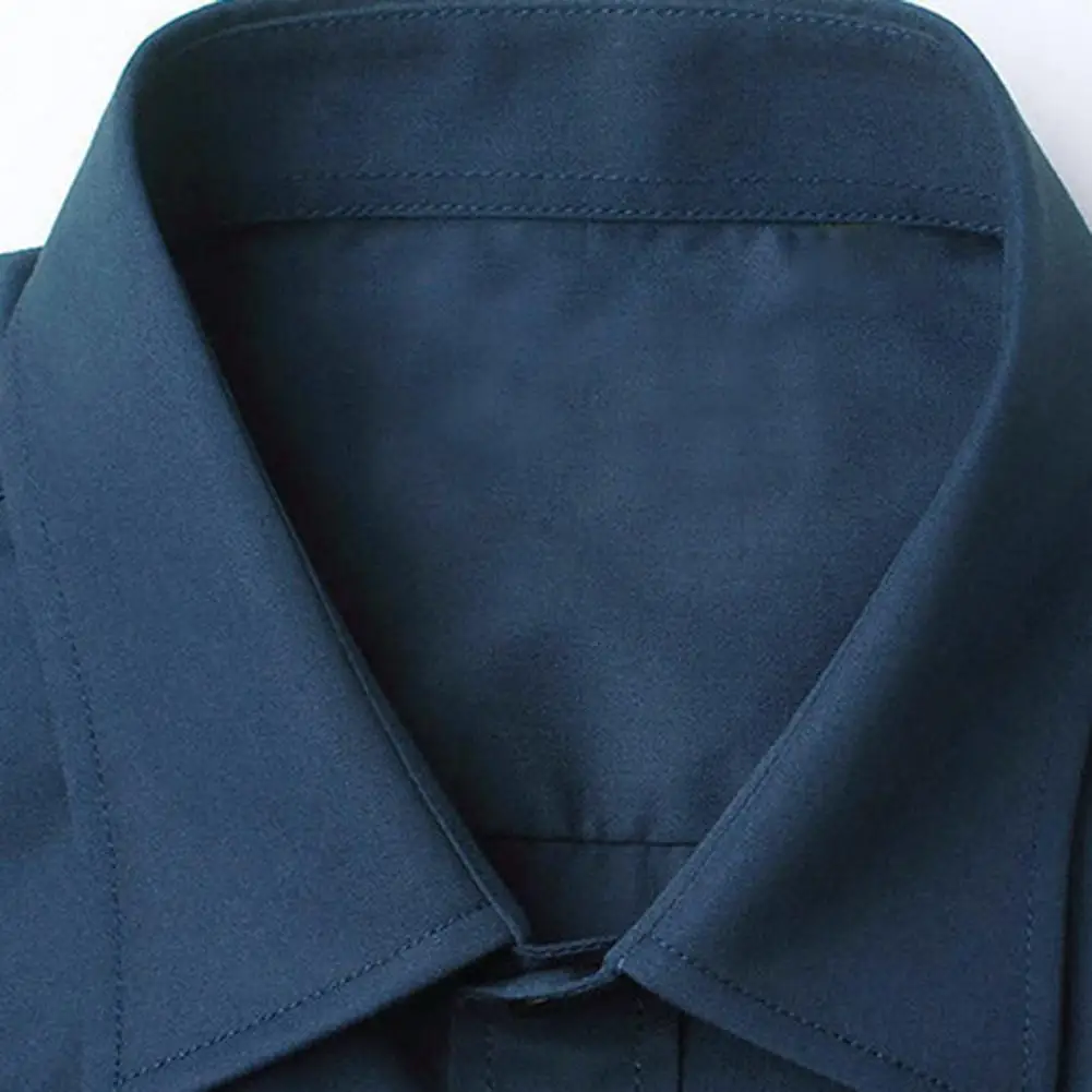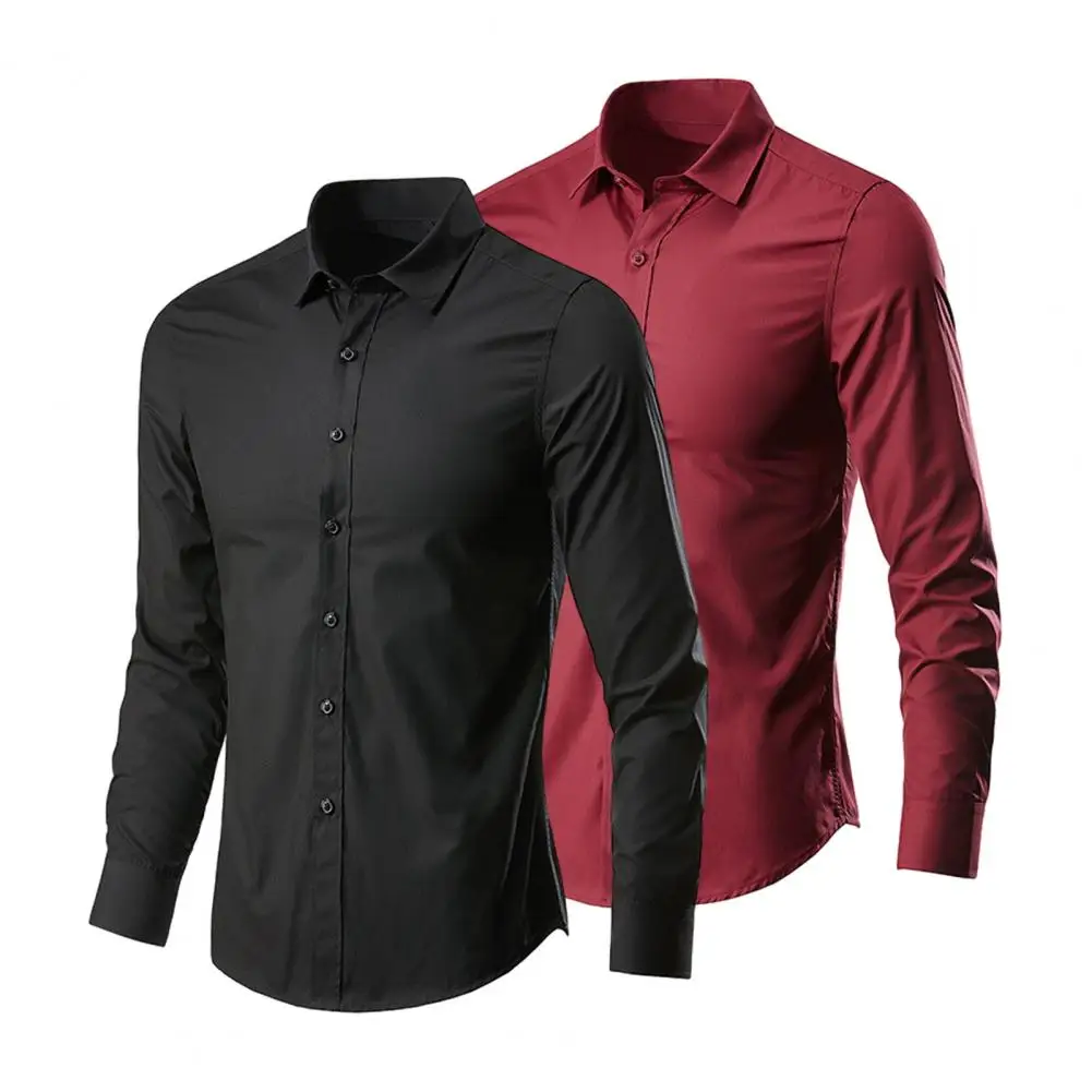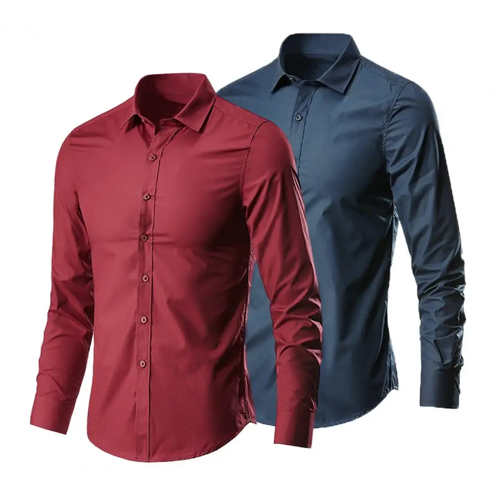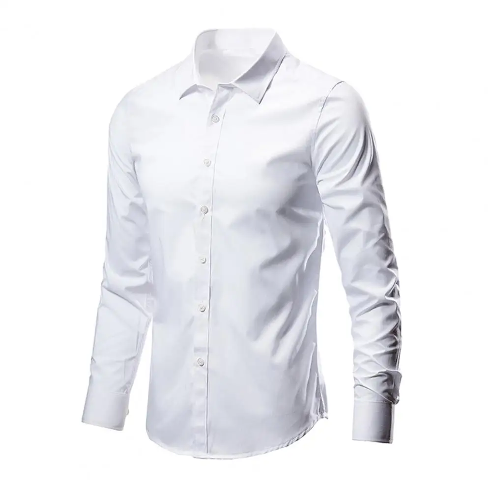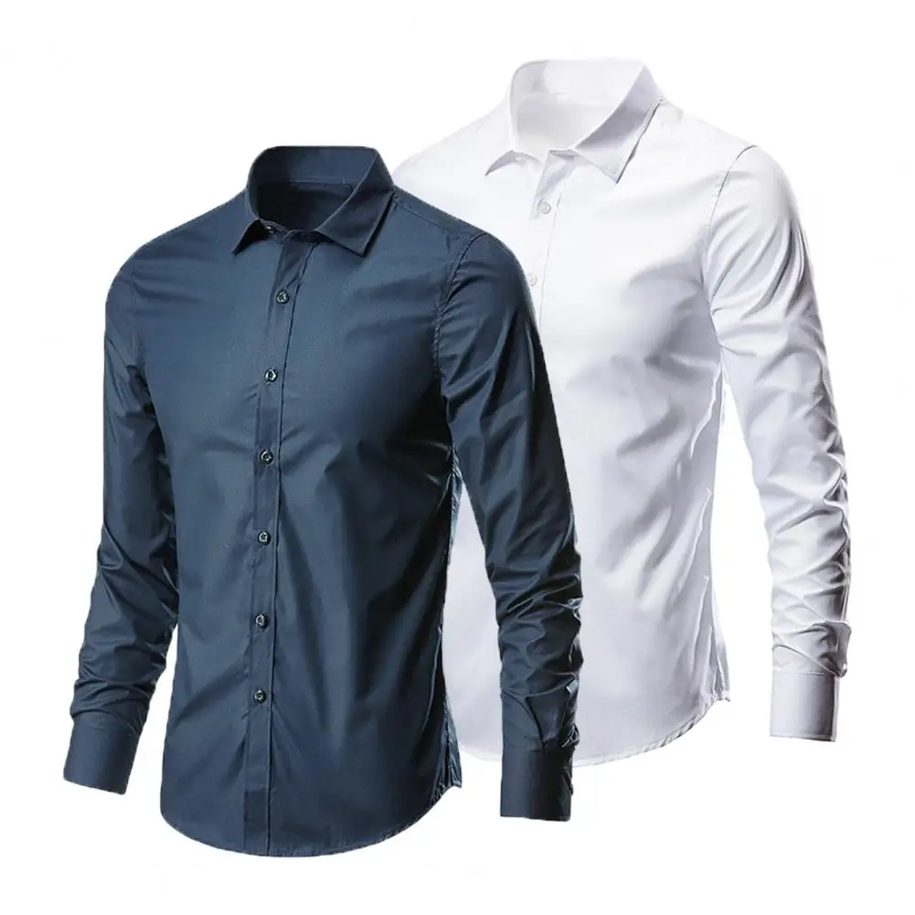 Camisa de negocios elástica para hombre, ajustada, con cuello vuelto, manga larga, color sólido, transpirable, de talla grande, formal
