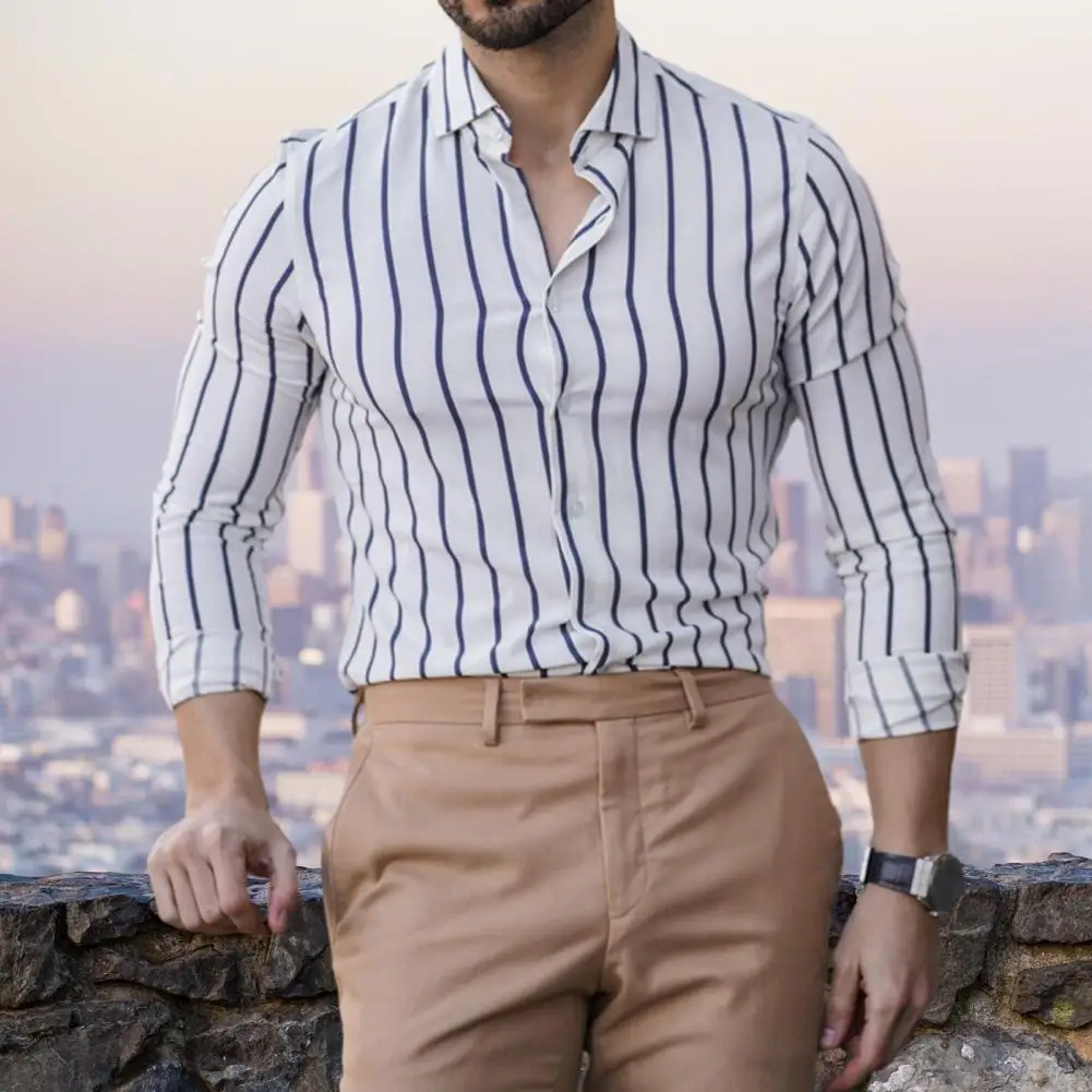 Camisa a rayas versátil y elegante adecuada para cualquier ocasión.