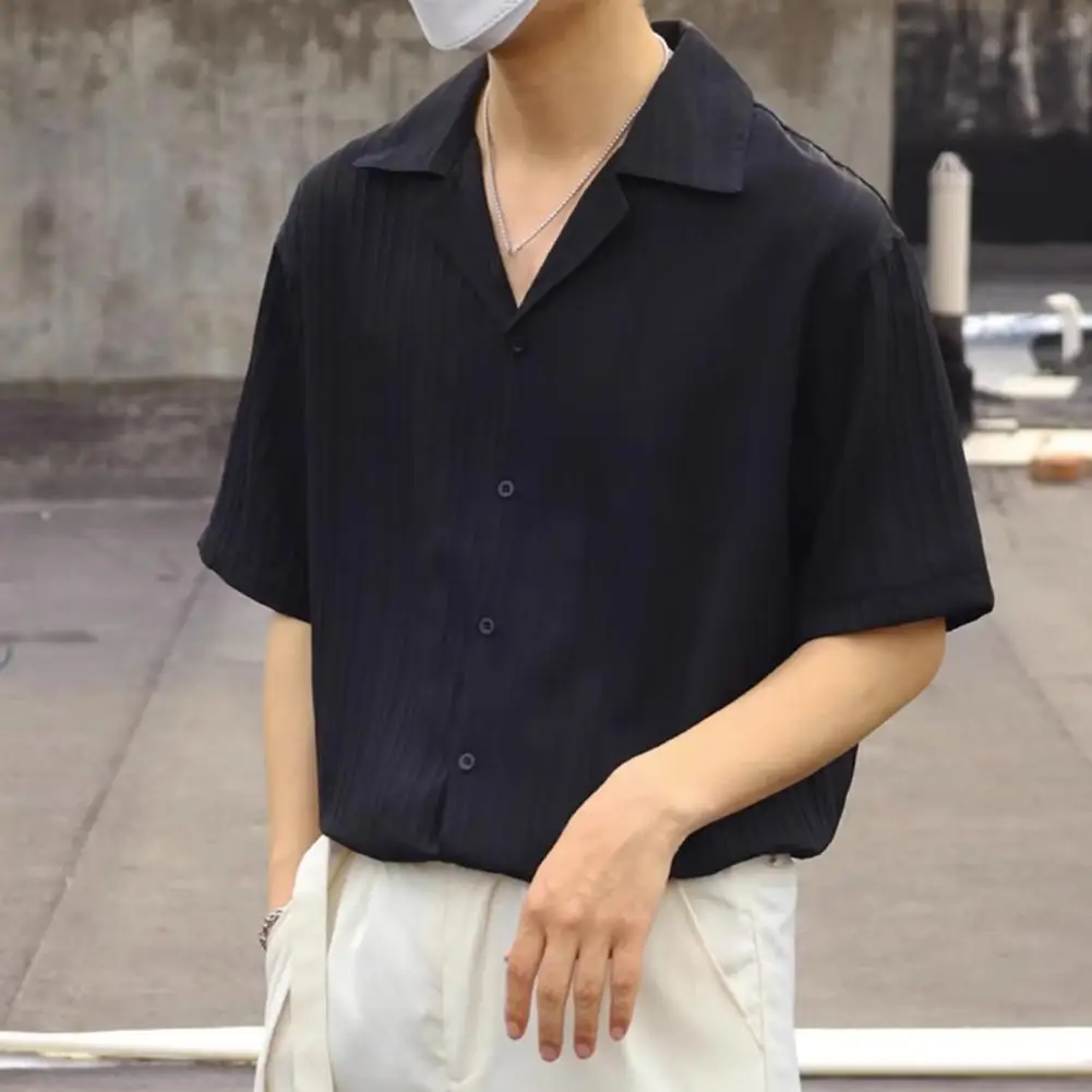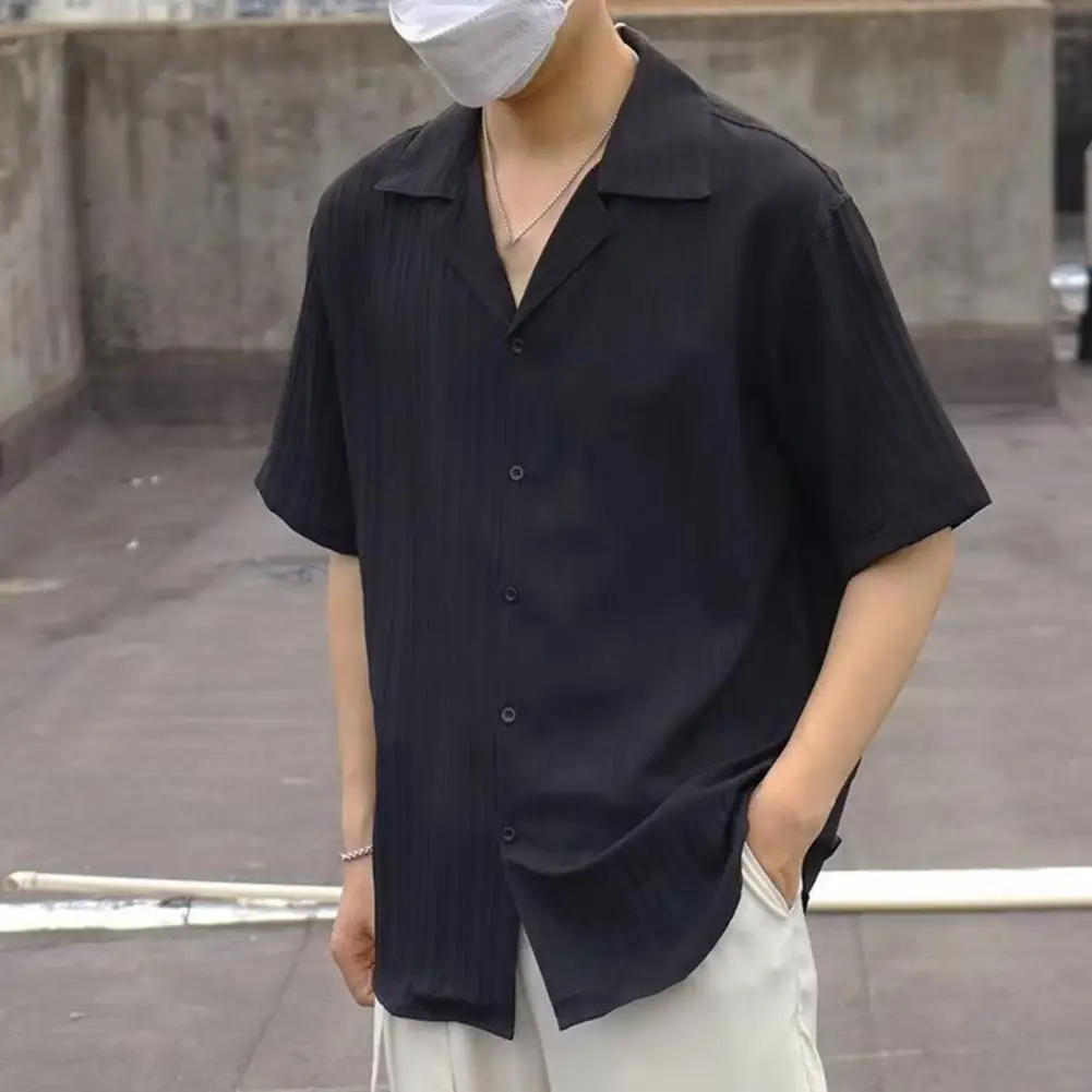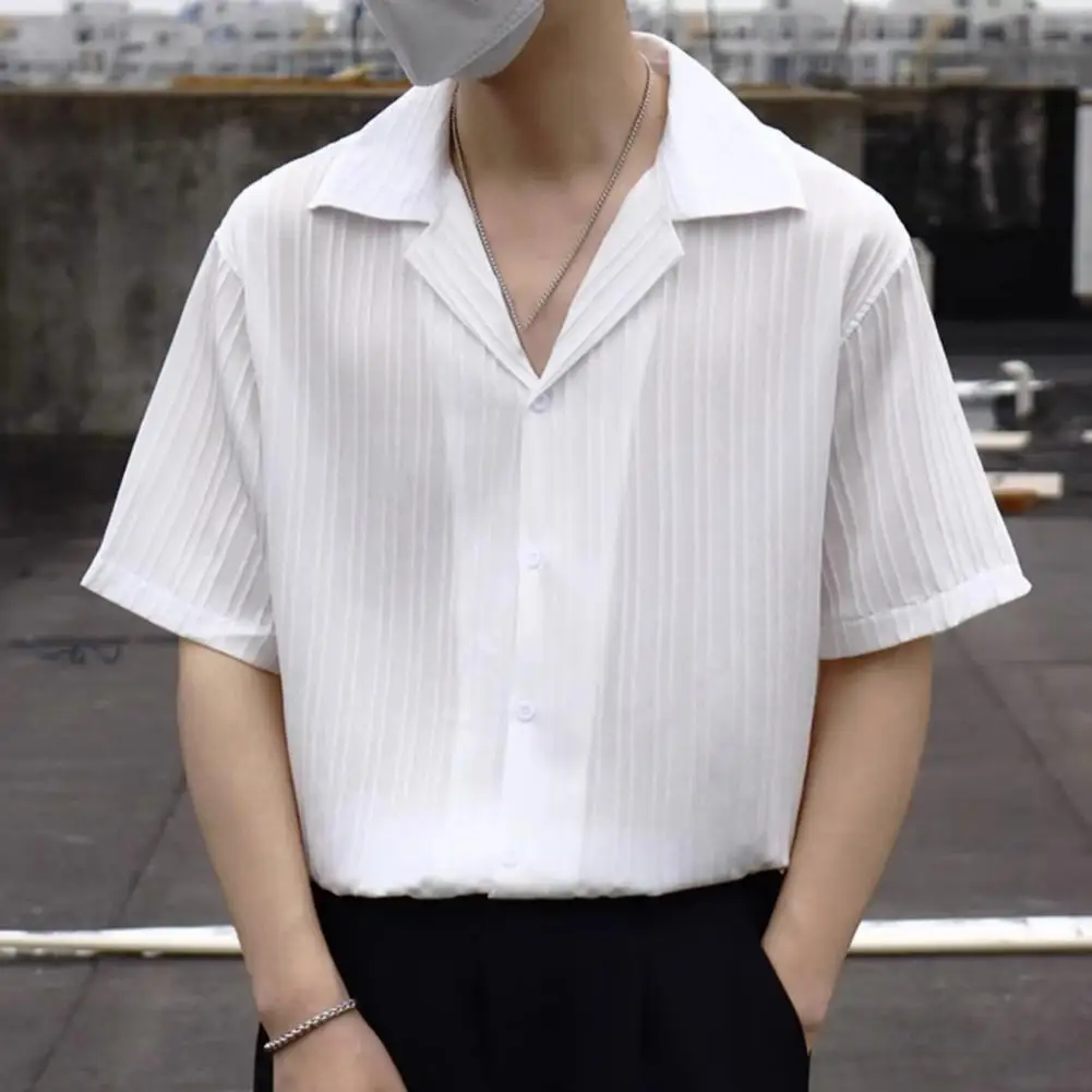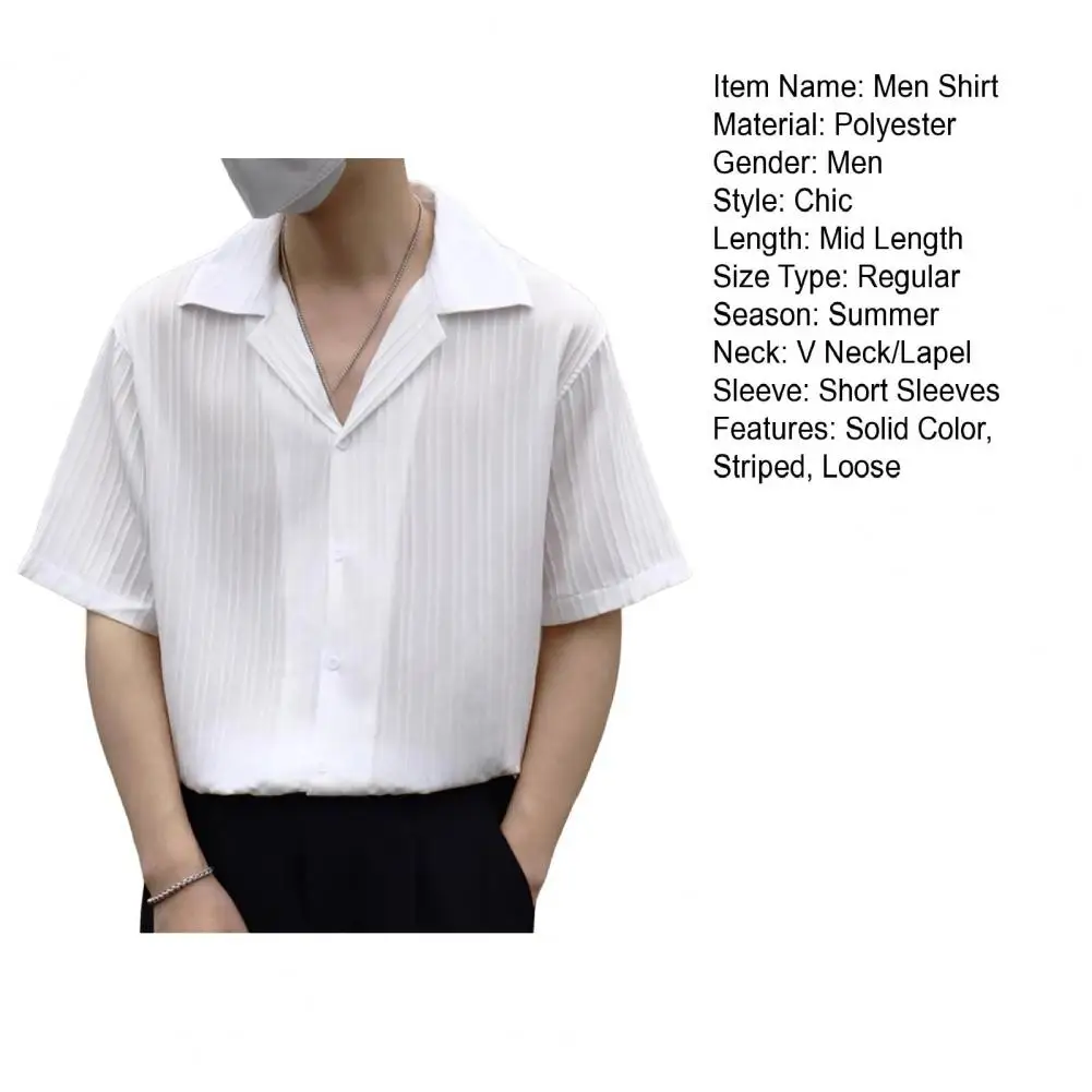 Top de oficina para hombre, camisa de negocios con cuello en V a rayas para hombre con cuello vuelto, manga corta, Top de oficina Formal para hombre Charm