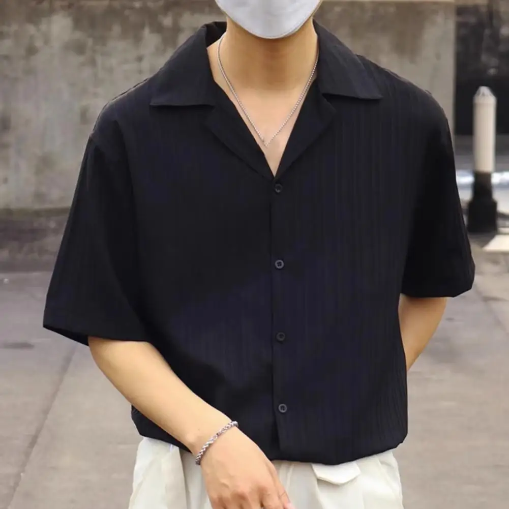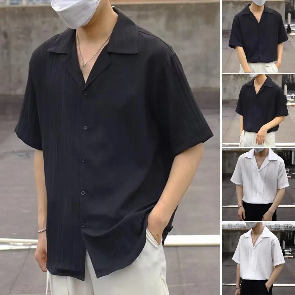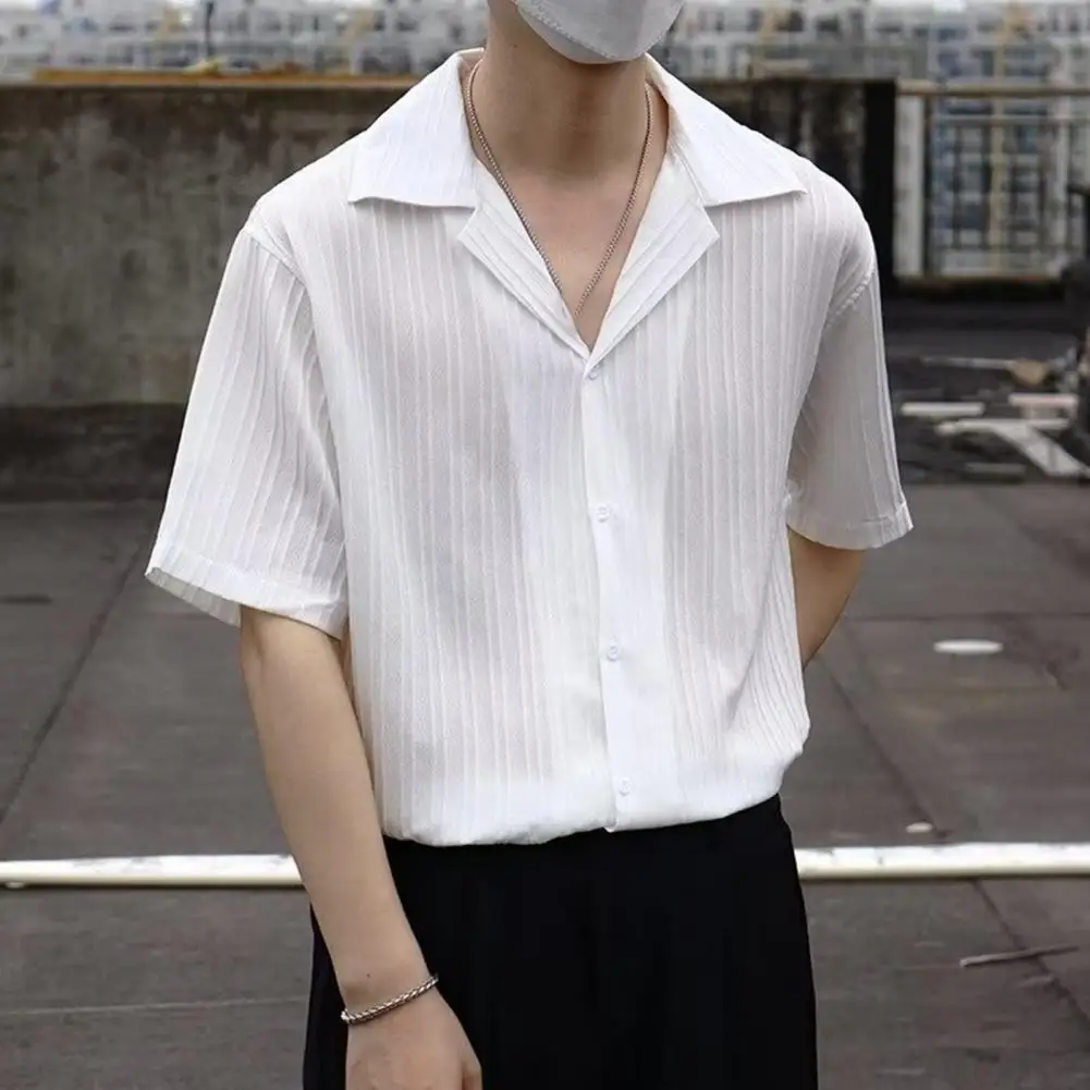 Top de oficina para hombre, camisa de negocios con cuello en V a rayas para hombre con cuello vuelto, manga corta, Top de oficina Formal para hombre Charm