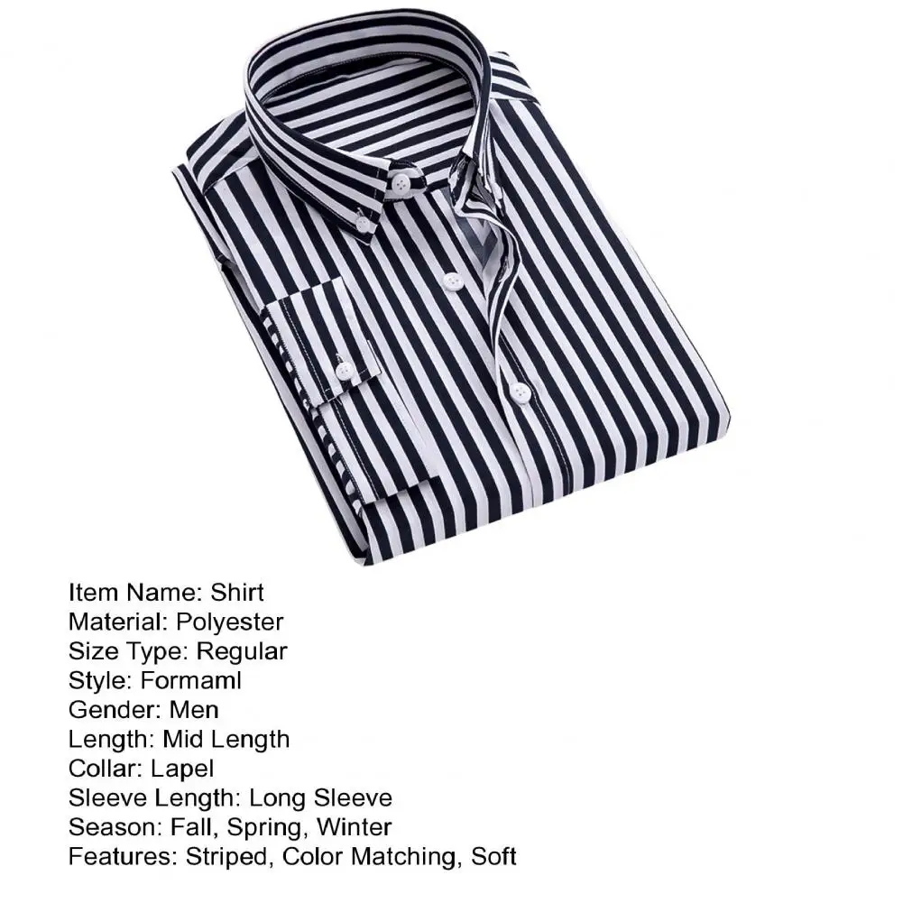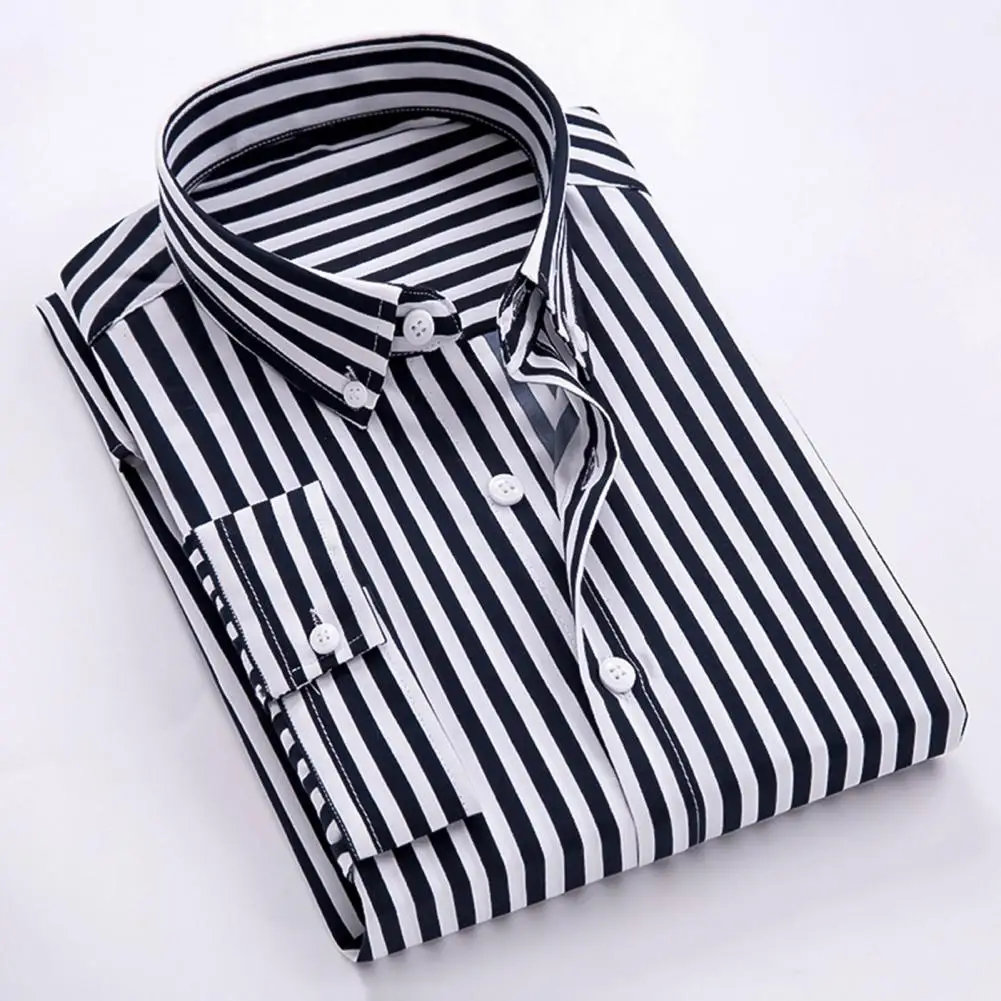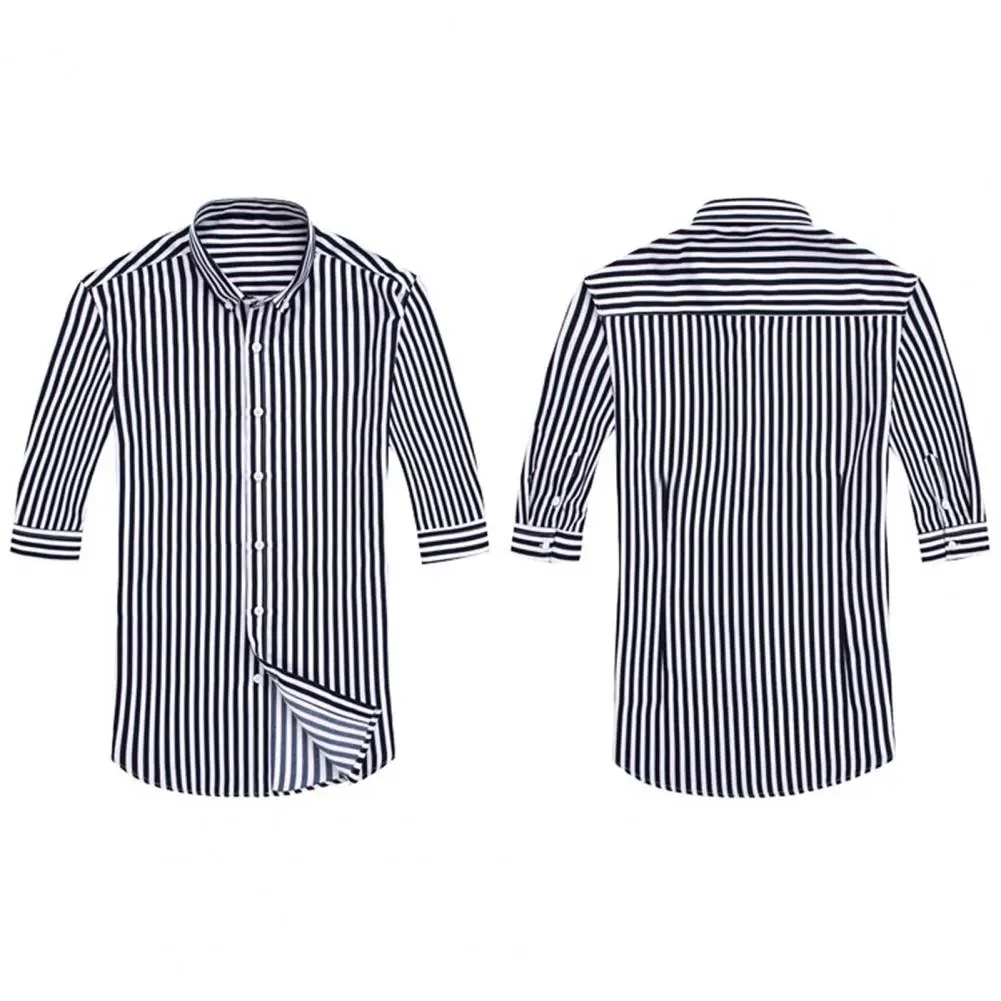 Camisa de oficina para hombre, camisa de negocios de manga tres cuartos a rayas para hombre, Top de oficina con solapa ajustada en estilo Formal suave de longitud media para hombre