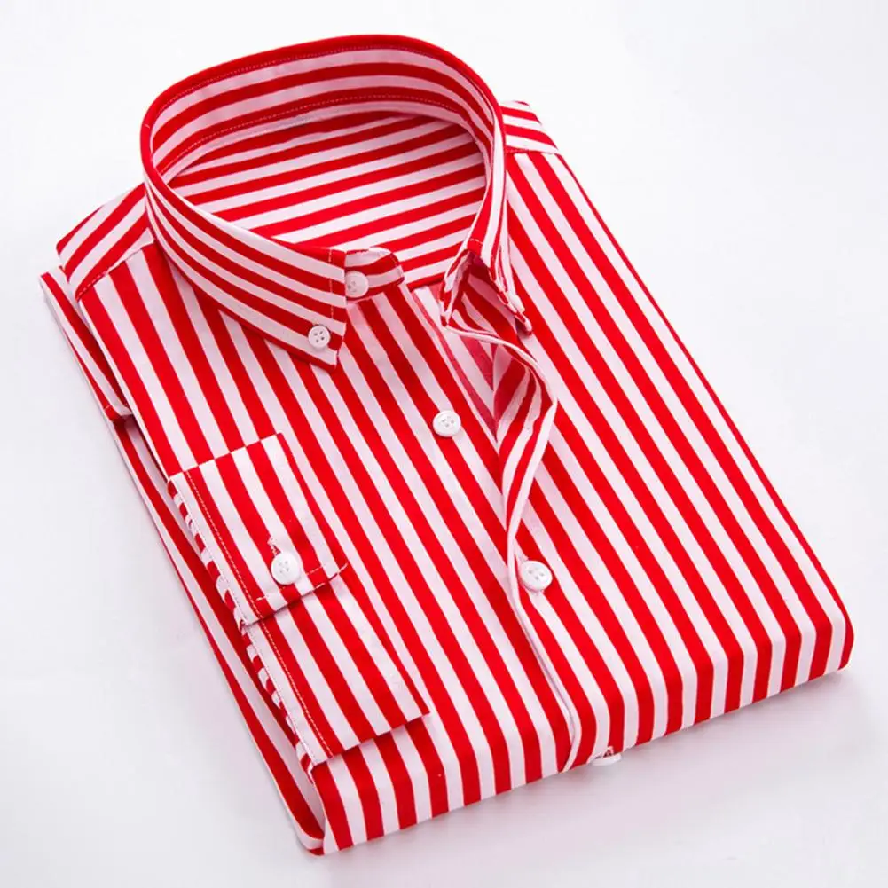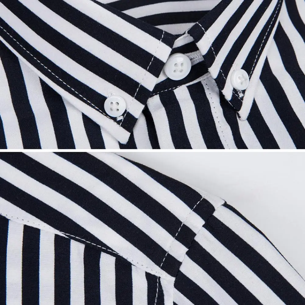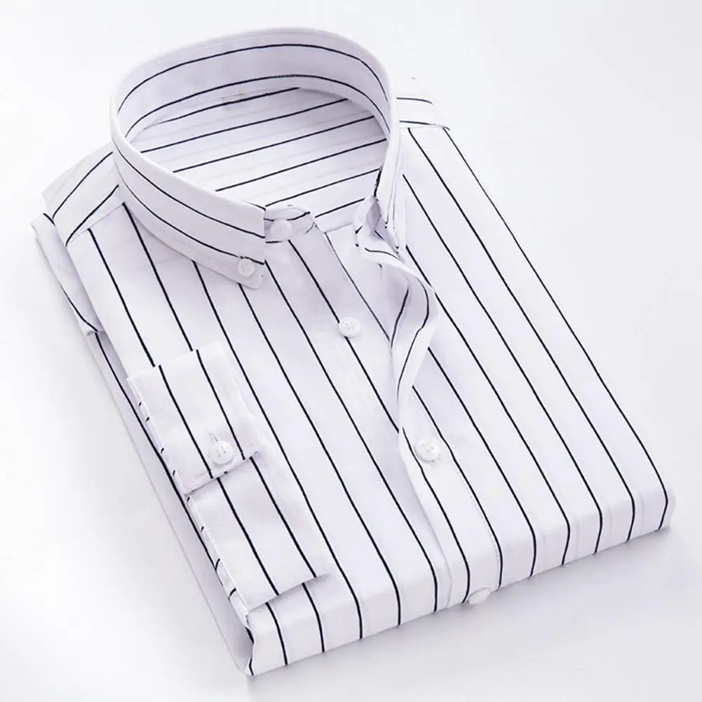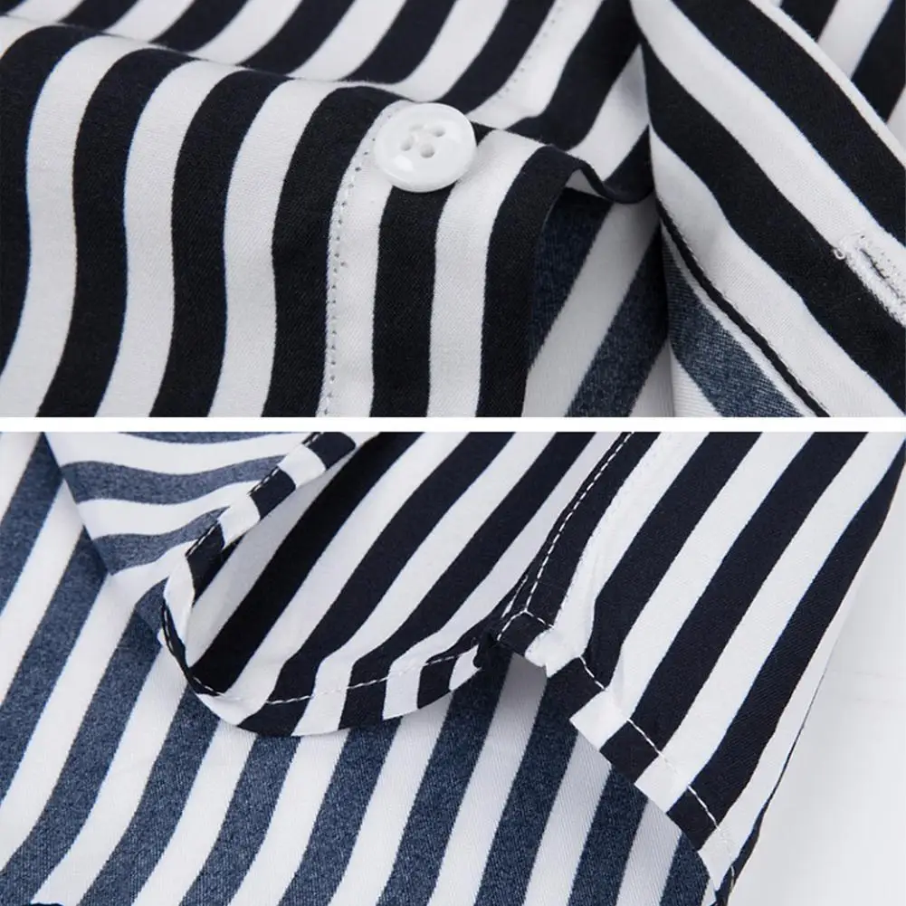 Camisa de oficina para hombre, camisa de negocios de manga tres cuartos a rayas para hombre, Top de oficina con solapa ajustada en estilo Formal suave de longitud media para hombre
