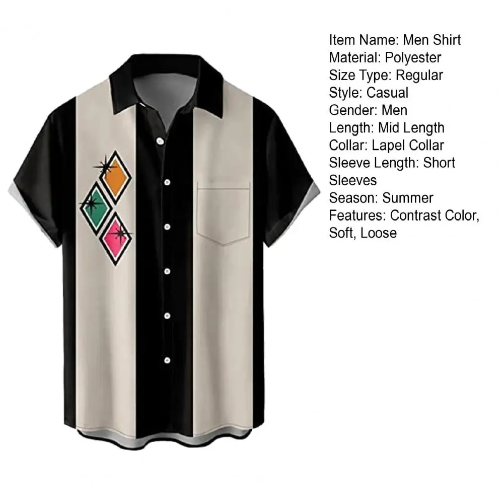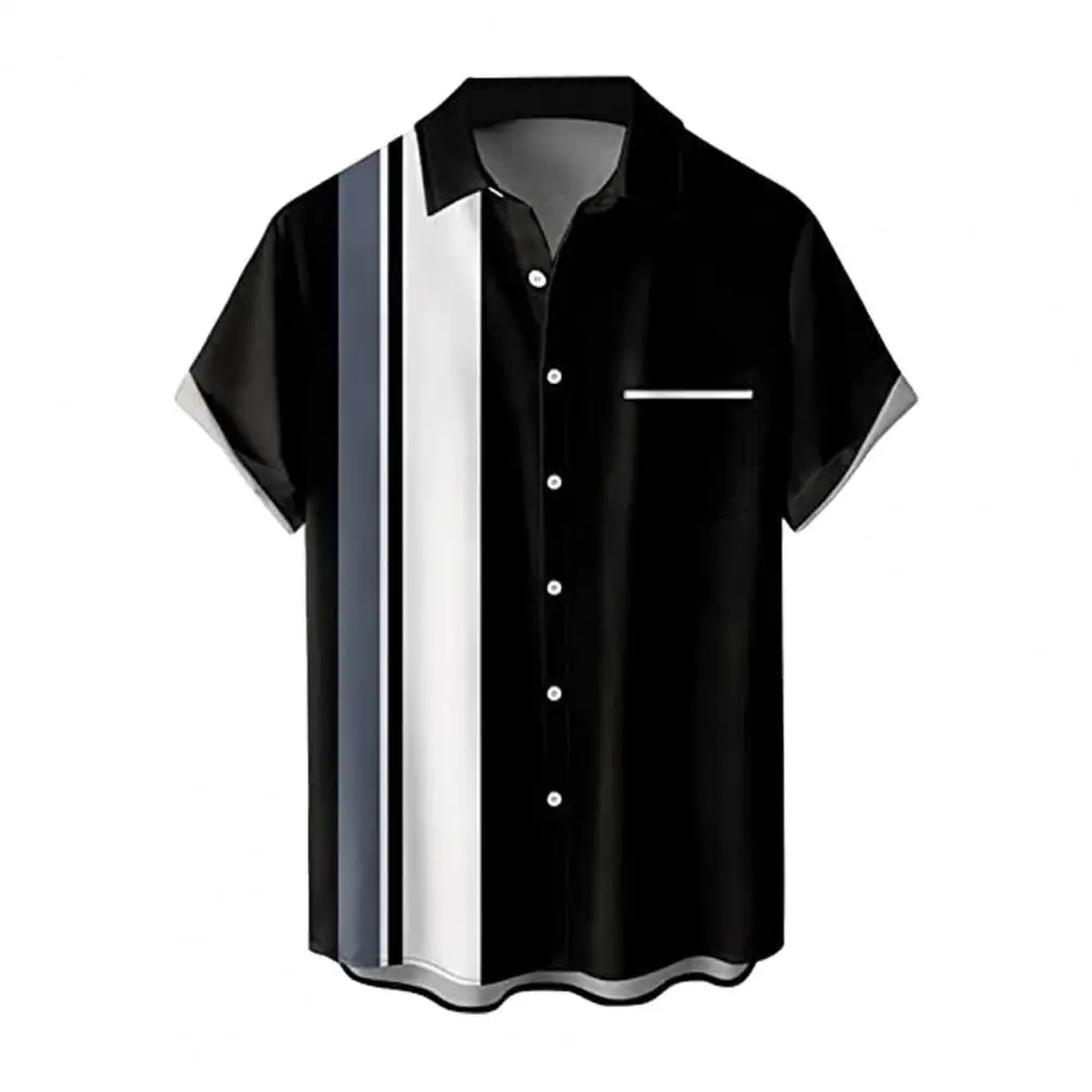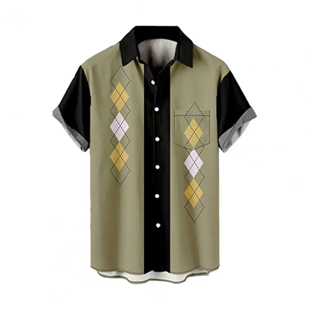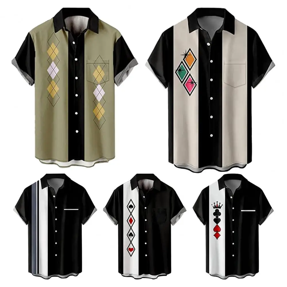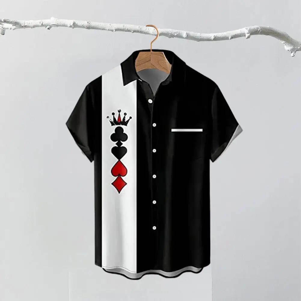 Top transpirable para hombre, camisa de verano con estampado de póker para hombre con bolsillo de parche de Color en contraste, Top informal transpirable para uso diario corto
