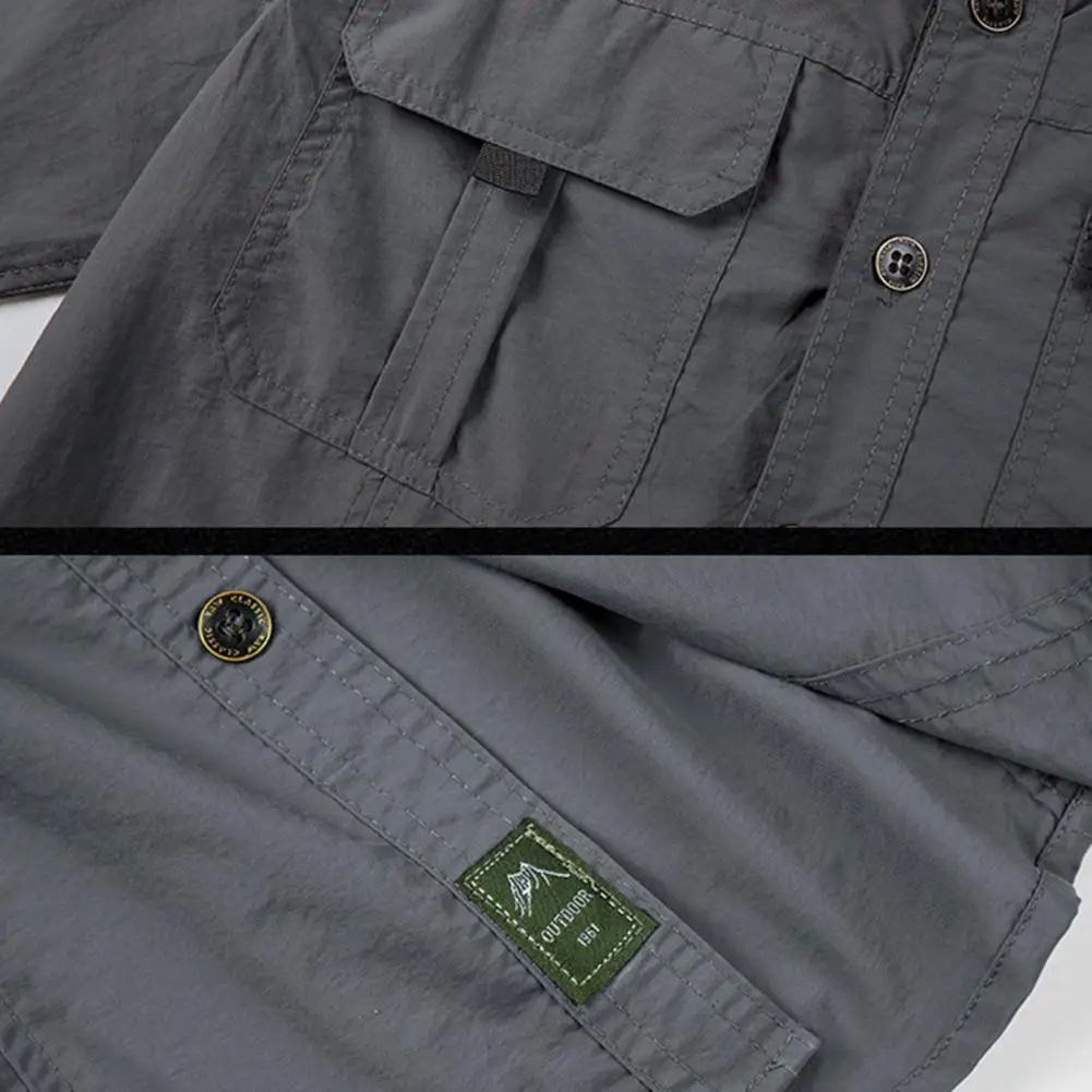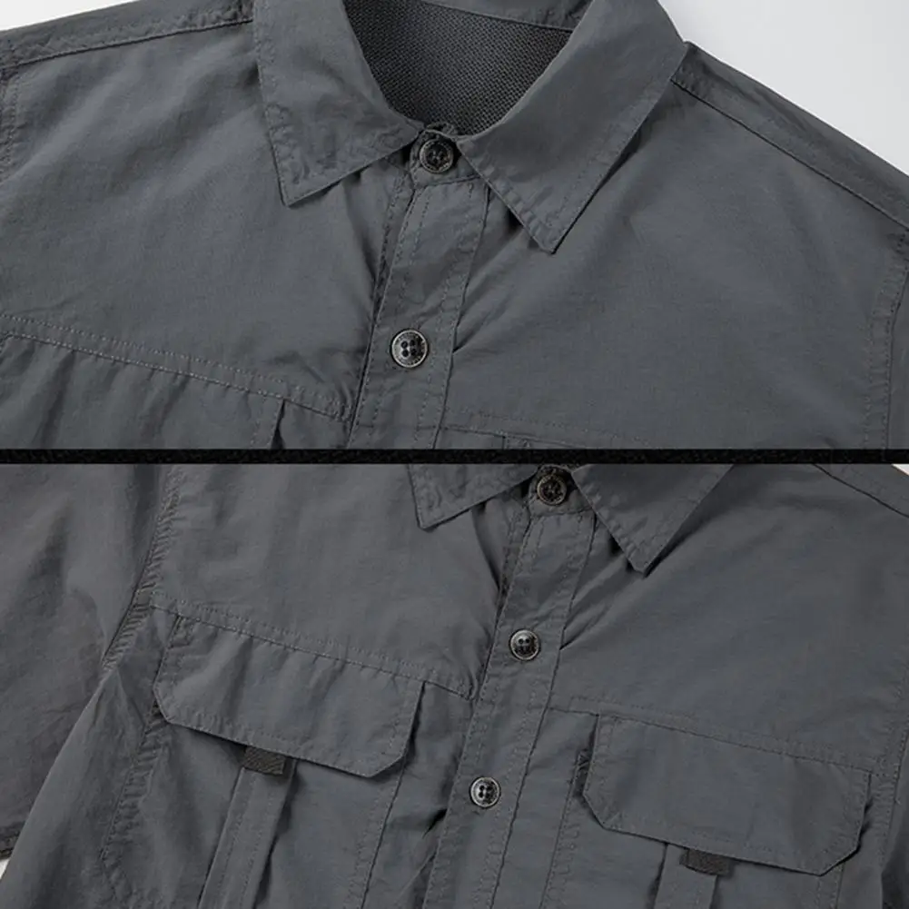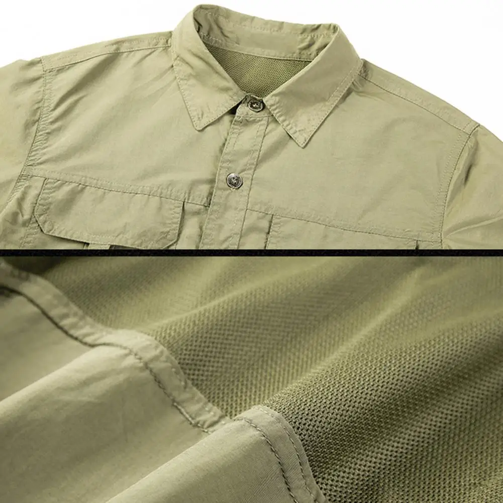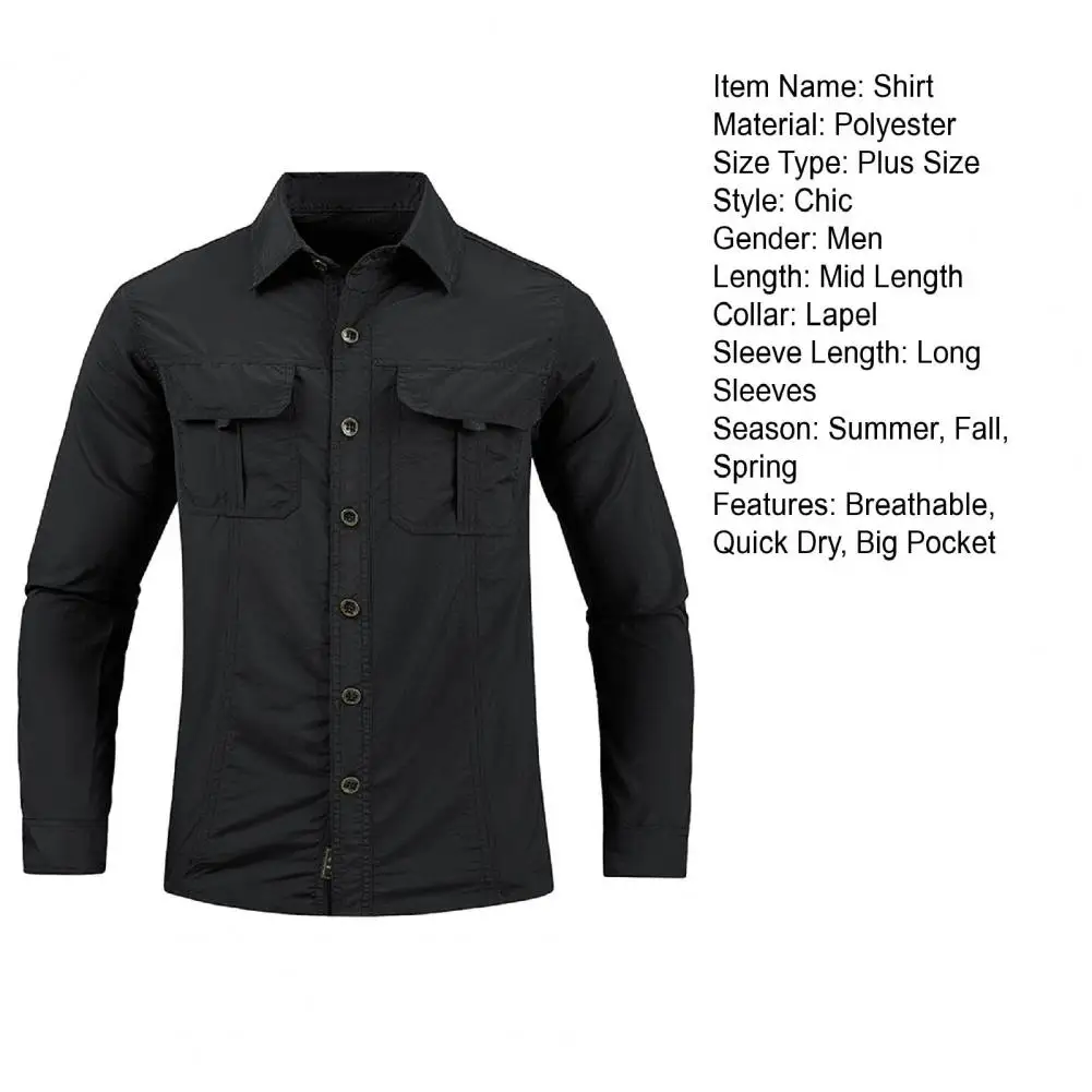 Camisa transpirable Camisa de trabajo al aire libre para hombres Manga larga transpirable de secado rápido con bolsillos grandes Solapa de color sólido para primavera