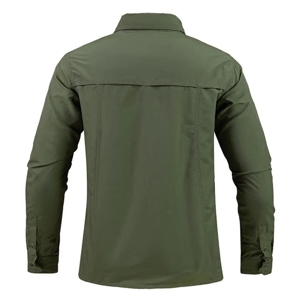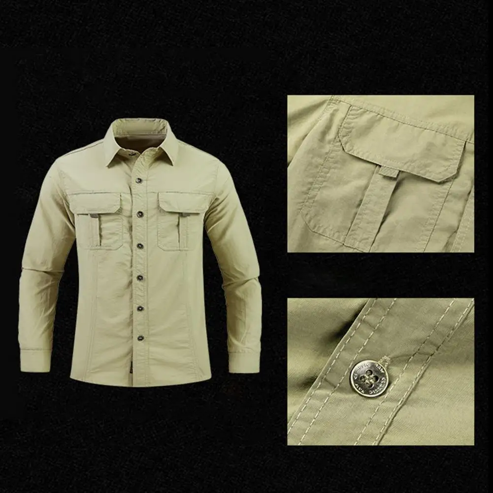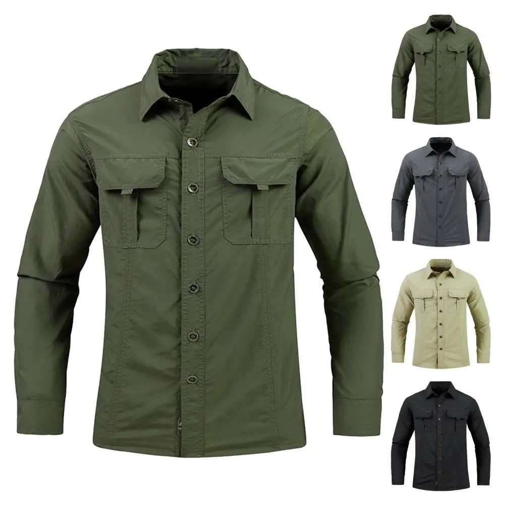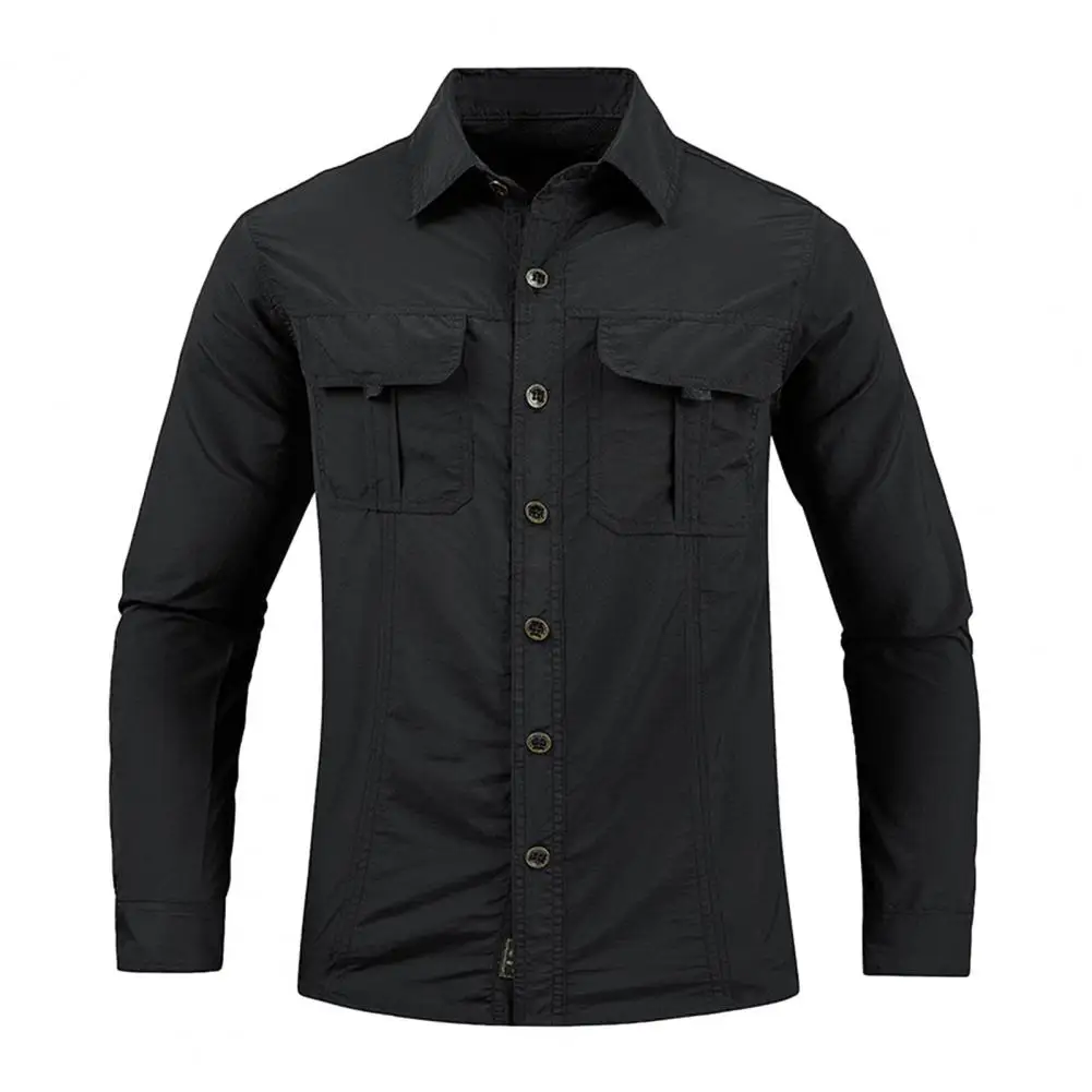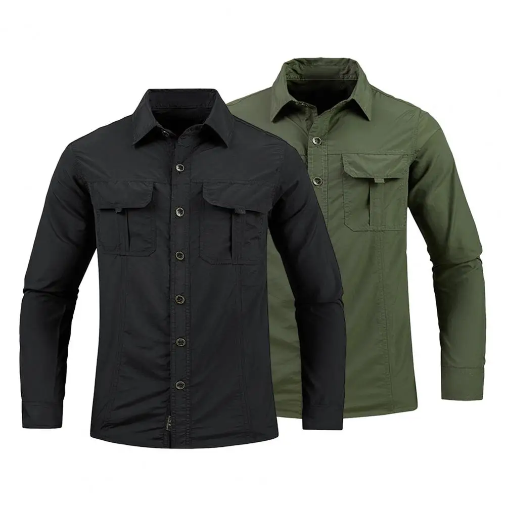 Camisa transpirable Camisa de trabajo al aire libre para hombres Manga larga transpirable de secado rápido con bolsillos grandes Solapa de color sólido para primavera