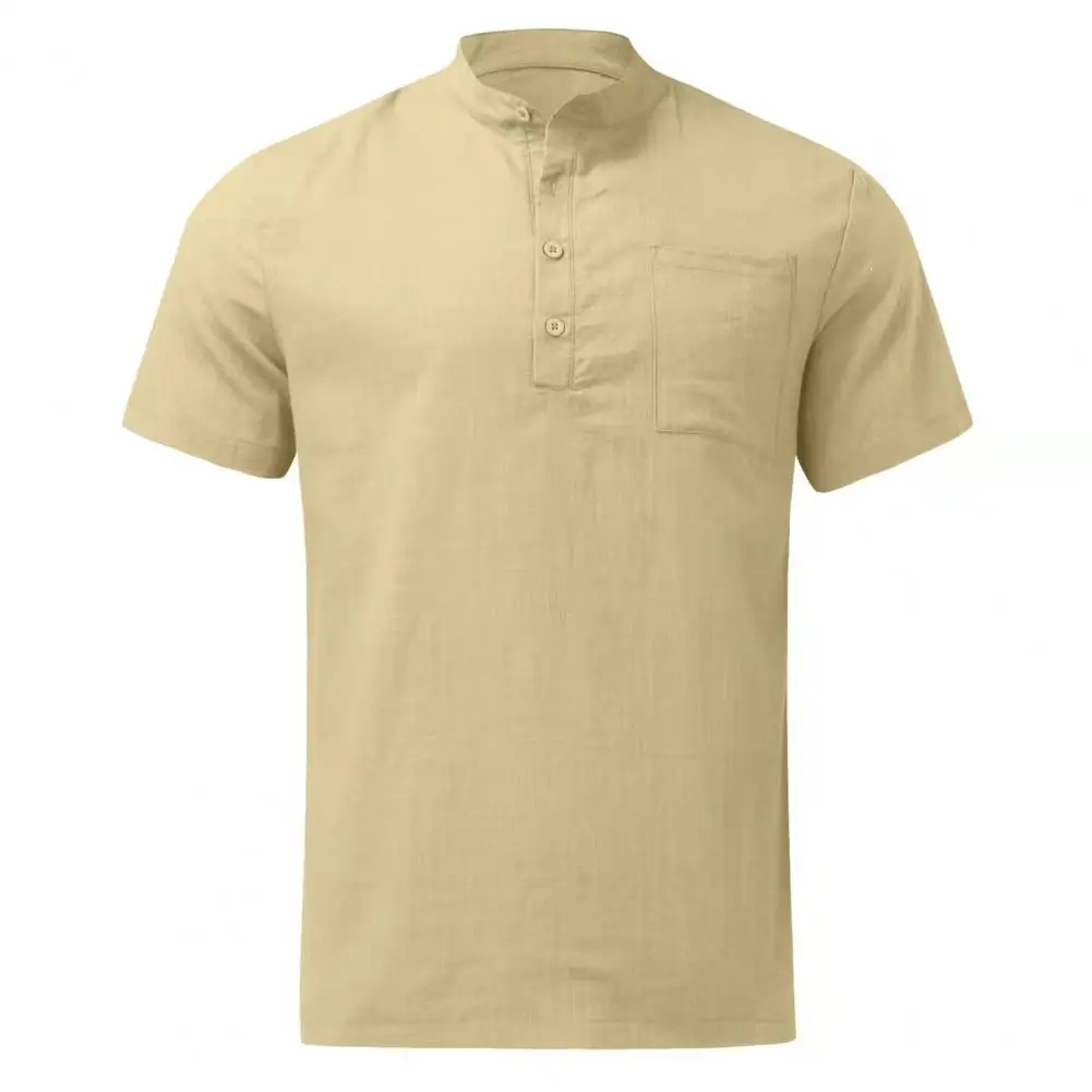 Camisa de un solo pecho Camisa de verano elegante para hombre con cuello levantado Bolsillo en el pecho Estilo de viaje de negocios Top informal para hombres