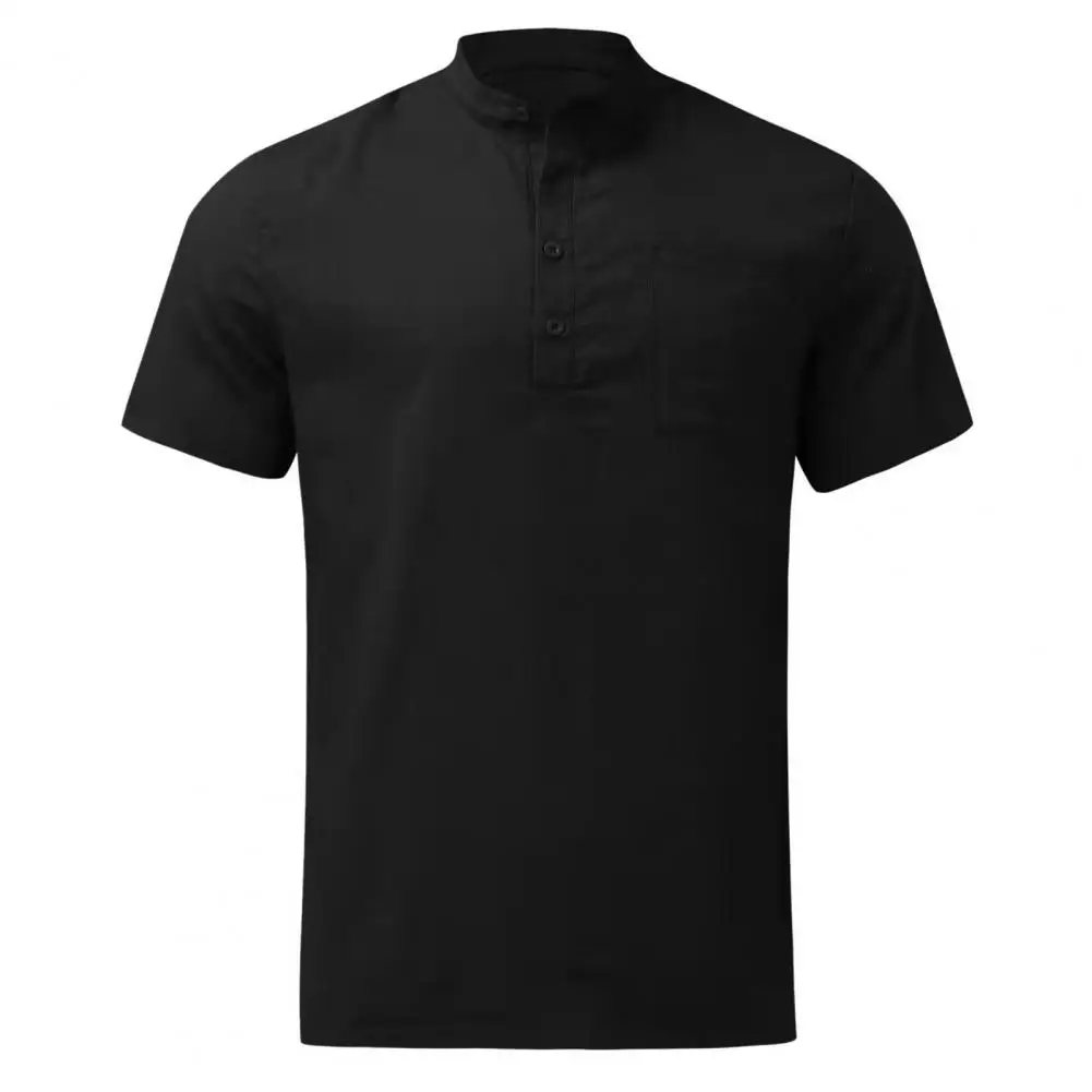 Camisa de hombre versátil y elegante con cuello alto y manga corta.