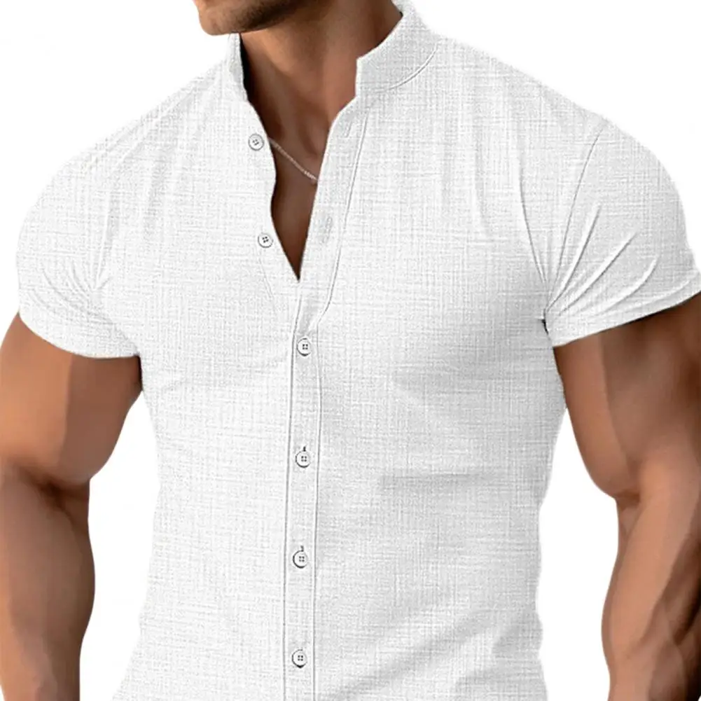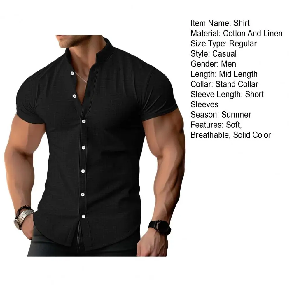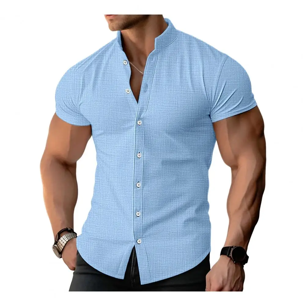 Camisa de un solo pecho Camisa de cárdigan con cuello levantado para hombre con estilo para verano Ropa informal de negocios Camisa de color sólido