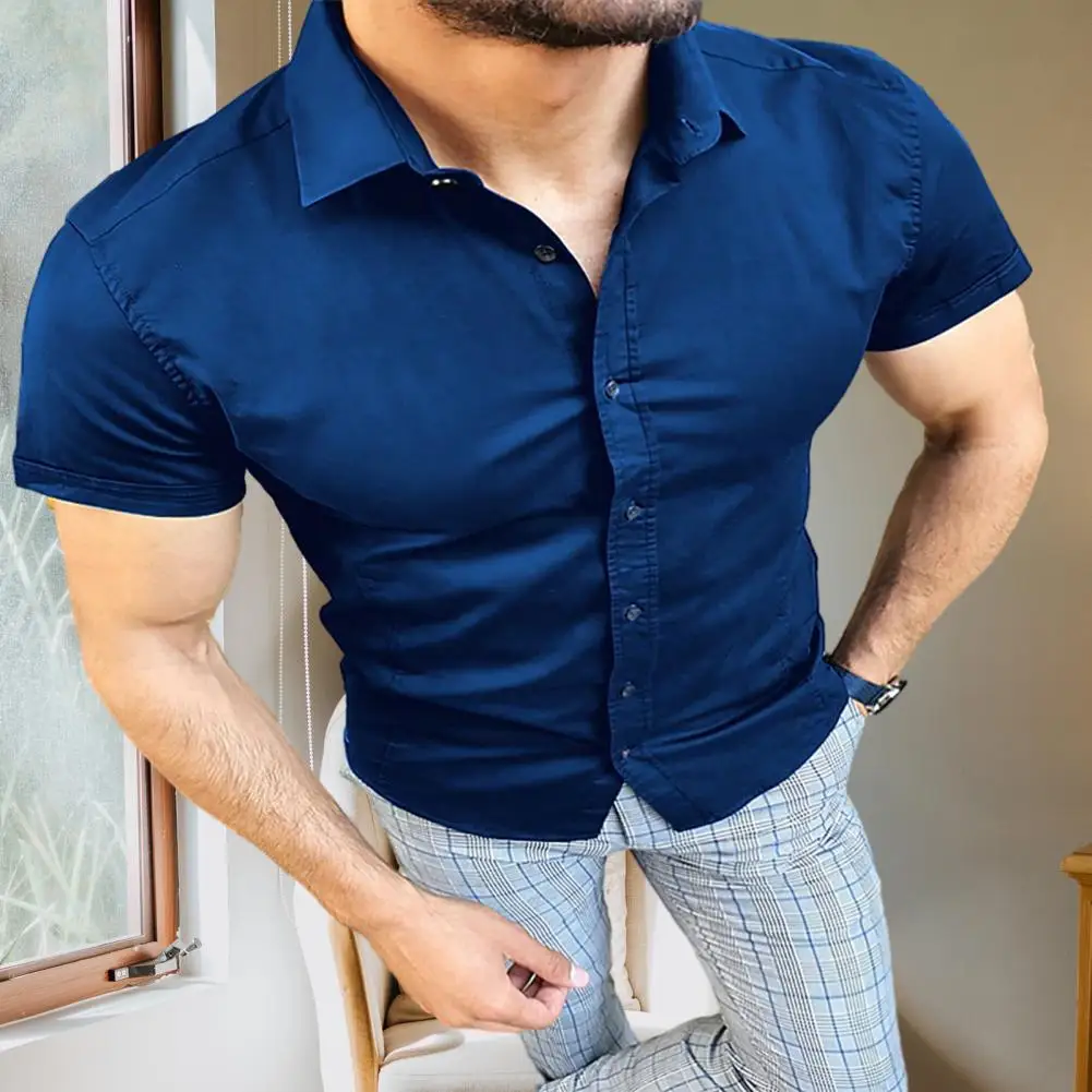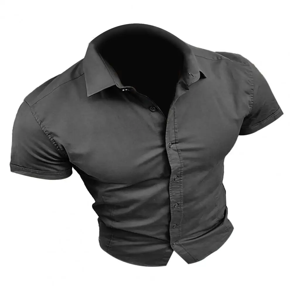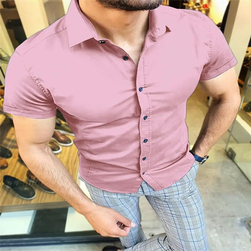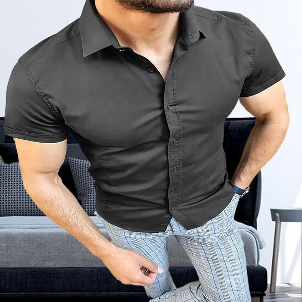 Top de verano para hombre, camisa de verano ajustada transpirable para hombre con cuello vuelto, diseño de un solo pecho, Color sólido suave para Formal