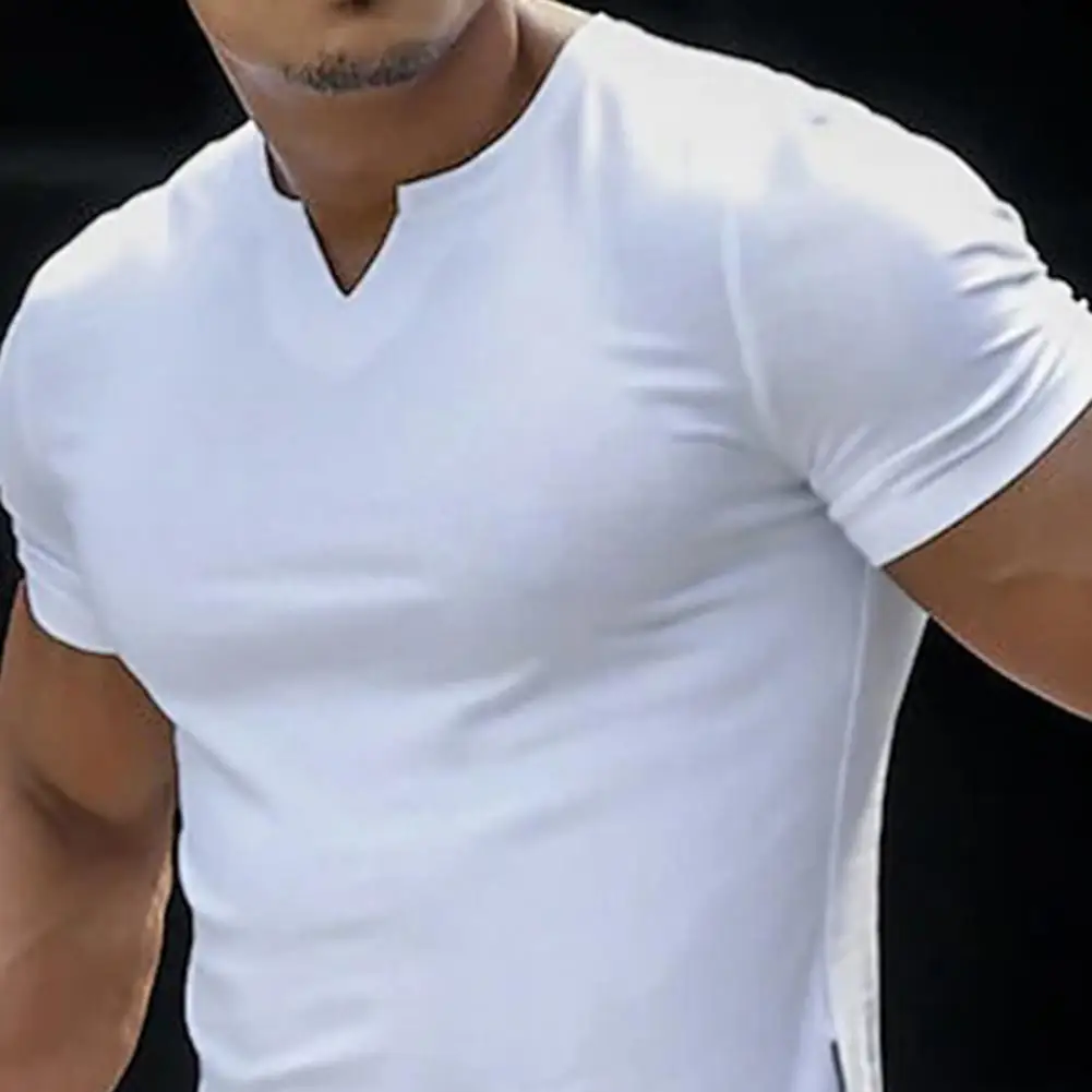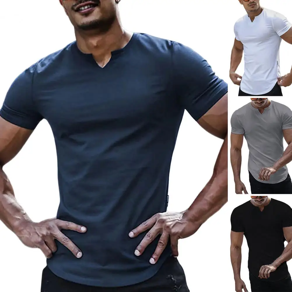 ESTILO: moda género: hombres tipo de talla: regular temporada: verano TIPO DE CUELLO: cuello en V longitud de La Manga: corto longitud de La Manga: longitud media características: color sólido, ajuste Delgado, dobladillo