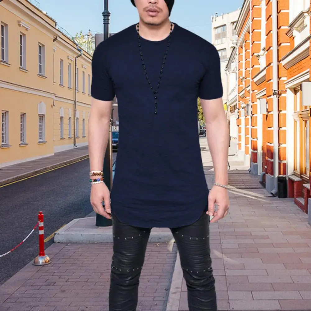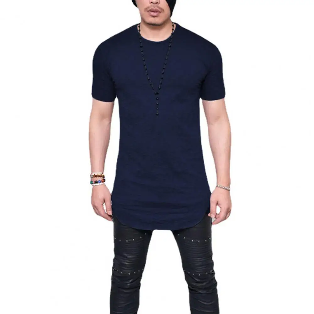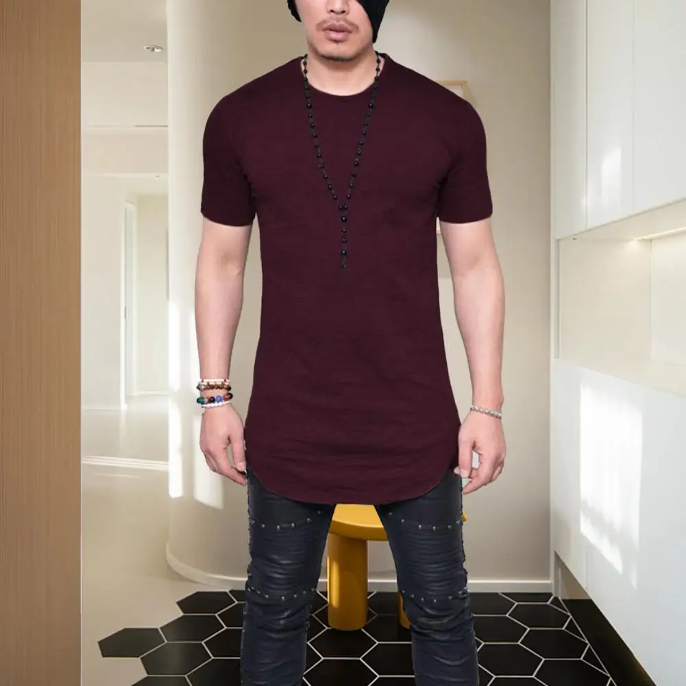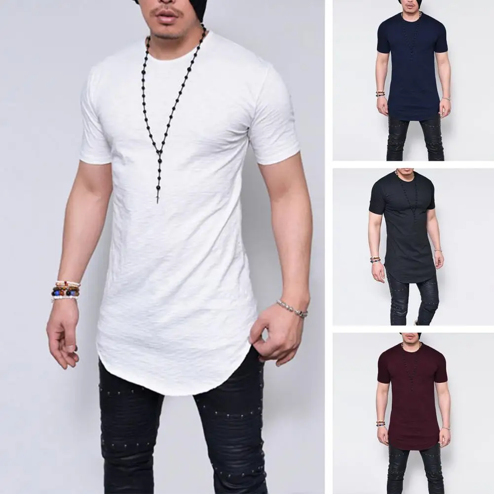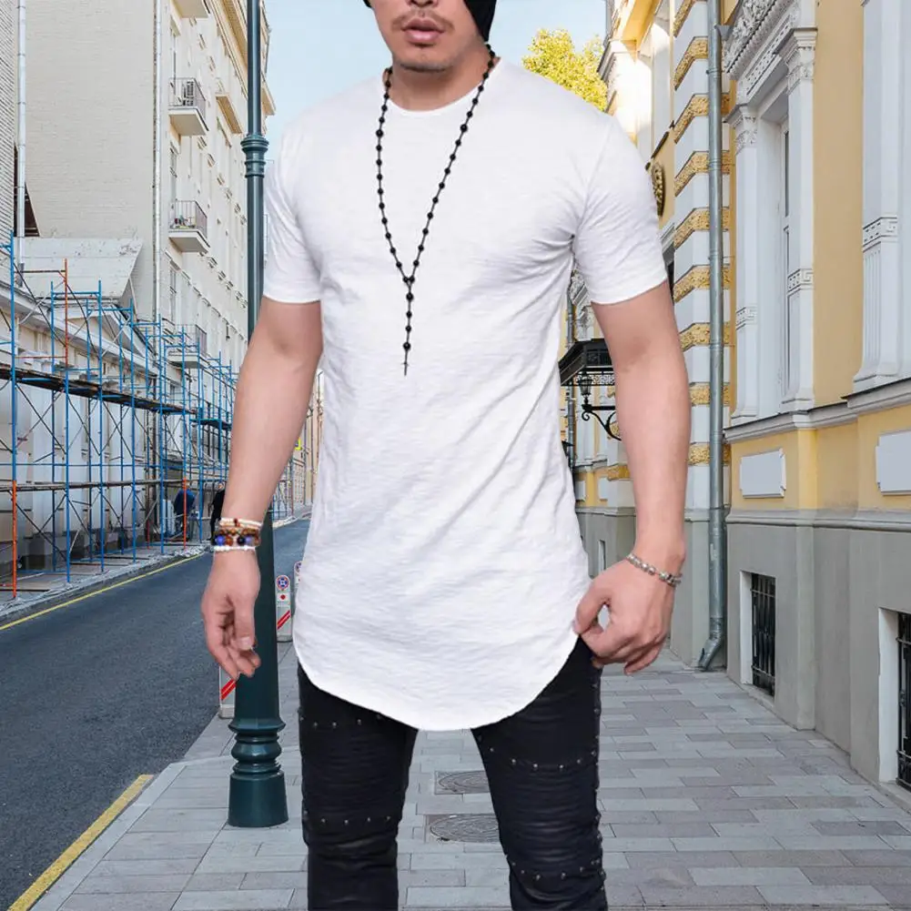 Comprar Camiseta de verano para hombre, camisa con dobladillo Irregular, ajustada, cuello redondo, pantalones a juego