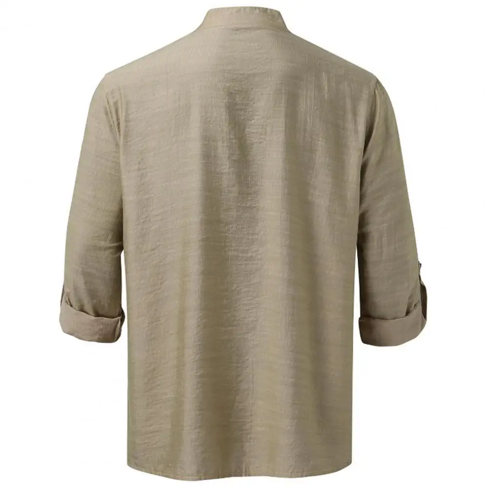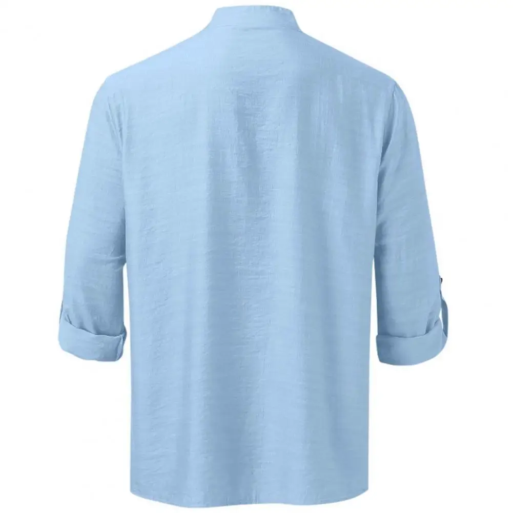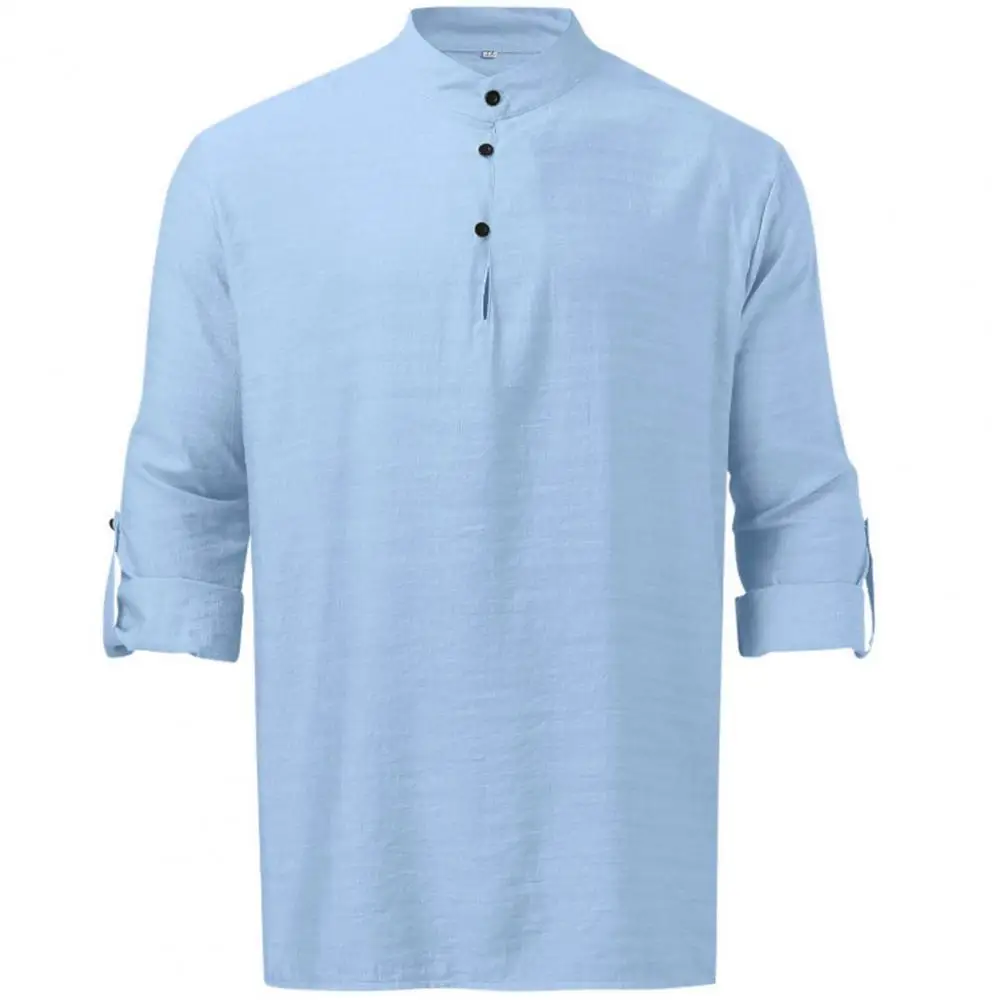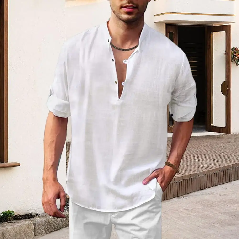 Ropa de verano para hombre, camiseta vintage de manga larga con cuello de pico, tela suave y transpirable, holgada para deportes, ropa de playa informal