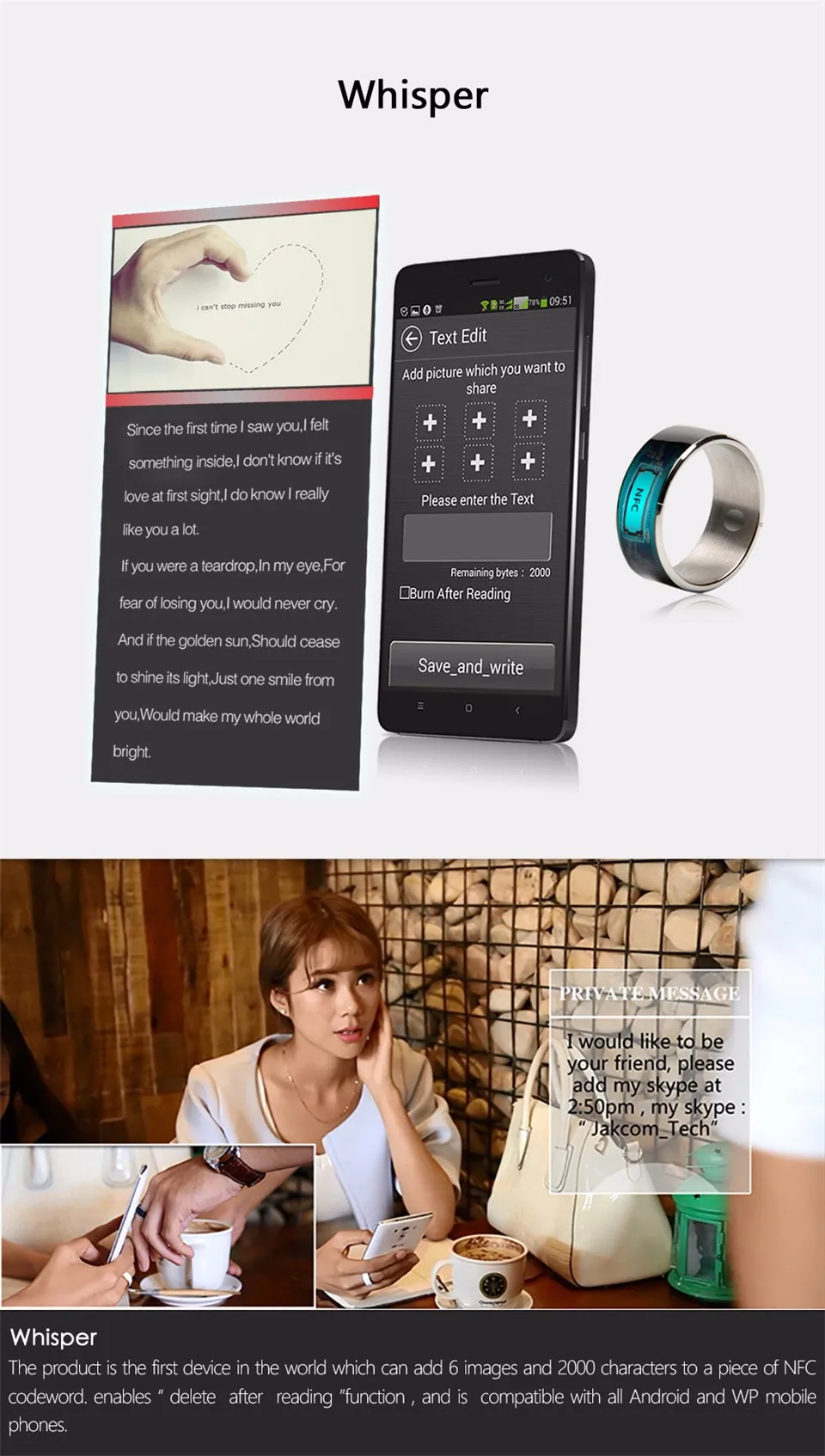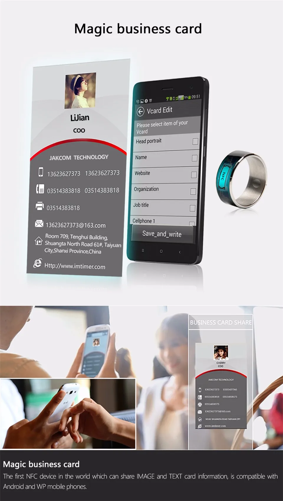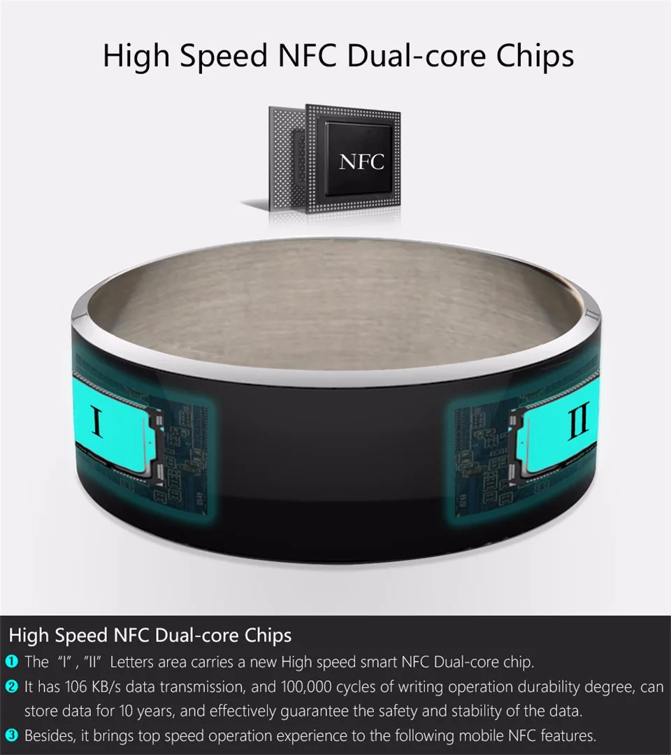 Descripción del producto: Este anillo inteligente es un producto electrónico portátil elegante, que se conecta a un teléfono móvil a través de tecnología de comunicación por radiofrecuencia NFC para operar y compartir datos.No requiere fuente de energía y tiene un alto nivel o rendimiento impermeable.El chip NFC incorporado requiere la función NFC que viene con el teléfono.