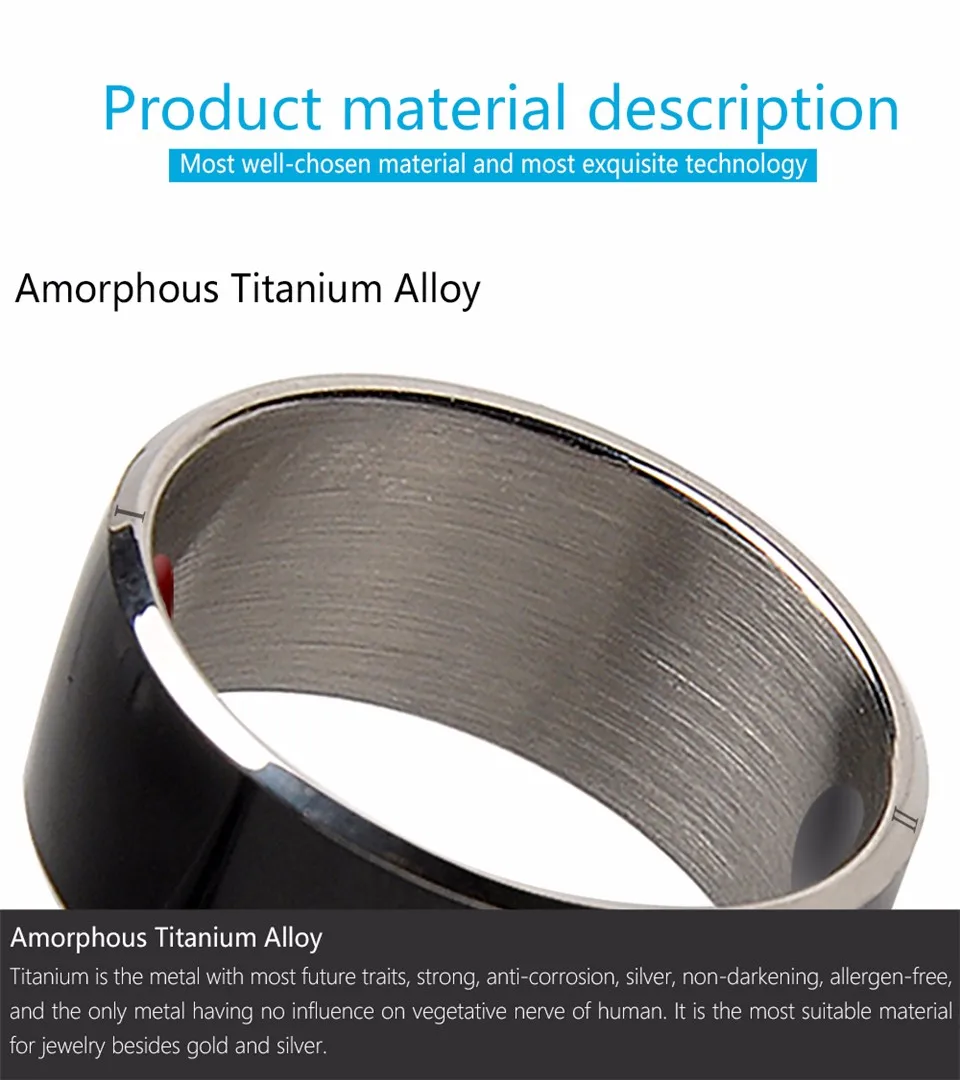 Anillo inteligente NFC multifuncional, la función principal es almacenar e intercambiar información personal, así como desbloquear contenido del teléfono móvil y púa de cifrado de privacidad personal.
