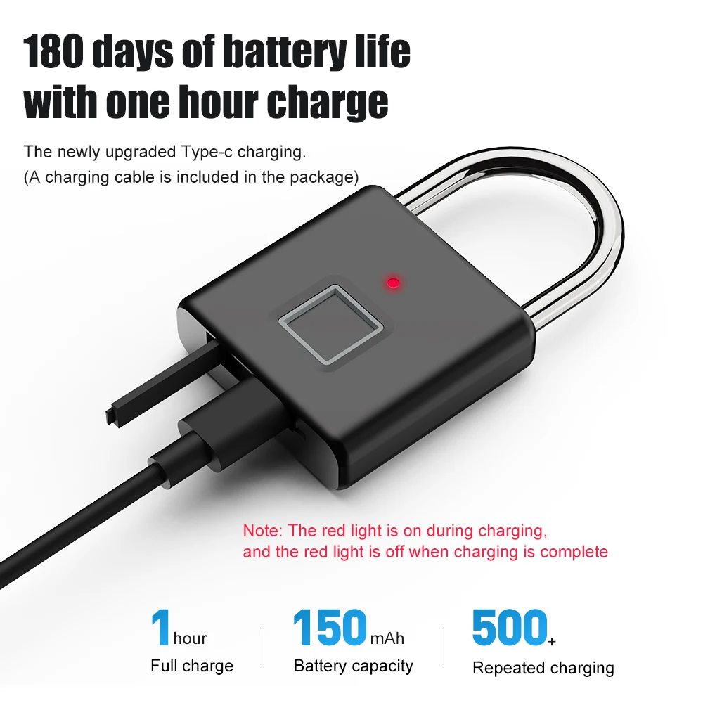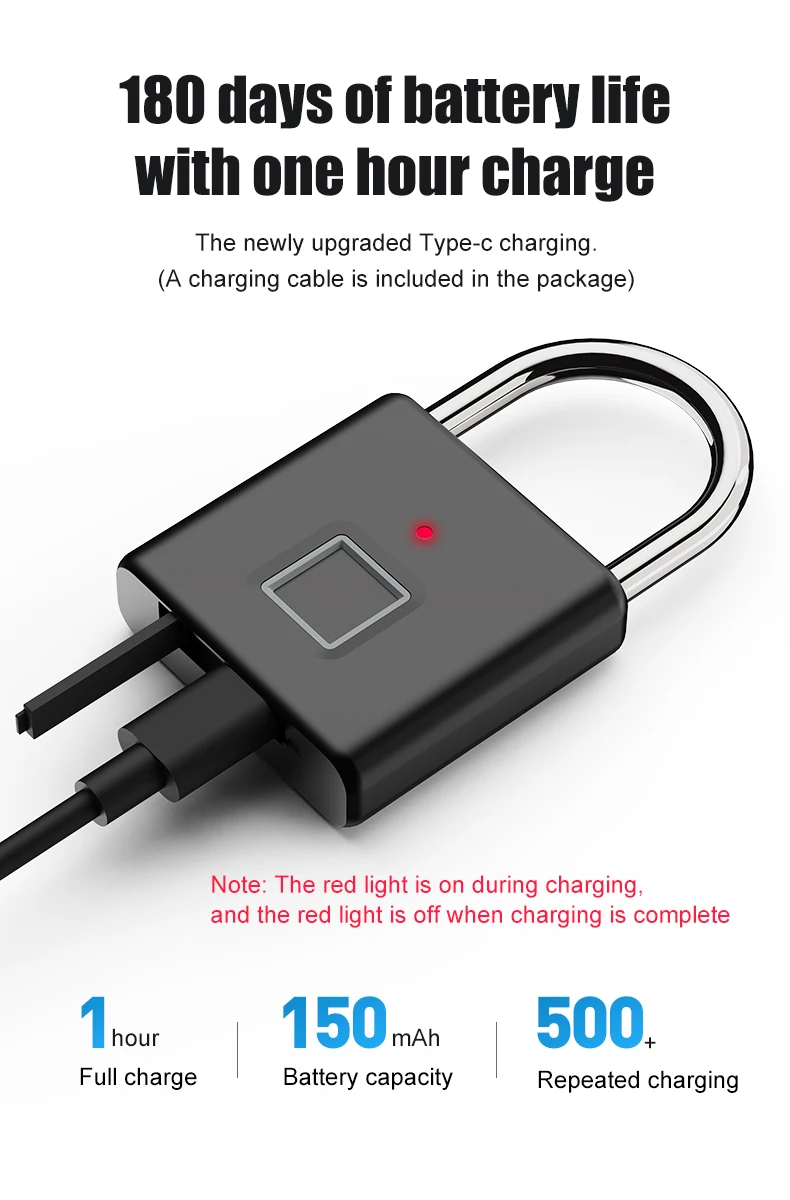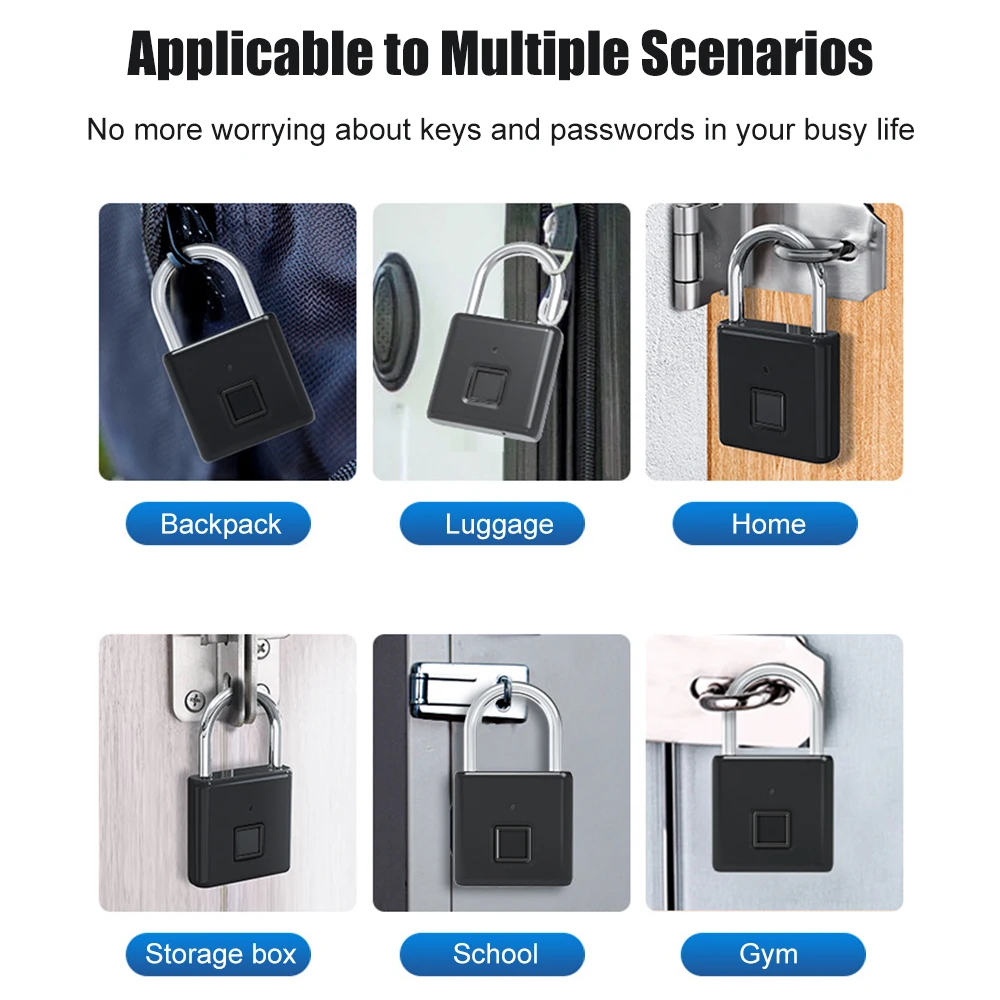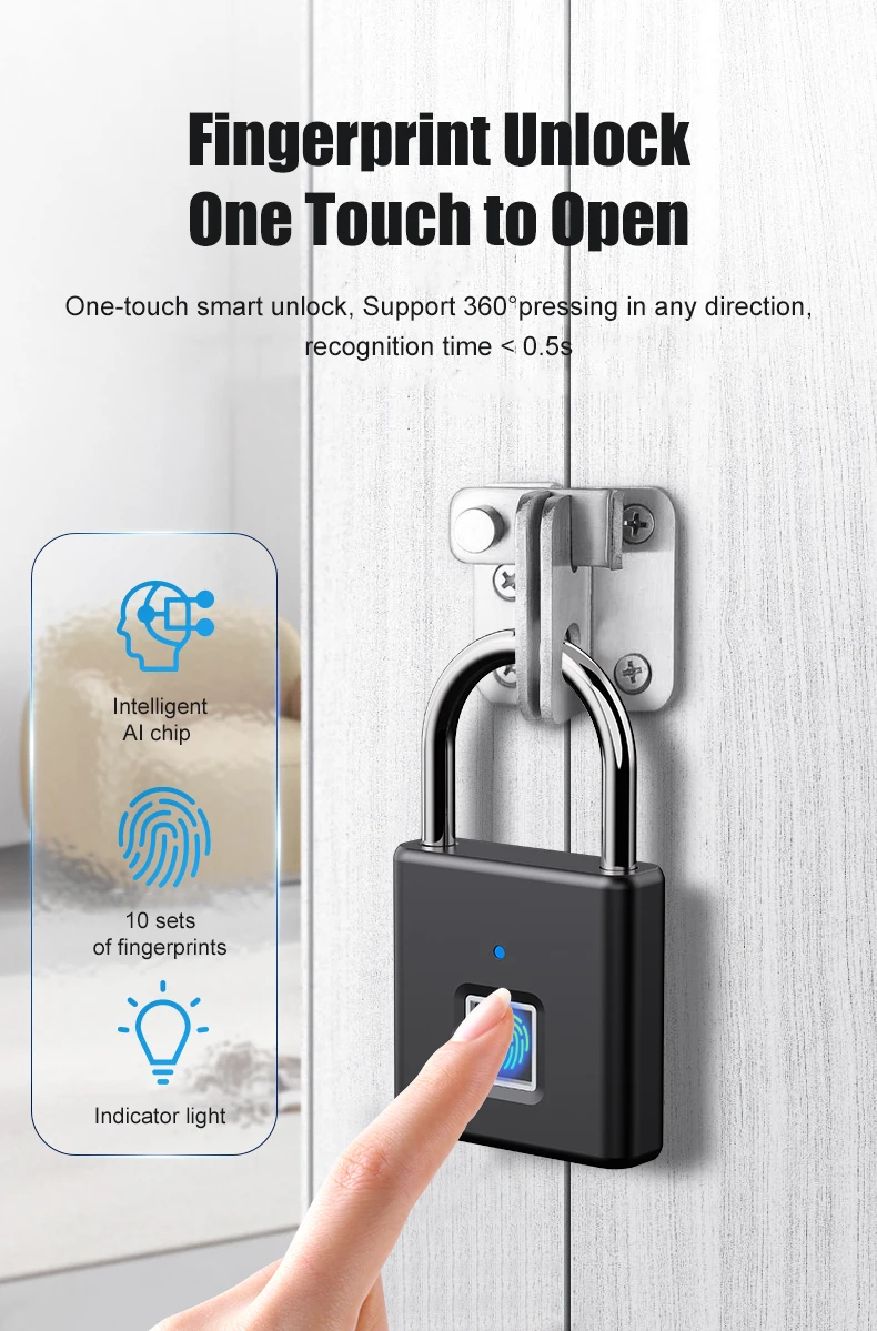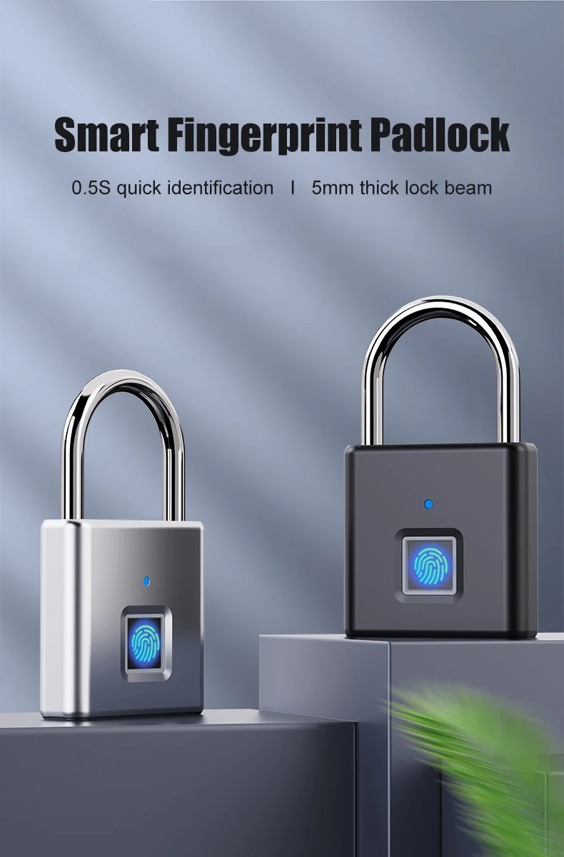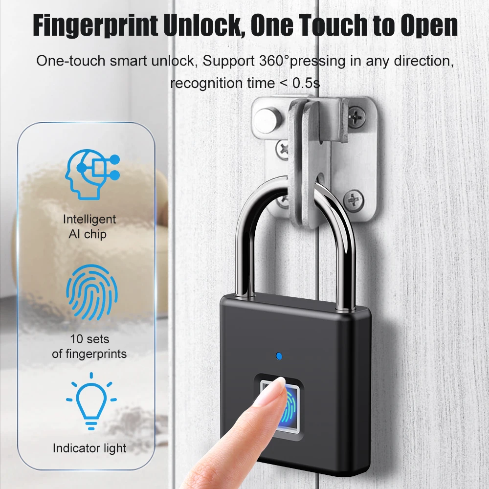 Comprar Candado inteligente con huella dactilar recargable por USB C, cerradura de puerta sin llave, portátil, para bolso, cajón, Maleta, gimnasio, escuela