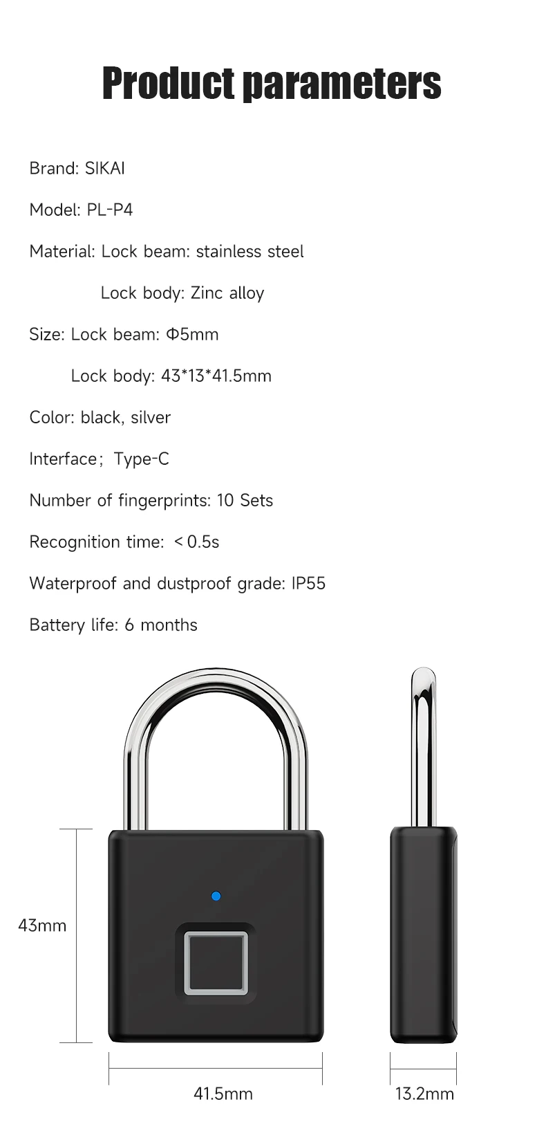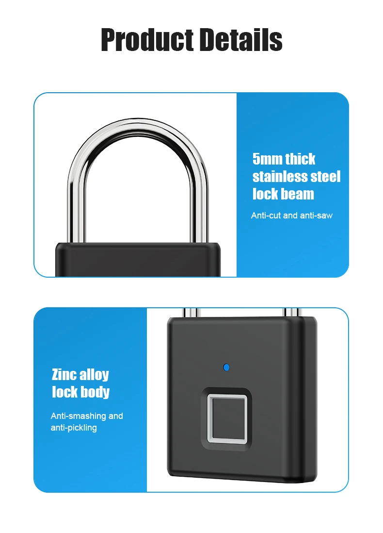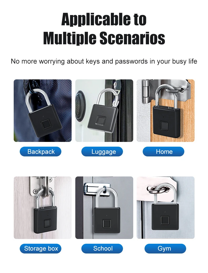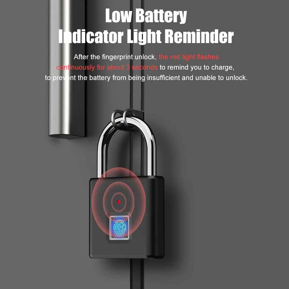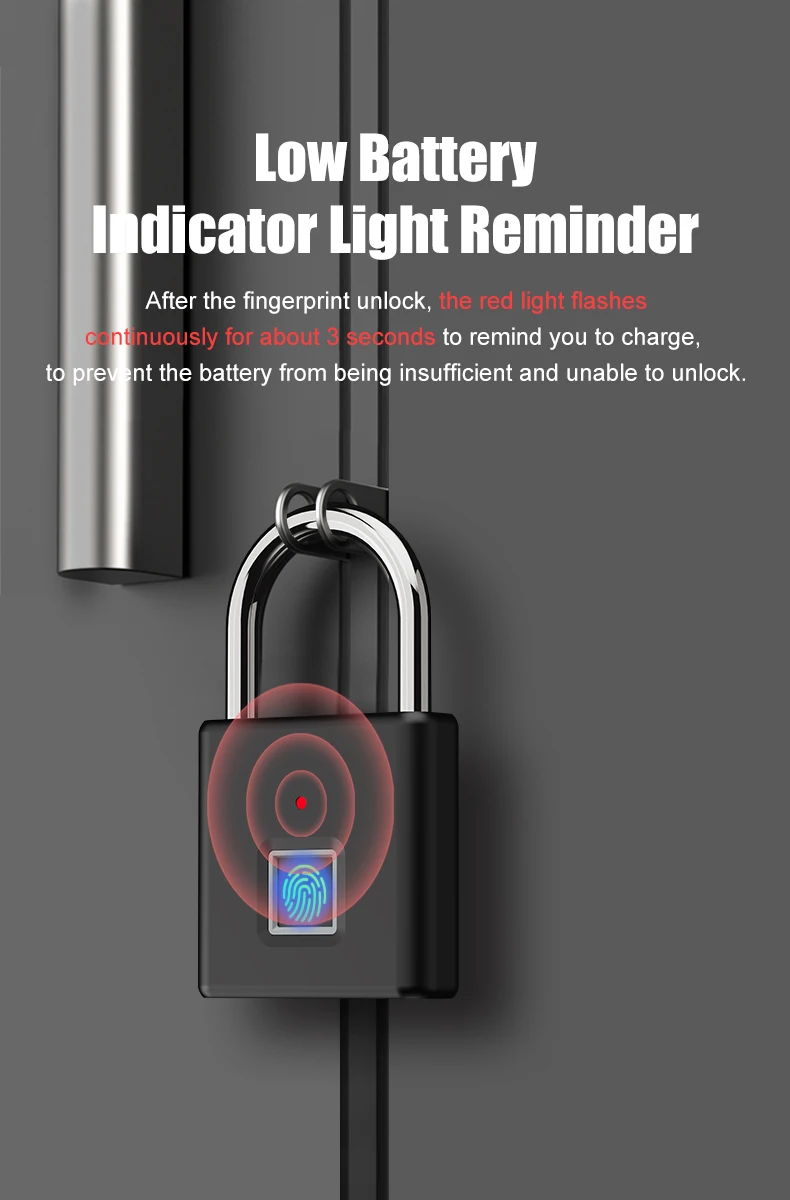 Comprar Candado inteligente con huella dactilar recargable por USB C, cerradura de puerta sin llave, portátil, para bolso, cajón, Maleta, gimnasio, escuela