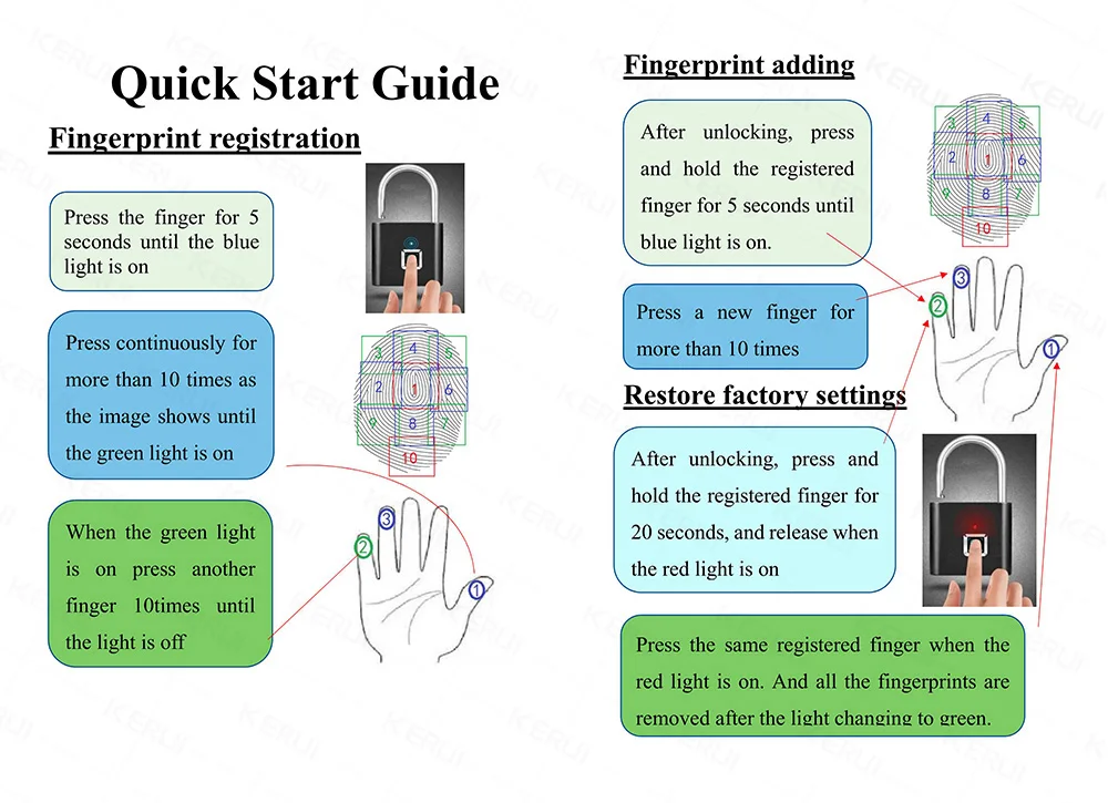 Desbloqueo de huellas dactilares; apertura con un solo toque