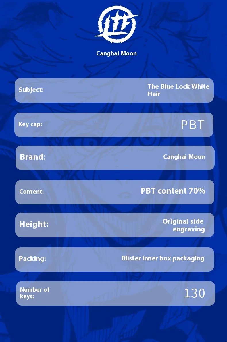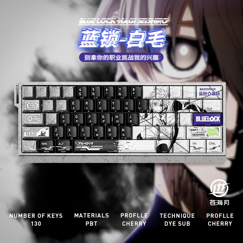 Comprar Cang Hai Yue teclas de teclado mecánico con tema de cerradura azul personalizadas 130 Uds teclas térmicas Mad60 Wooting60He sublimación duradera