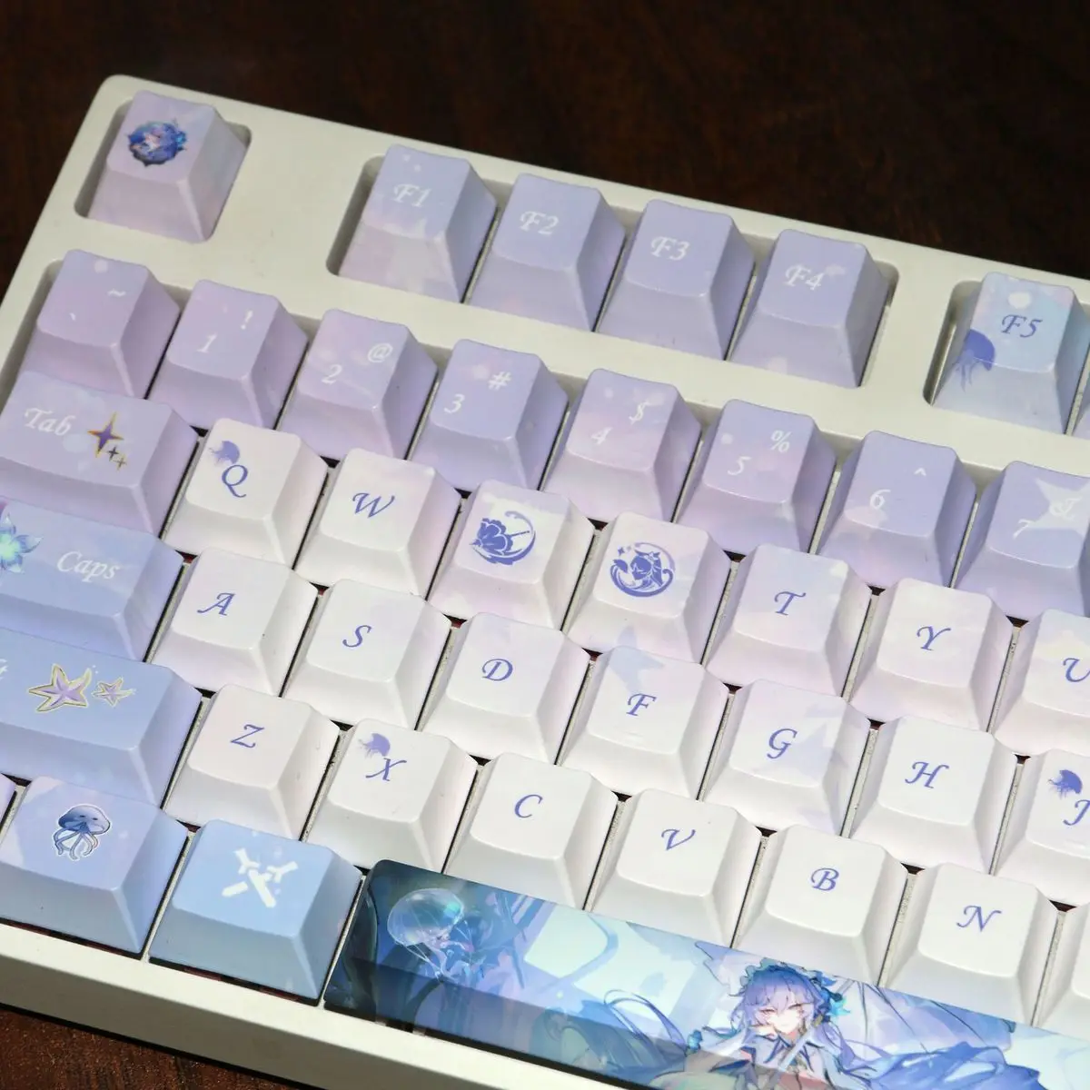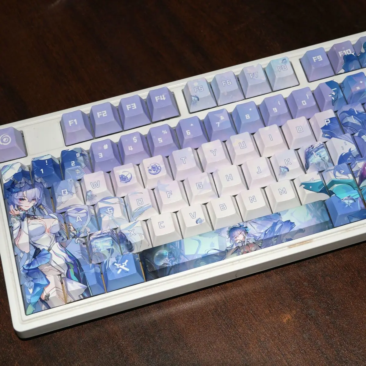 Envío muy rápido y la calidad de impresión es excelente para el precio. Sin problemas de tolerancia y las letras son transparentes, por lo que el RGB del teclado es ligeramente visible.
