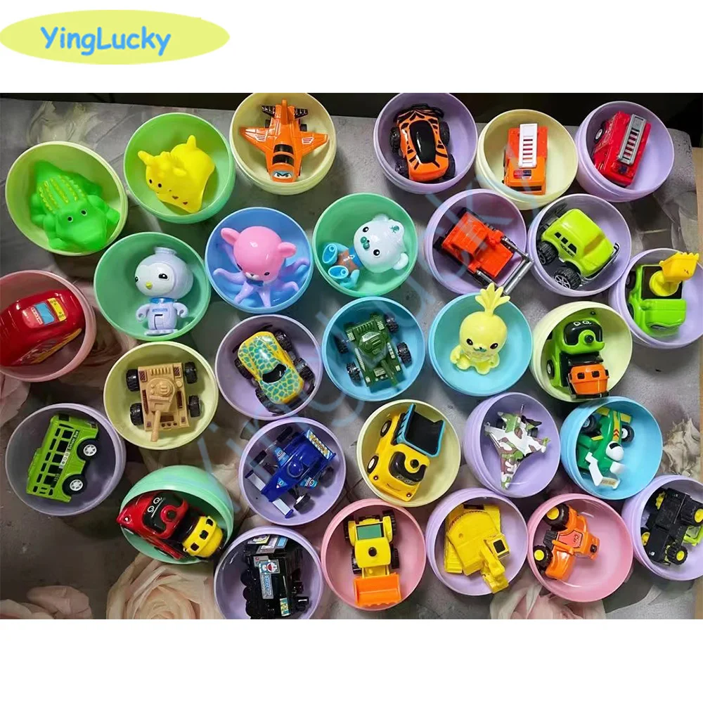 Cápsulas de bolas de plástico de color de 45mm, 75mm, 100mm de diámetro, 100 unids/lote, juguetes con mini muñecas interiores, mezcla aleatoria para ventas de terminales