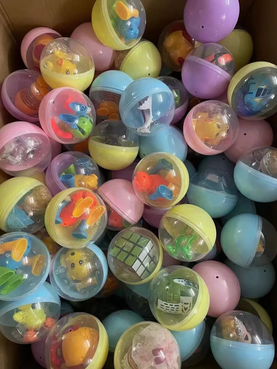 Comprar Cápsulas de bola de color de plástico de 45mm, 75mm y 100mm de diámetro, lote de 100 unidades, juguetes con interior, mini muñecas, mezcla aleatoria para ventas de terminales