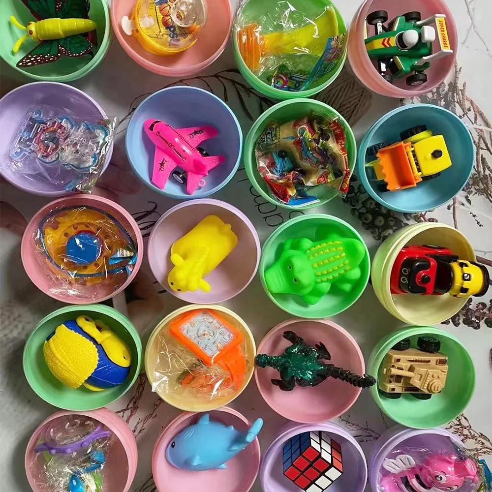 Cápsulas de bolas de plástico de color de 45mm, 75mm, 100mm de diámetro, 100 unids/lote, juguetes con mini muñecas interiores, mezcla aleatoria para ventas de terminales
