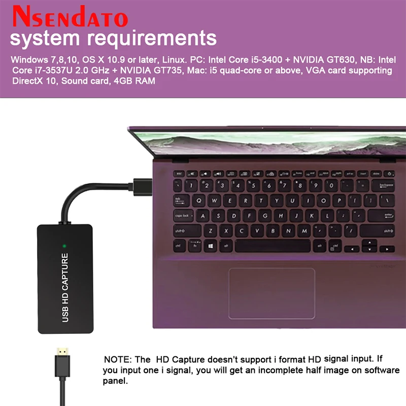 Requisitos del sistema:Para Windows 7 、 8 、 10, para OS X 10,9, para Linux 。.PC: para Intel Core i5-3400 + GT630,NB: Para Intel Core i7-3537U 2,0 GHz + GT735,Tarjeta VGA compatible con DirectX 10,Tarjeta de sonido, 4GBLista de paquetes:1 x caja de captura de vídeo1 x ManualComprar Captura de vídeo USB2.0 HD 1080P 60p, tarjeta de captura de vídeo USB 2,0, caja de transmisión de grabación de juegos para Mac OS, Windows, transmisión en vivo