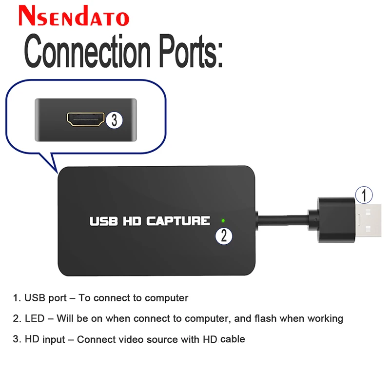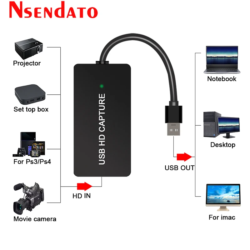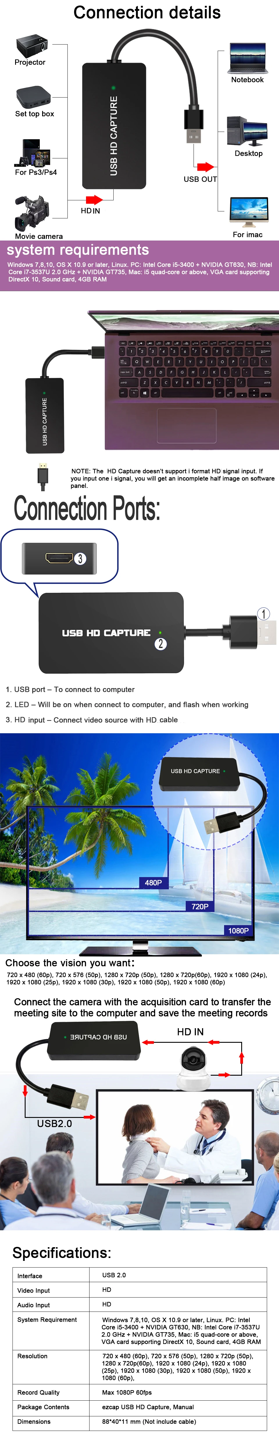USB2.0 HD 1080P 30Hz captura de Video HD a USB 2,0 Tarjeta de captura de Video caja de transmisión de grabación de juego para Mac OS Windows Live Stream
