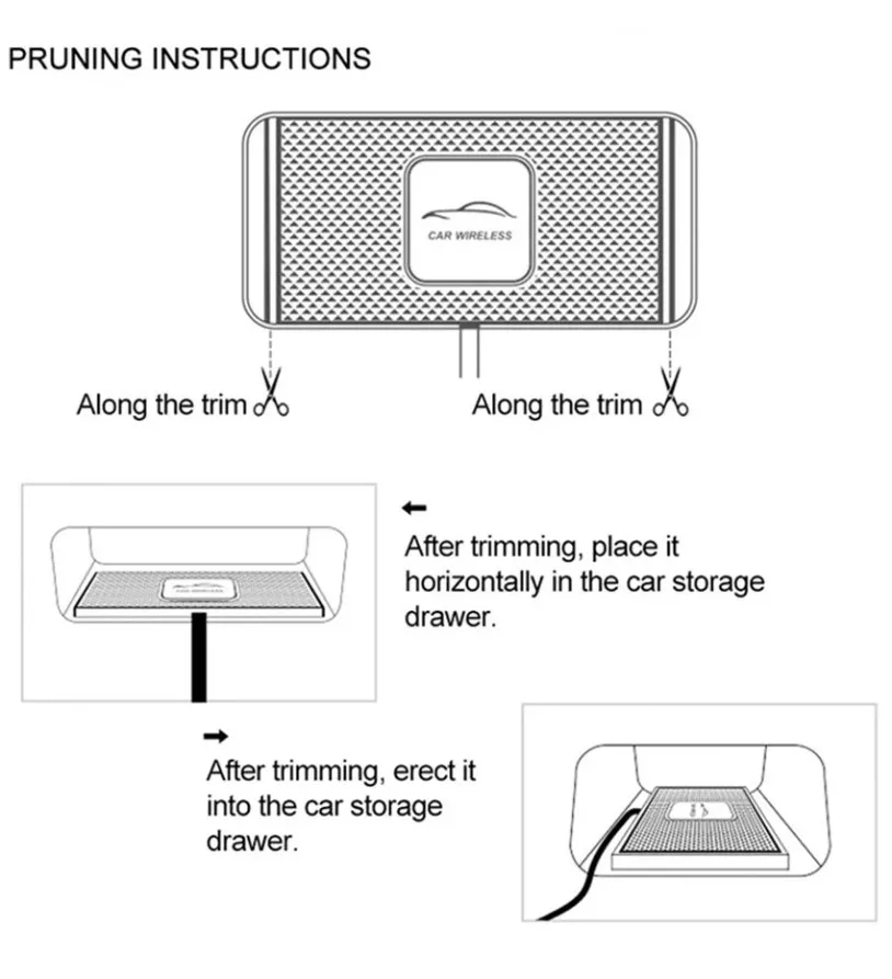 Fast Car Charger Wireless Charger is designed for the car carrying case, storage drawer and other space. It does not disassemble the car parts and directly upgrades the wireless charging. It is made of silicone material, soft, strong and sticky. Driving safety. At the same time you can trim according to the size of the car space. Let you better experience the fun of wireless charging.
