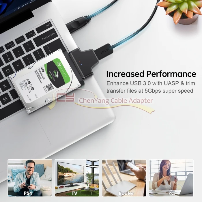 Compatible con versiones anteriores de puertos USB (1,0, 1,1 y 2,0) y discos duros SATA (1,5 Gb/s).