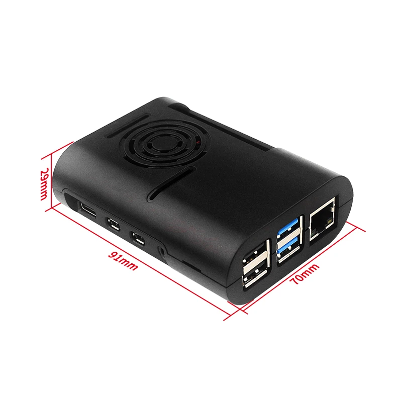Funda ABS Raspberry Pi 4B carcasa negra transparente carcasa Fácil instalación carcasa de alta calidad con ventilador de refrigeración para Raspberry Pi 4 Modelo BDescripción:1. Funda protectora para Raspberry Pi 4 Modelo B2. Hecho de ABS de alta calidad y duradero.3. Diseño especial para acceder a la mayoría de los puertos.4. Hay un espacio delante de la carcasa a través del cable de la cámara.5. Admite la instalación del ventilador de refrigeración para garantizar una buena disipación del calor.