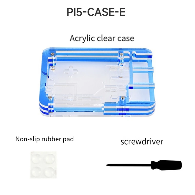 Hecho de tablero acrílico transparente + azul, adecuado para Raspberry Pi 5, hermoso y a prueba de polvo