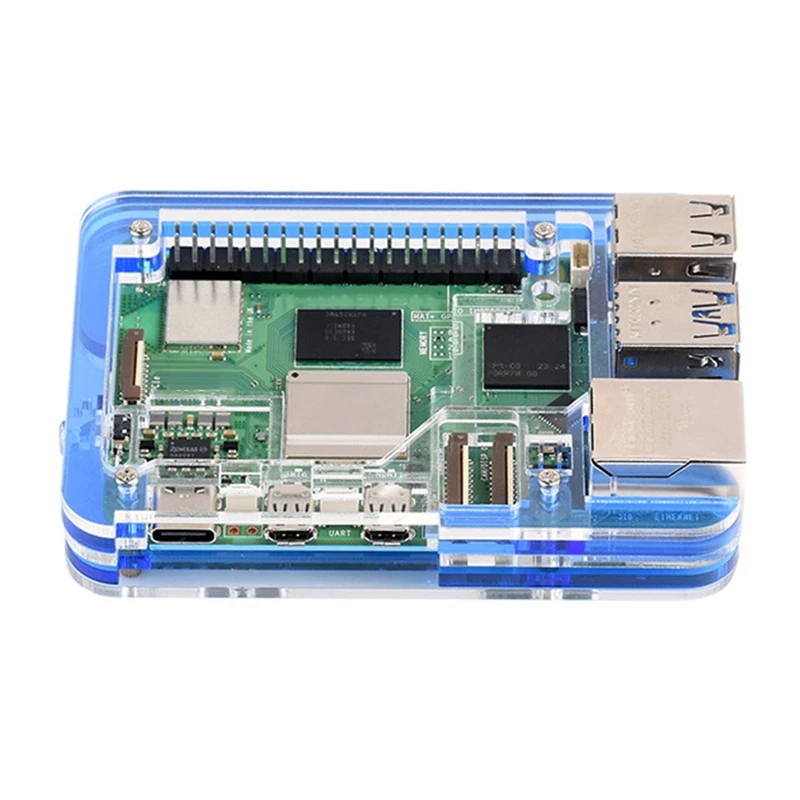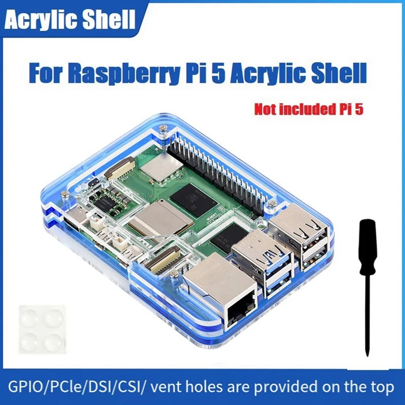 Hecho de tablero acrílico transparente + azul, adecuado para Raspberry Pi 5, hermoso y a prueba de polvo