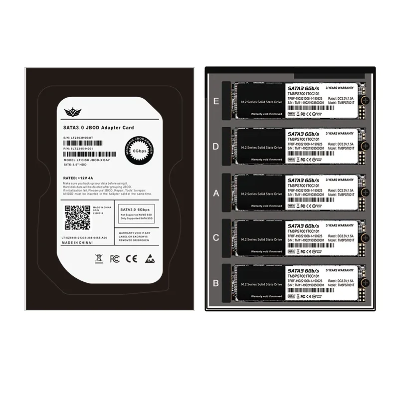 🚀Caja de Metal 4/5 puertos B+M Key M.2 SATA SSD a 3.5" SATA3.0 6Gb Tarjeta adaptadora JBOD con carcasa Zócalo M2 NGFF a SATA Caja adaptadora🚀