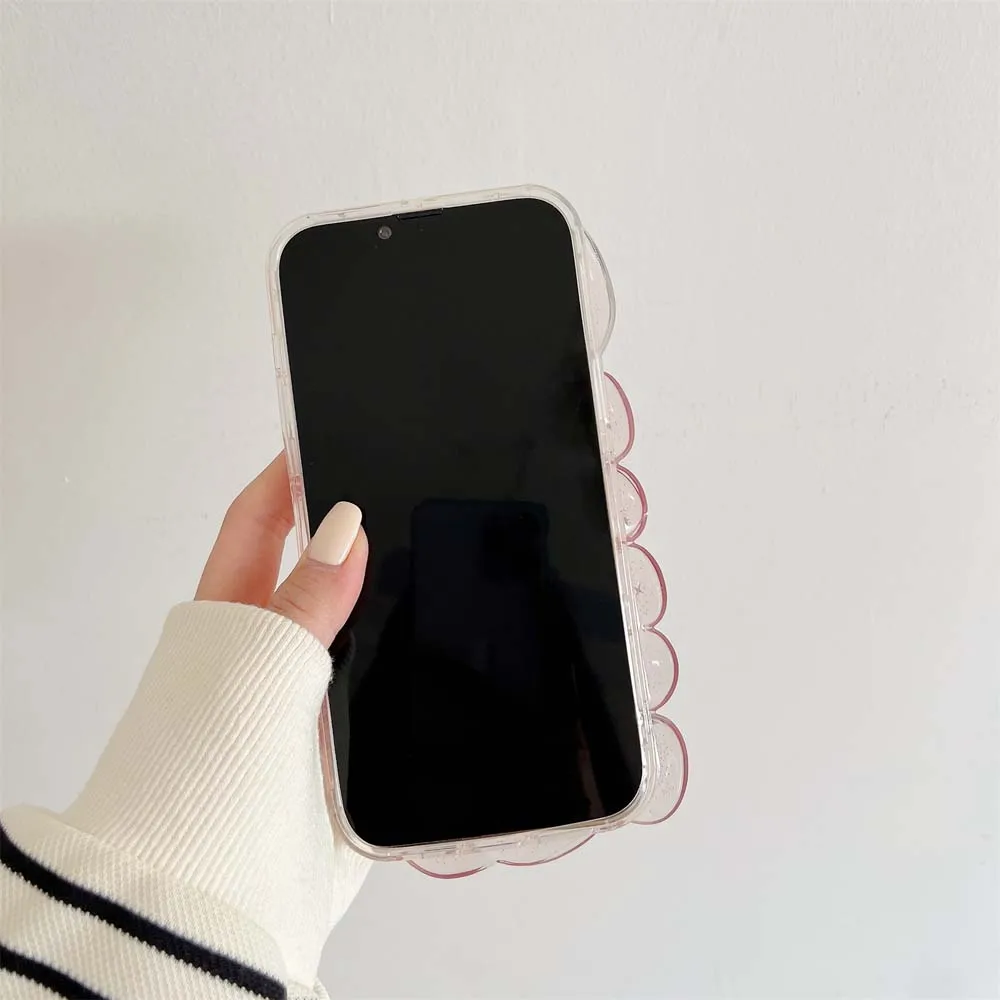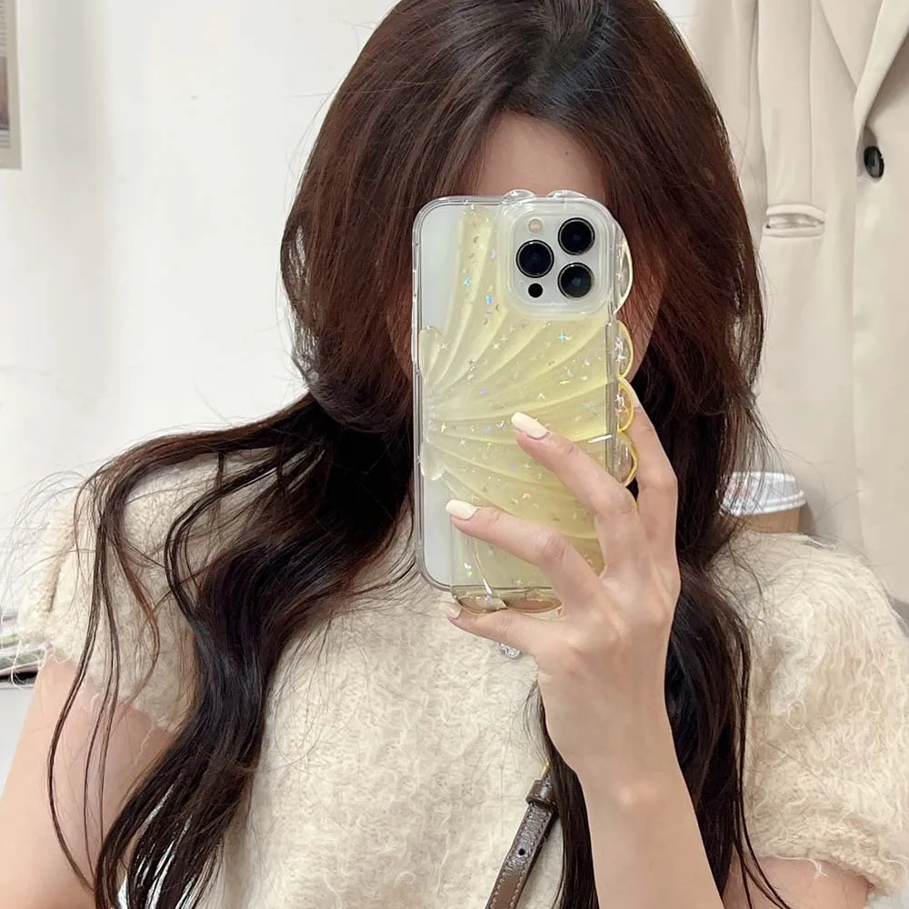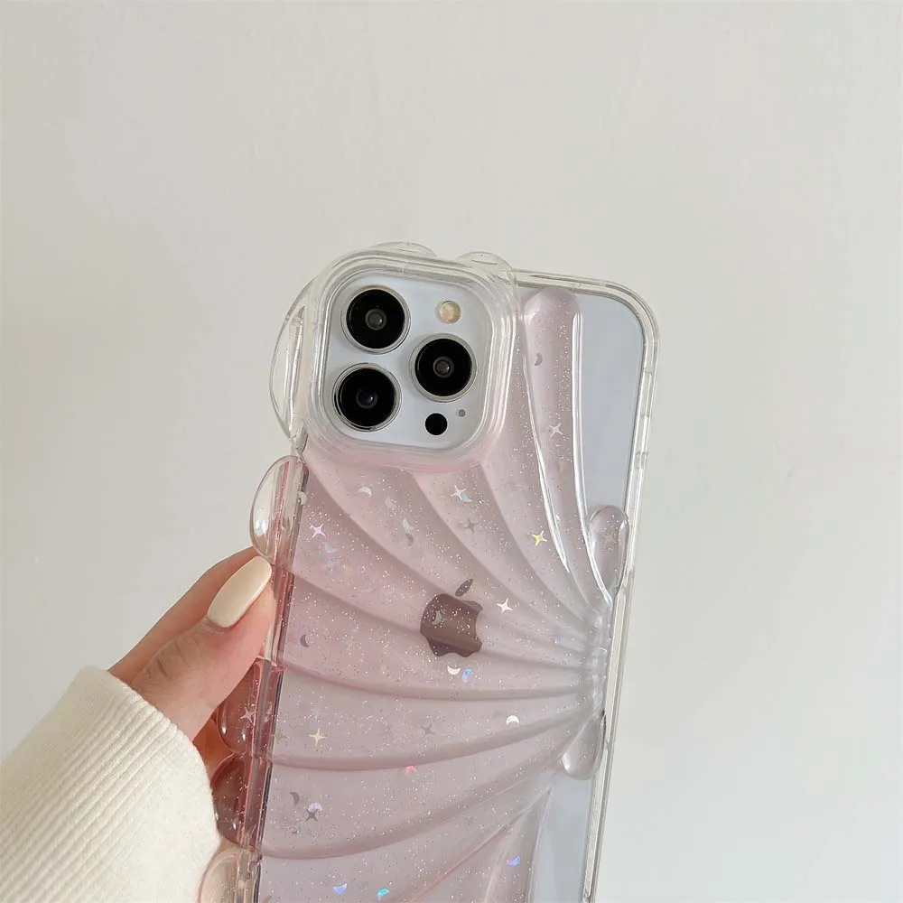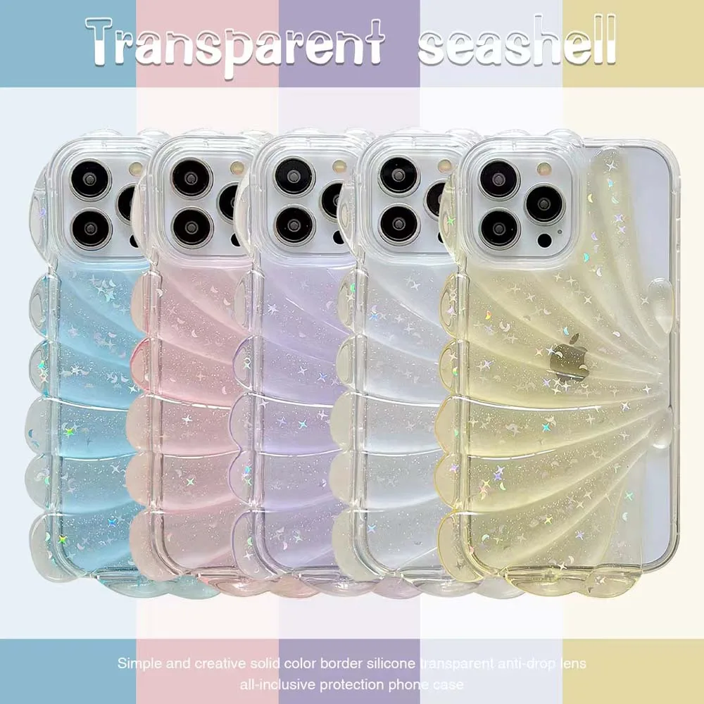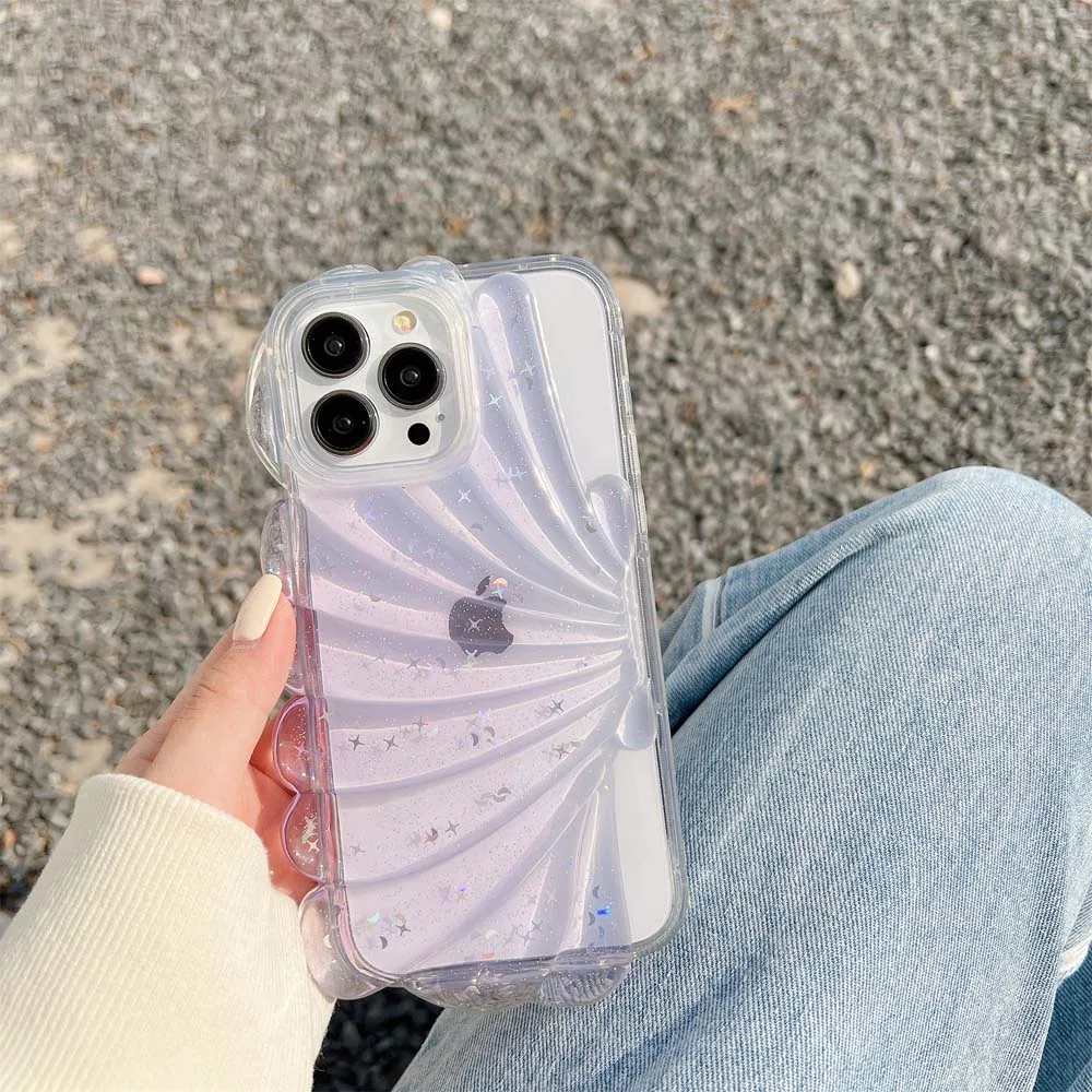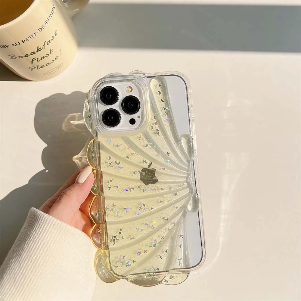 3D Clam Shell Glitter Stars epoxi Phone Case para iPhone 14 13 12 Pro Max 11 Plus Bumper a prueba de golpes INS Fresh Cute Clear Soft Cover