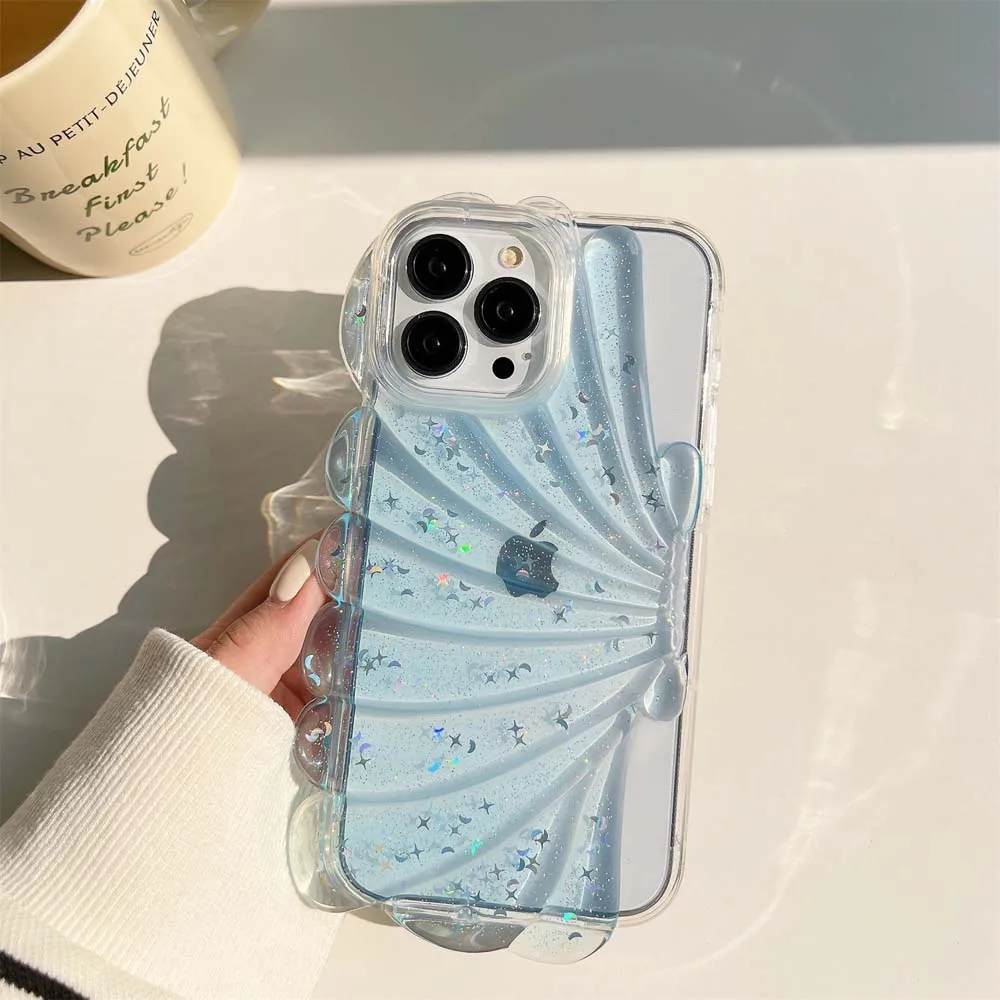 Carcasa de almeja 3D para teléfono móvil, carcasa de epoxi con estrellas brillantes para iPhone 14, 13, 12 Pro, Max, 11 Plus, parachoques a prueba de golpes, cubierta suave y clara