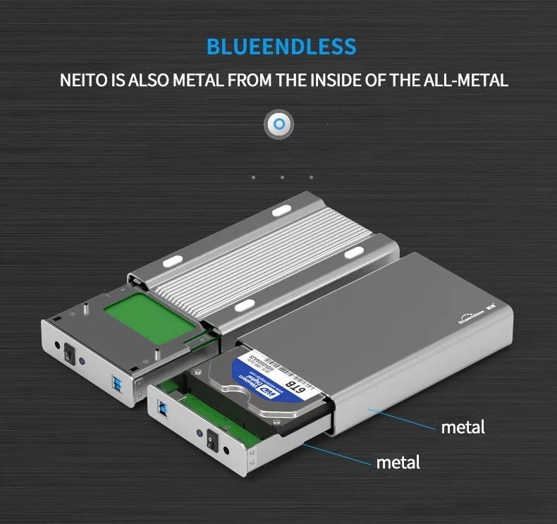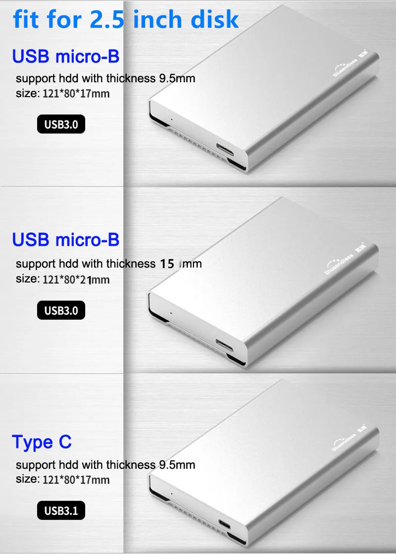 Caddy de disco duro de 2,5 pulgadas totalmente metálico para SSD HDD Estuches externos Caja de disco duro USB 3,0 SATA