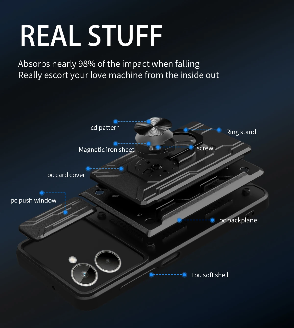 Carcasa de armadura dura multifunción para OPPO Realme10 Pro 9i 8T 8 Pro V13 Q3 C31 Narzo50, carcasa de lujo a prueba de golpes, soporte de Metal giratorio