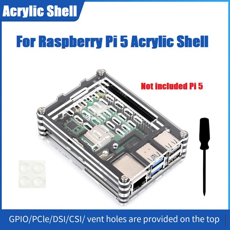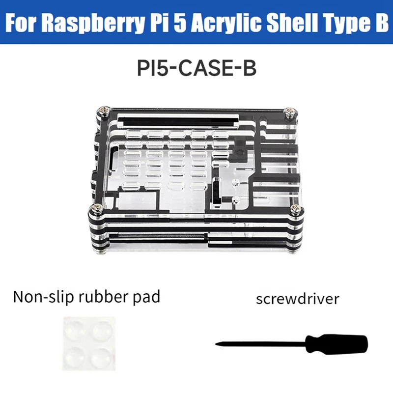Hecho de tablero acrílico transparente + negro, adecuado para Raspberry Pi 5, hermoso y a prueba de polvo