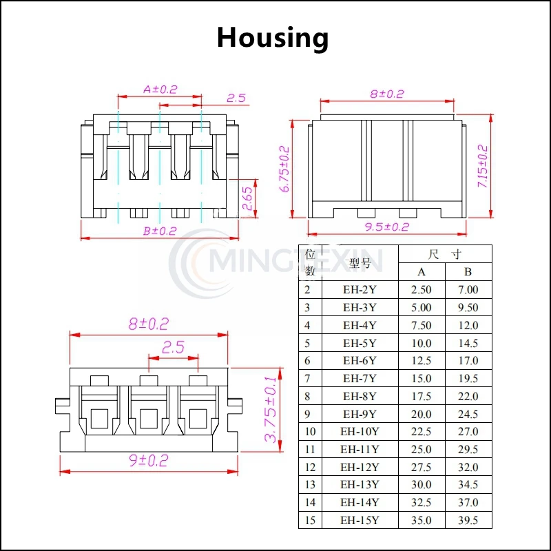 Reemplazo de la carcasa del conector de paso de 2,5mm EH de 50 piezas del terminal del conector JST EH/carcasa de plástico 2p3p4p5p6p-10p tipo de cable a placa